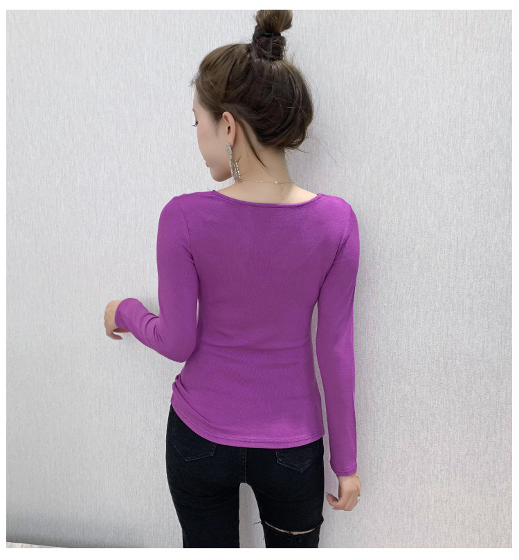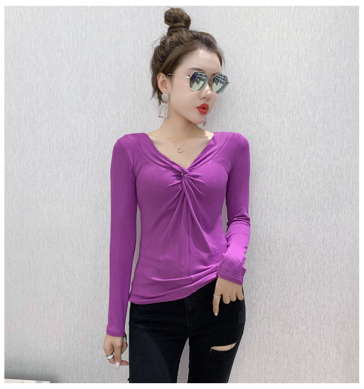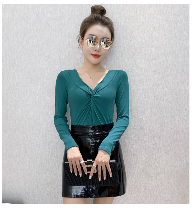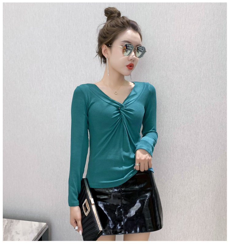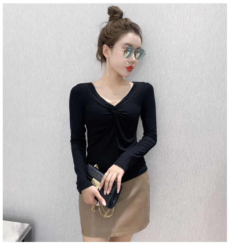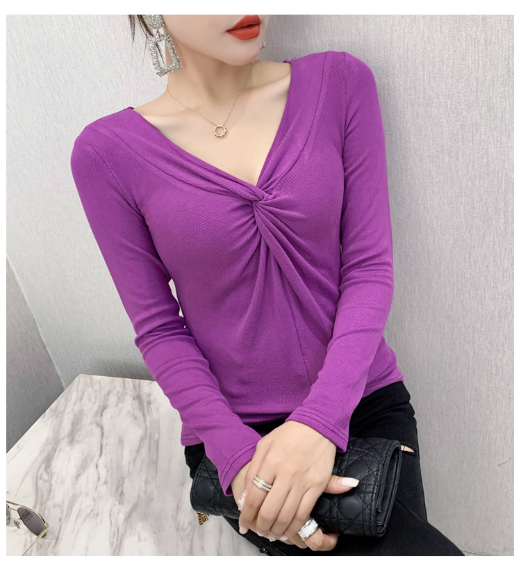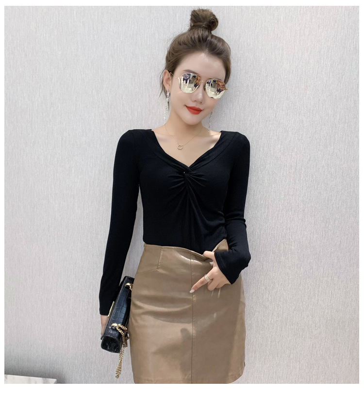 MZ-MZ5988薄款紧身针织春秋女性感交叉V领修身长袖打底衫ZXH