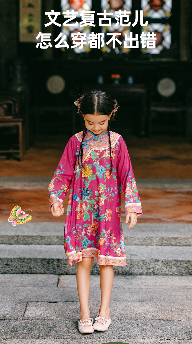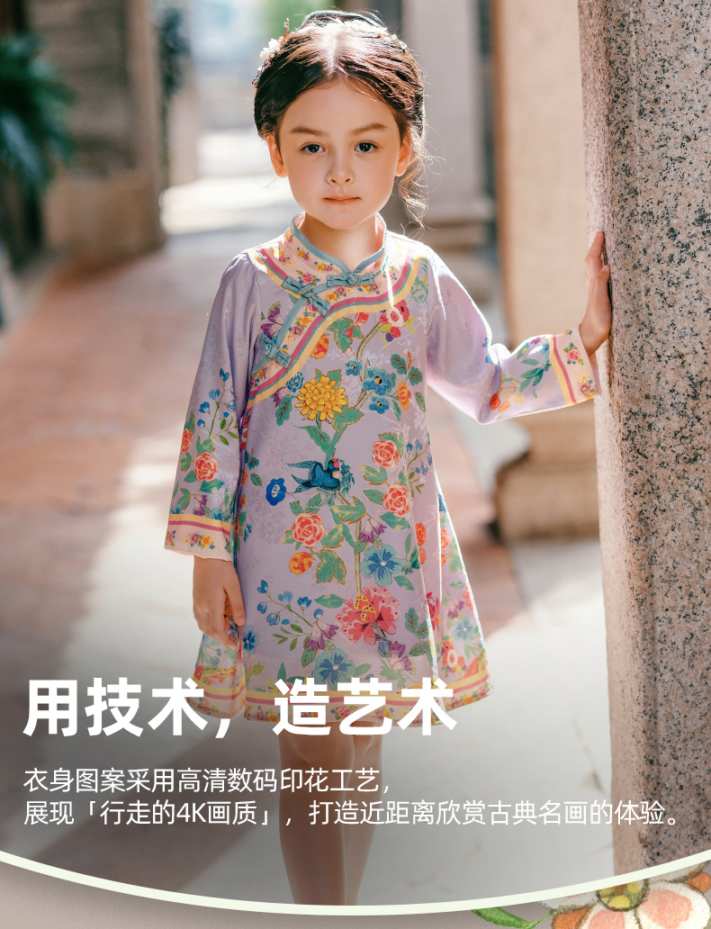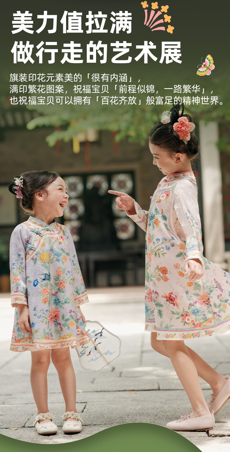 【年衣】童装女童改良旗袍连衣裙新款秋季儿童新中式表演服甜美连衣裙花花世界长袖旗袍裙