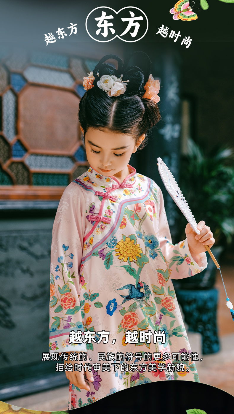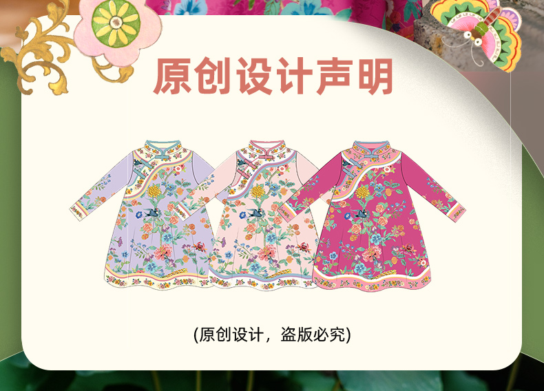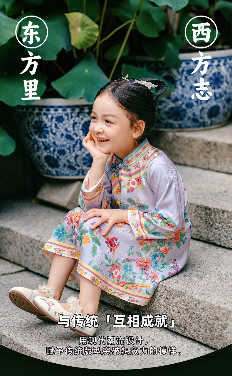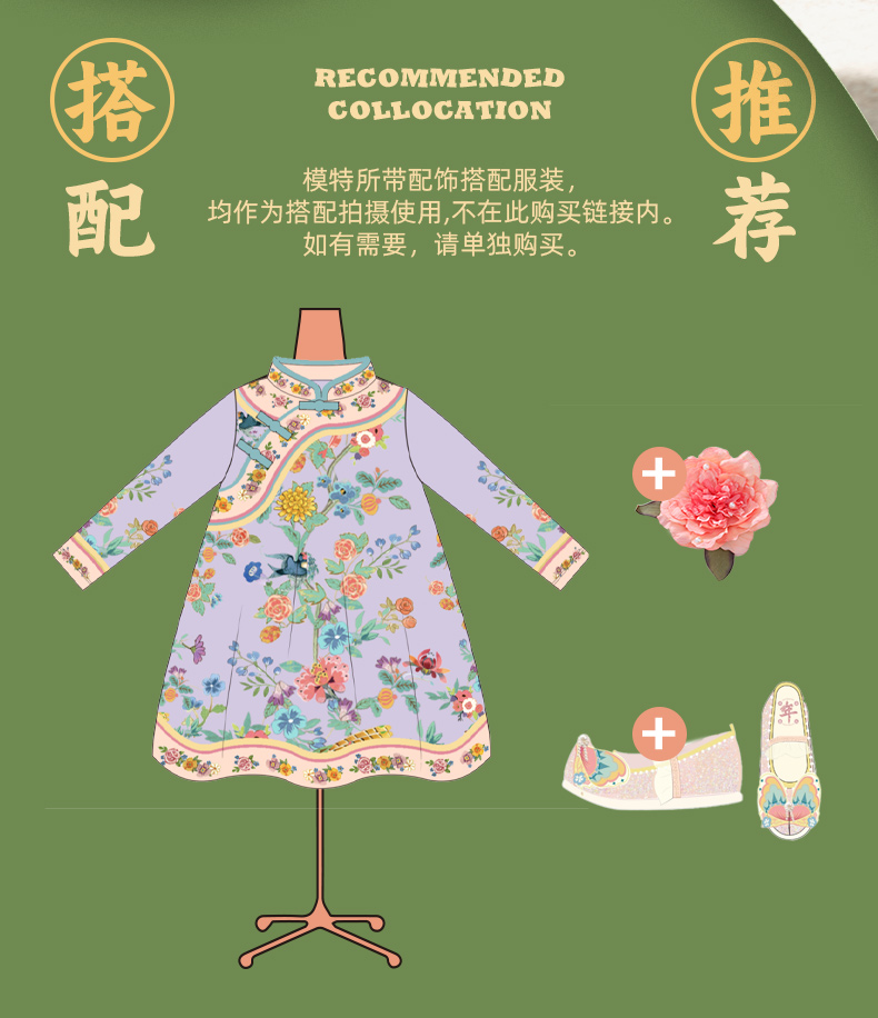 【年衣】童装女童改良旗袍连衣裙新款秋季儿童新中式表演服甜美连衣裙花花世界长袖旗袍裙