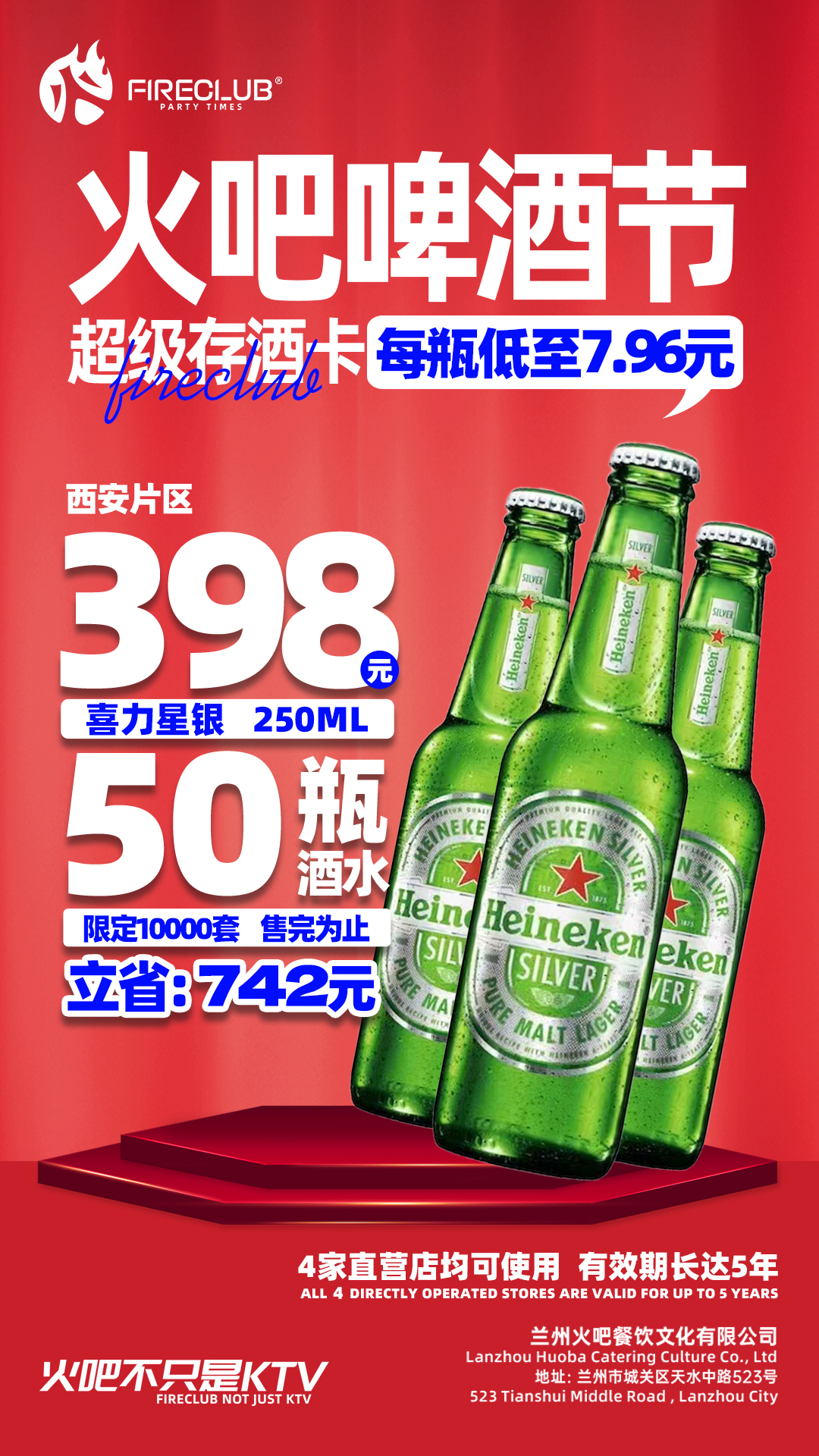 【西安通用】118火吧啤酒节—超值存酒卡—398元50瓶喜力星银250ml