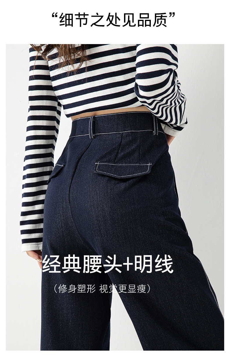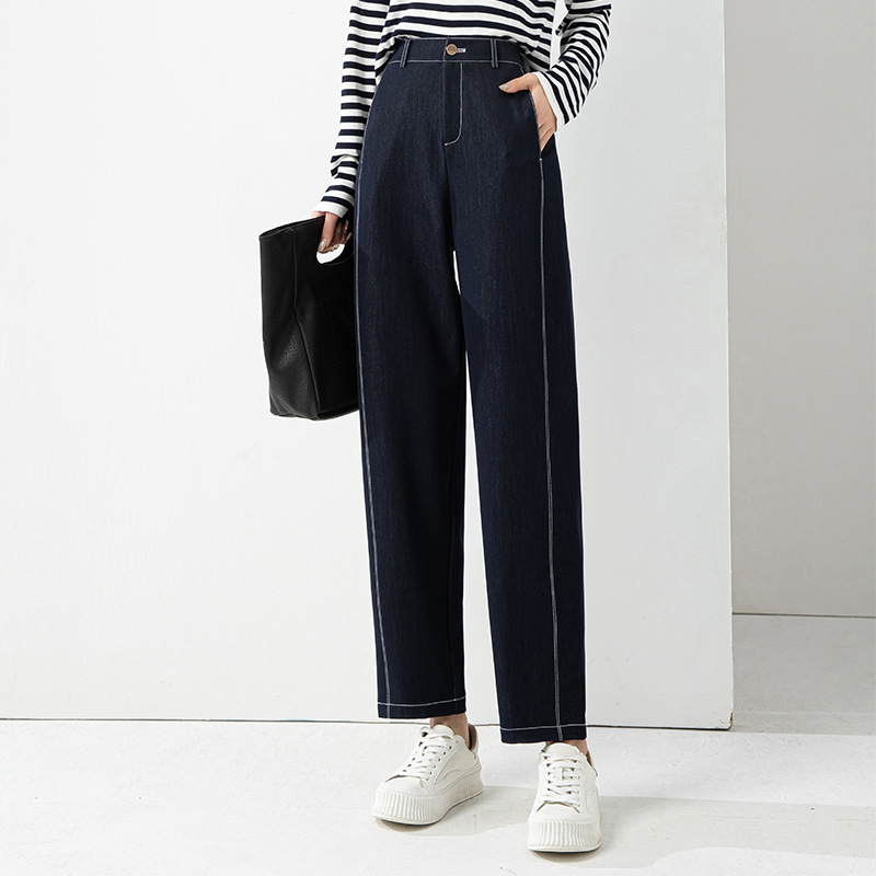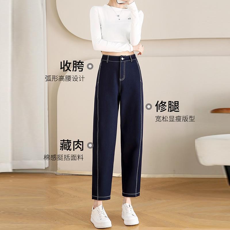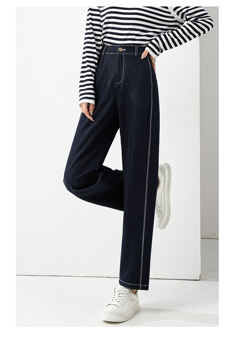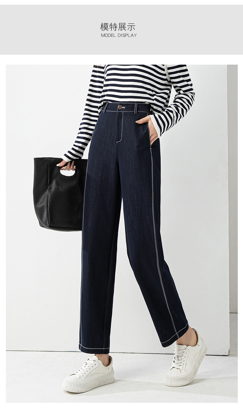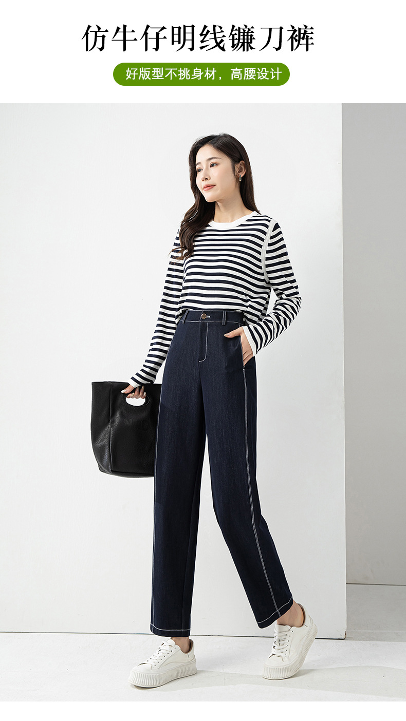 丁摩 春夏丹宁兰撞色线仿牛仔镰刀裤女直筒休闲裤垂感九分 裤子宽松4ZF-12156