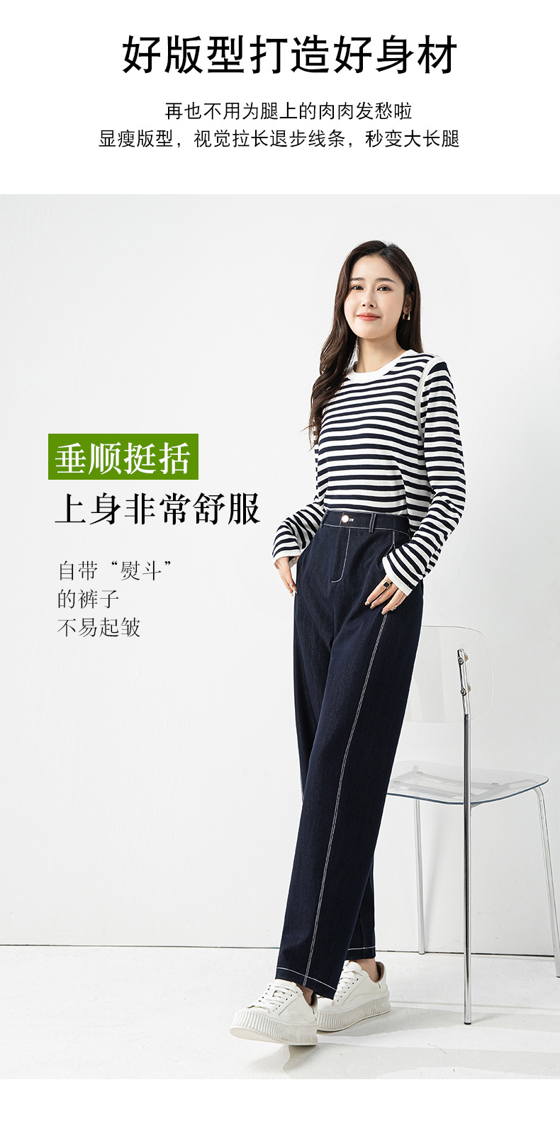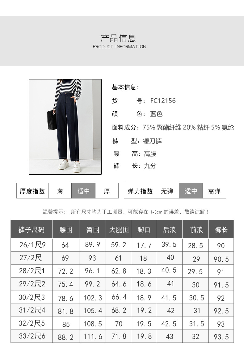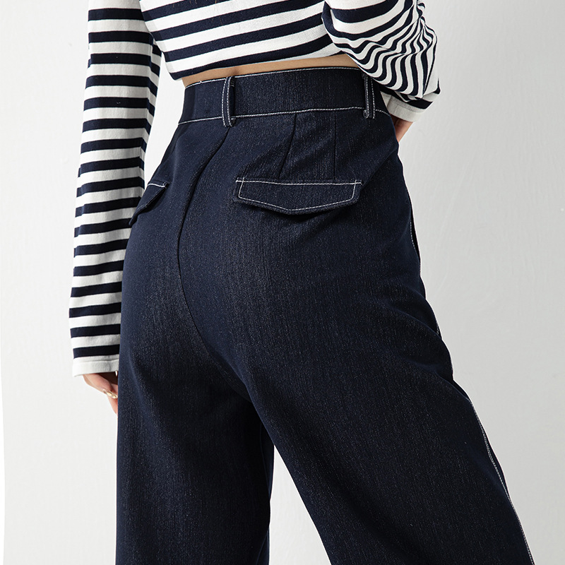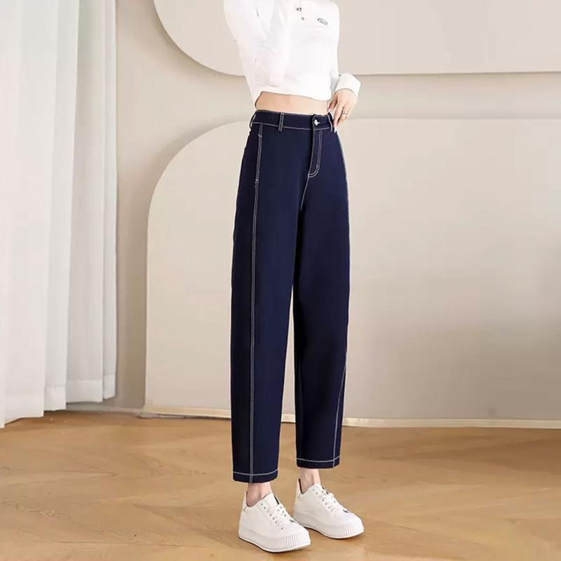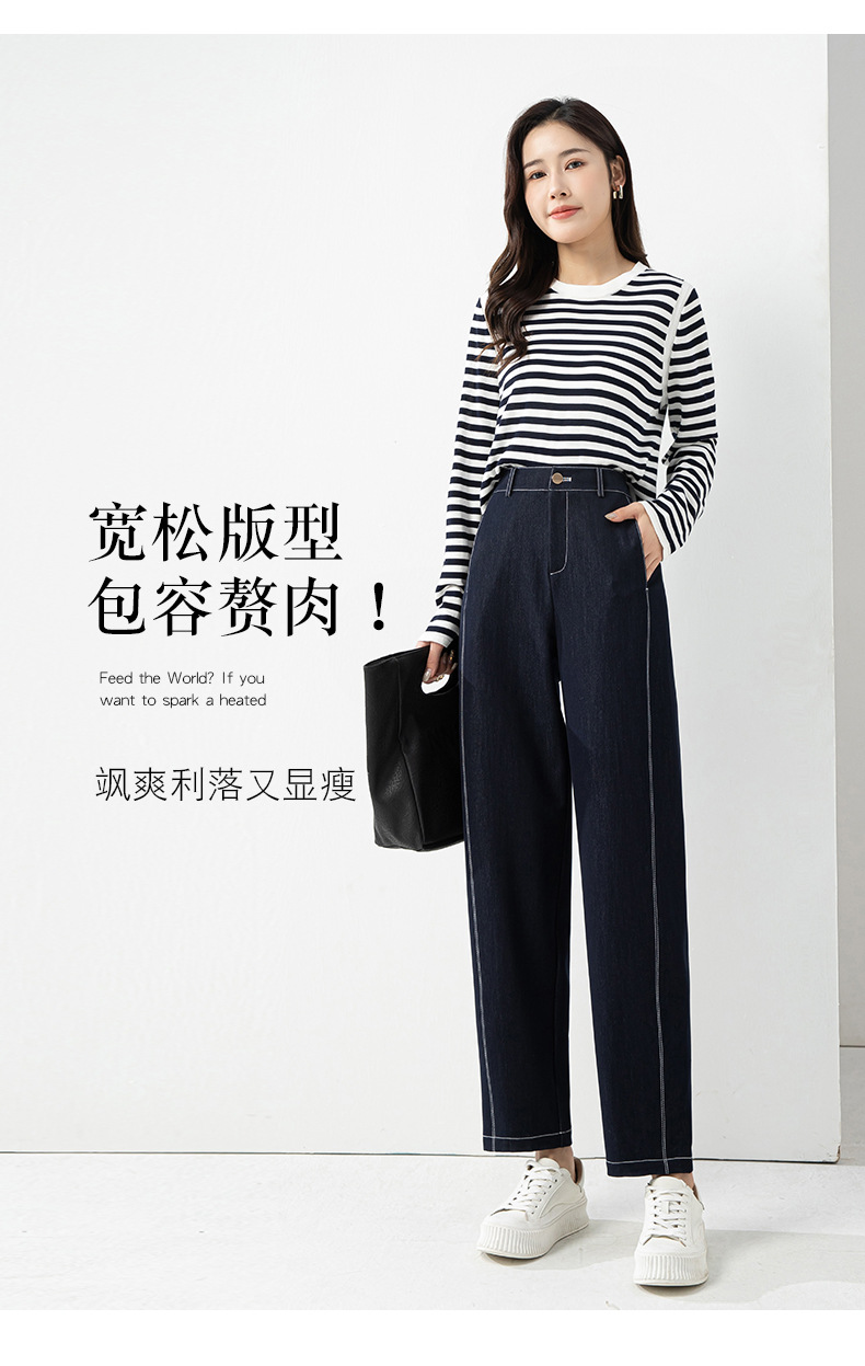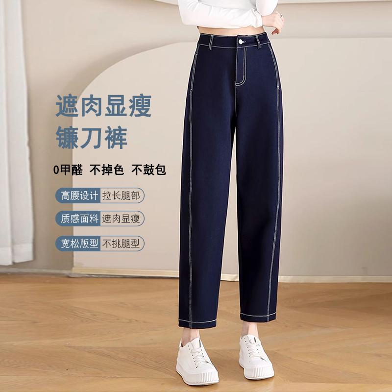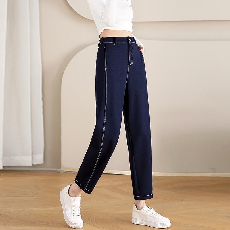 丁摩 春夏丹宁兰撞色线仿牛仔镰刀裤女直筒休闲裤垂感九分 裤子宽松4ZF-12156