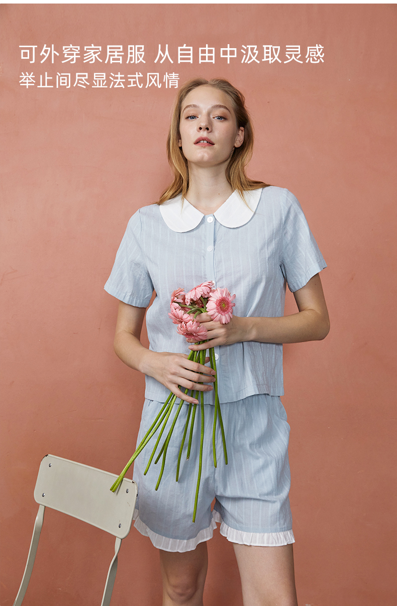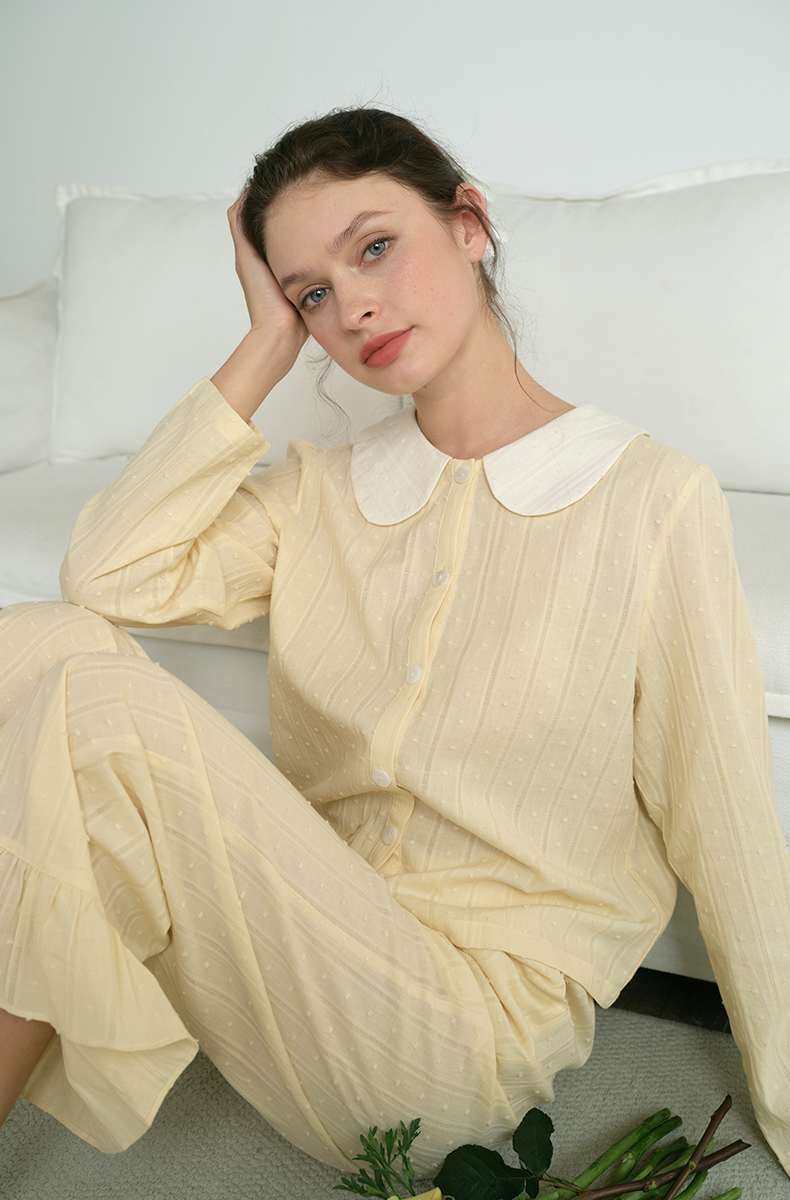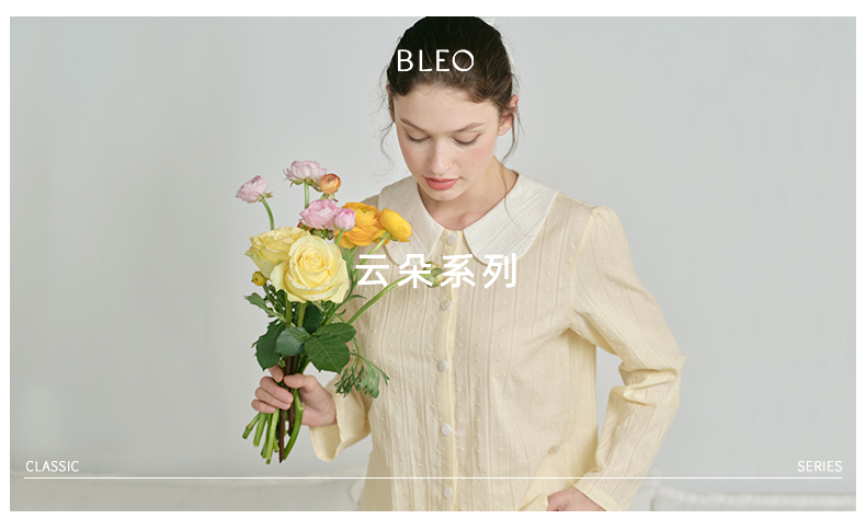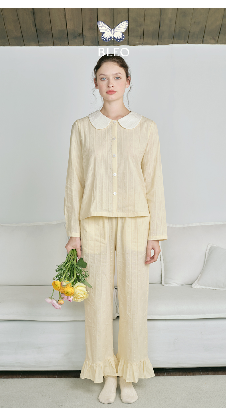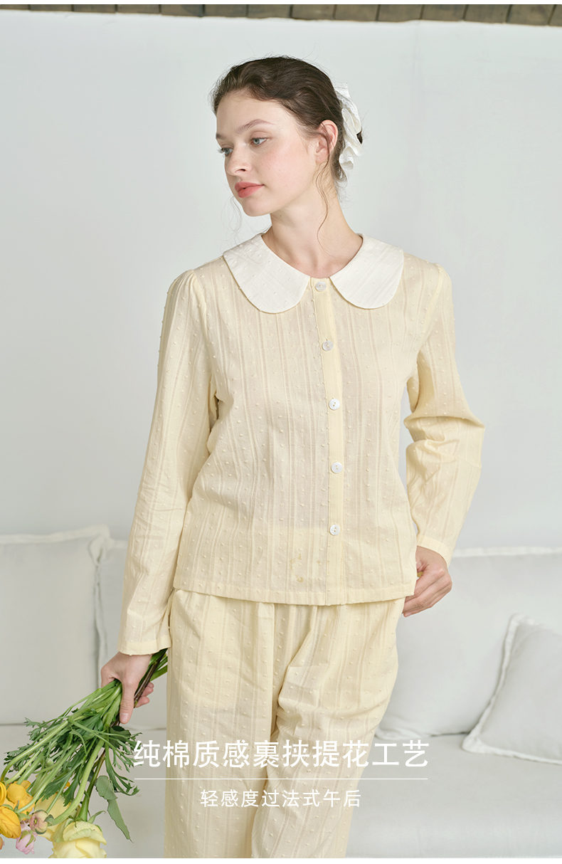 【沈梦辰同款】BLEO 全棉提花娃娃领开襟长短袖套装