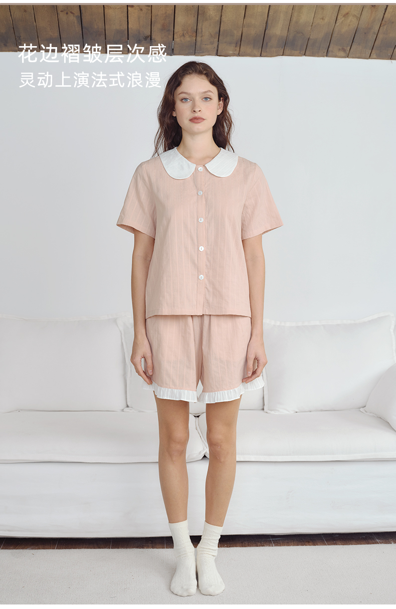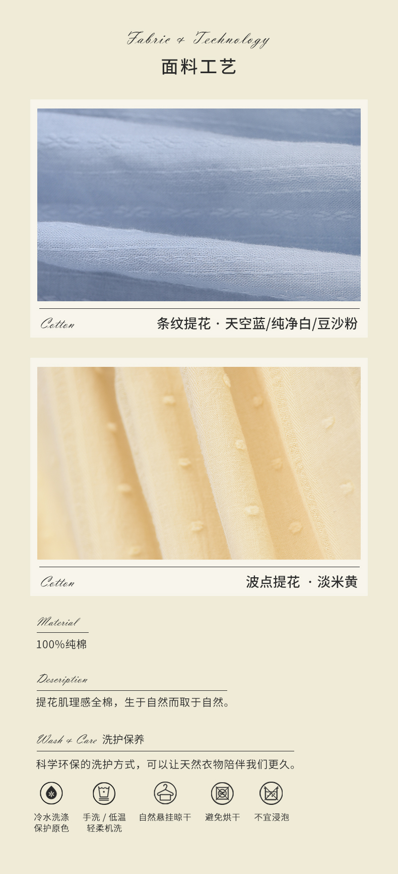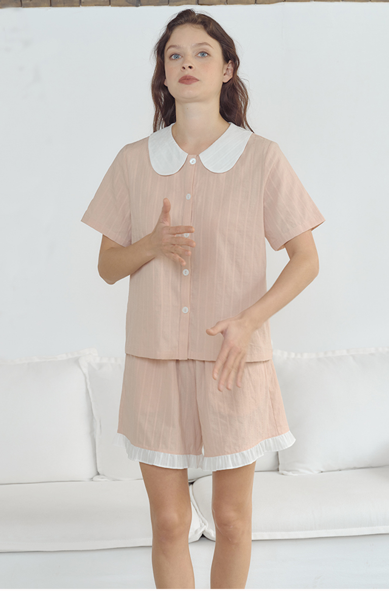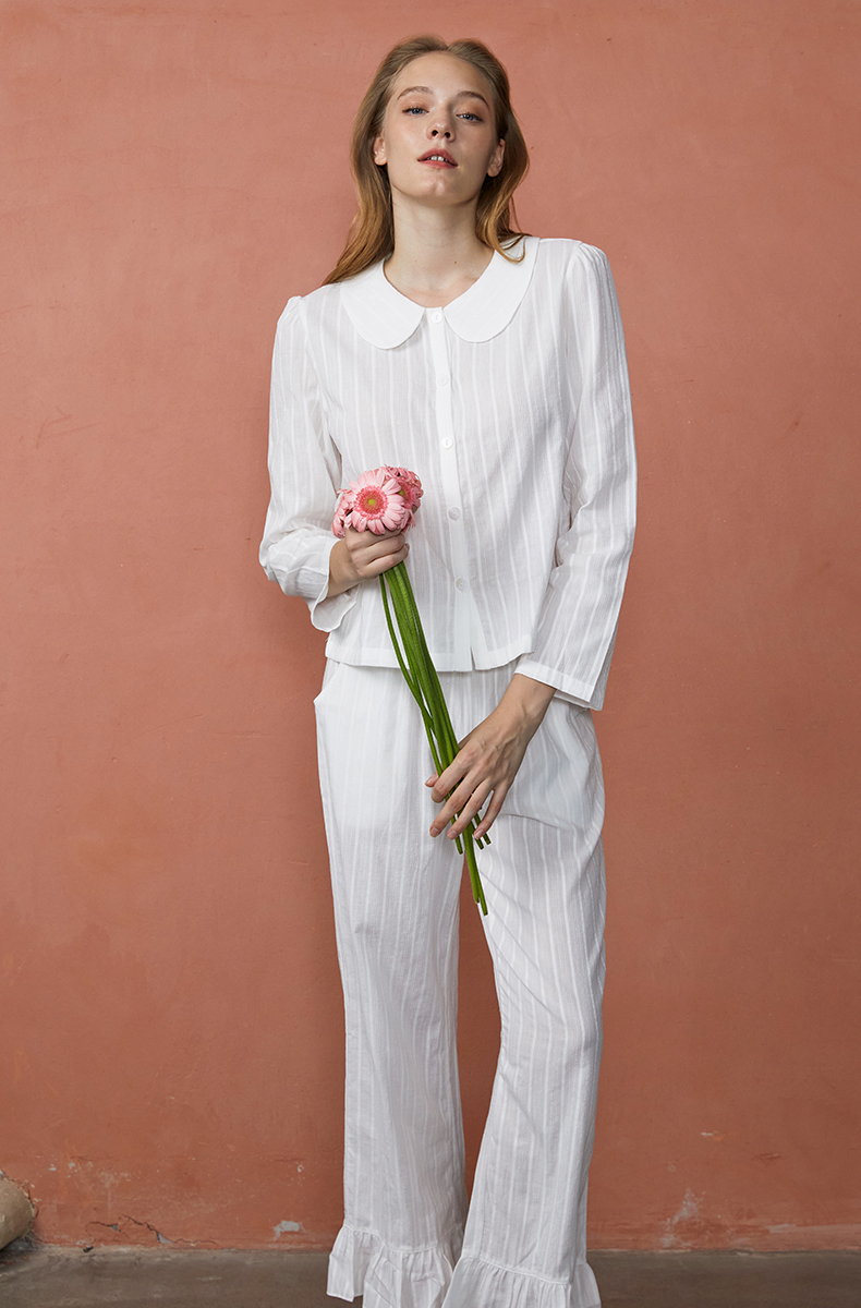 【沈梦辰同款】BLEO 全棉提花娃娃领开襟长短袖套装
