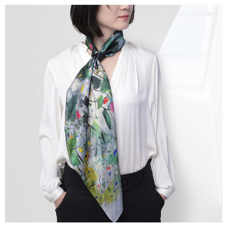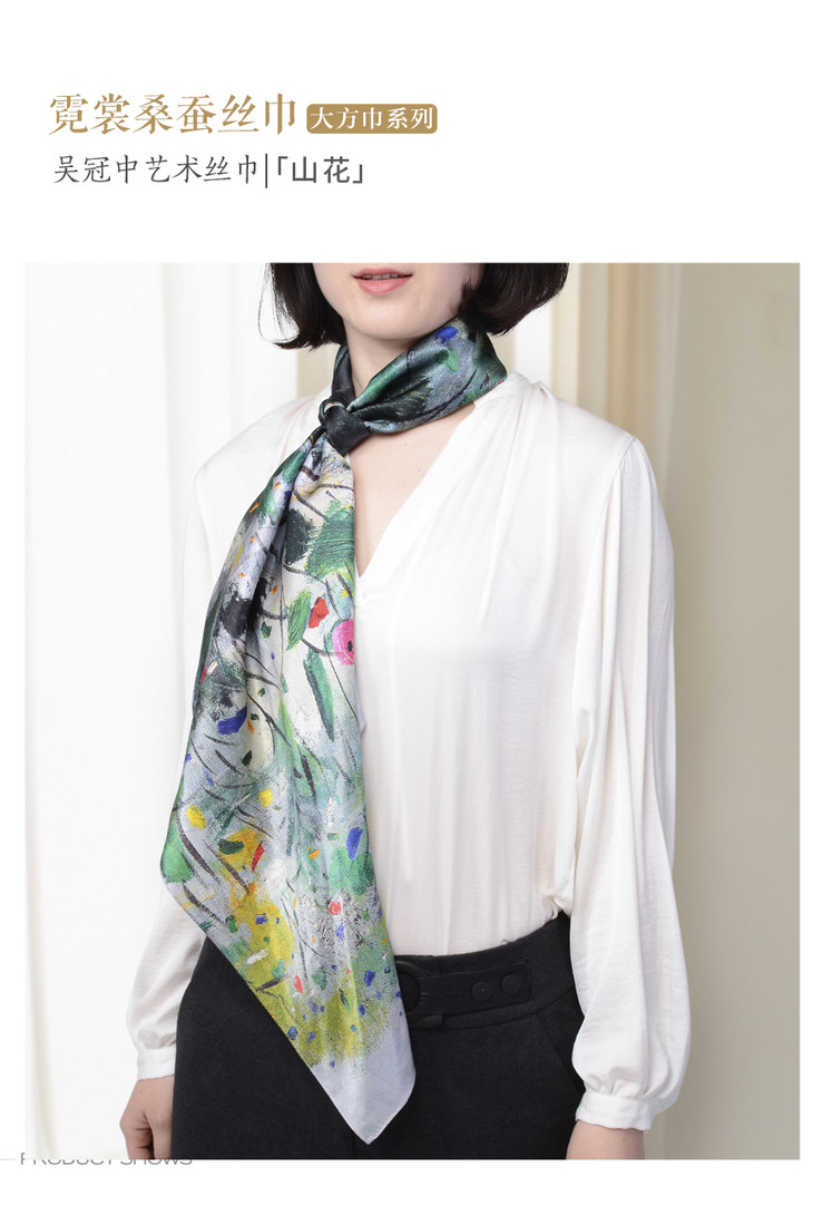吴冠中艺术丝巾《山花》方巾 桑蚕丝