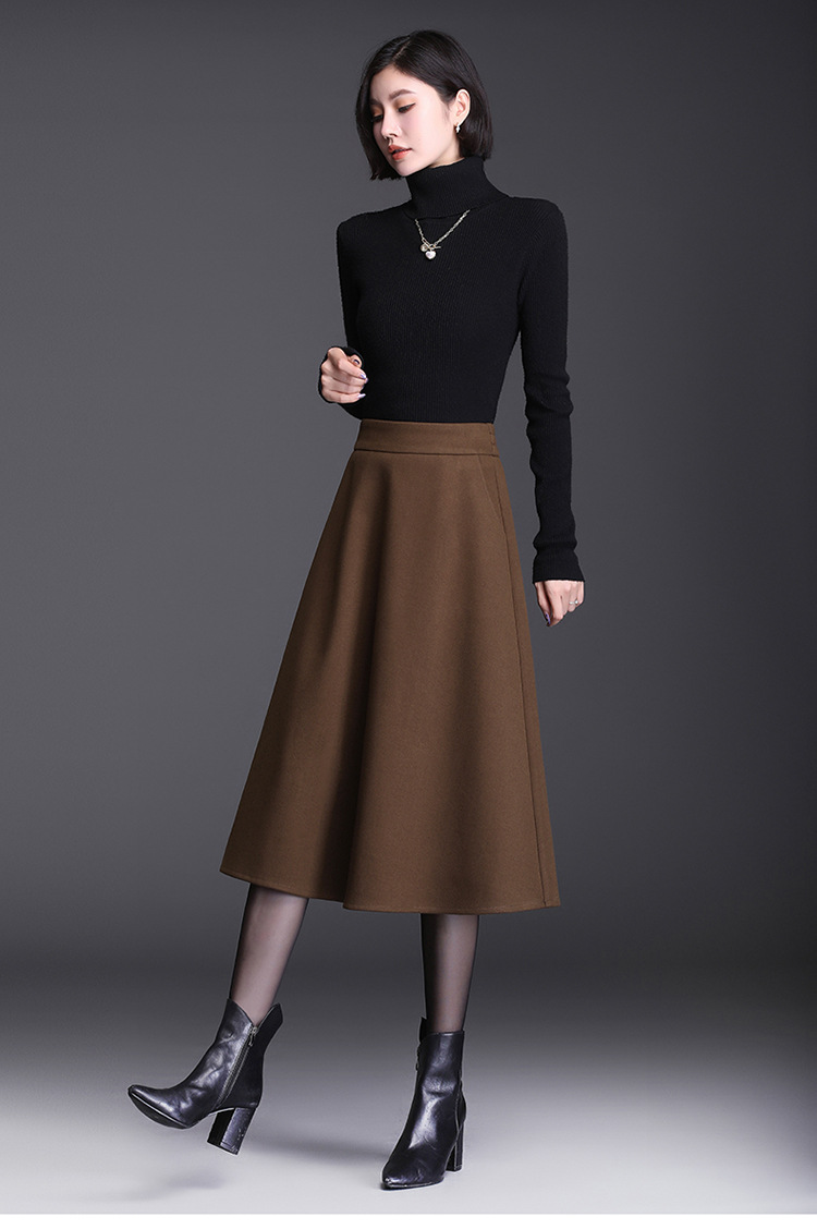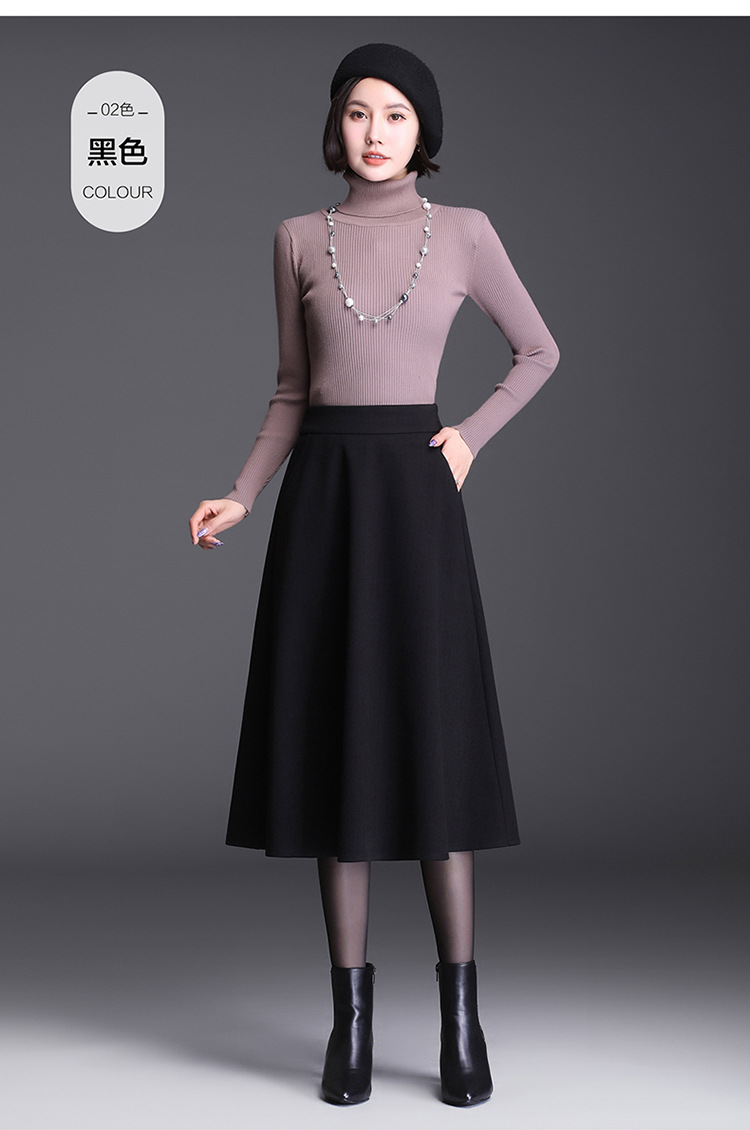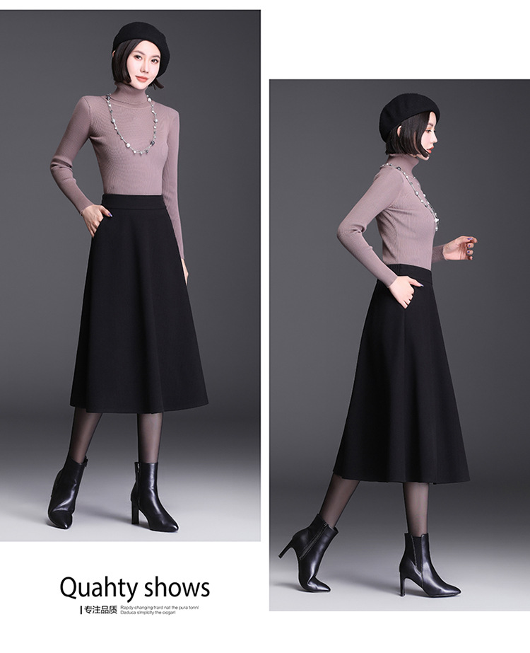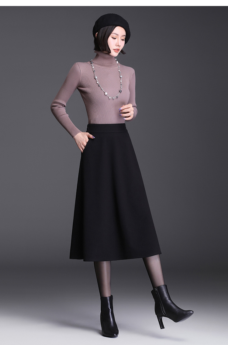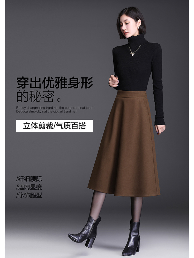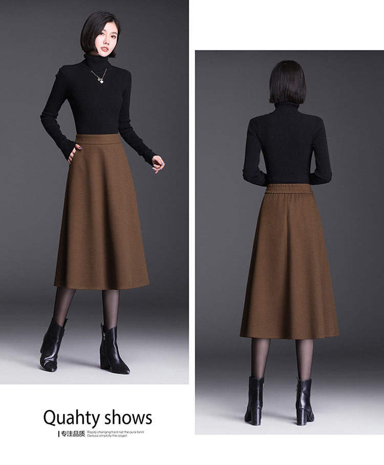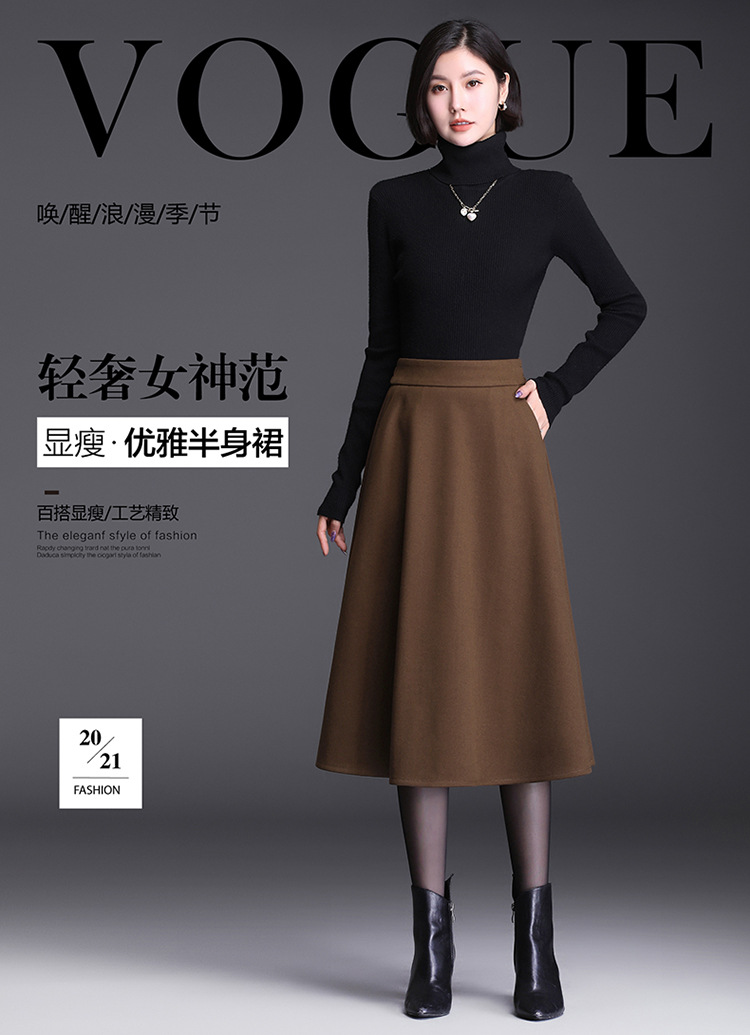 MYX-JYM-30212-L过膝长款纯色简约修身时尚A字裙