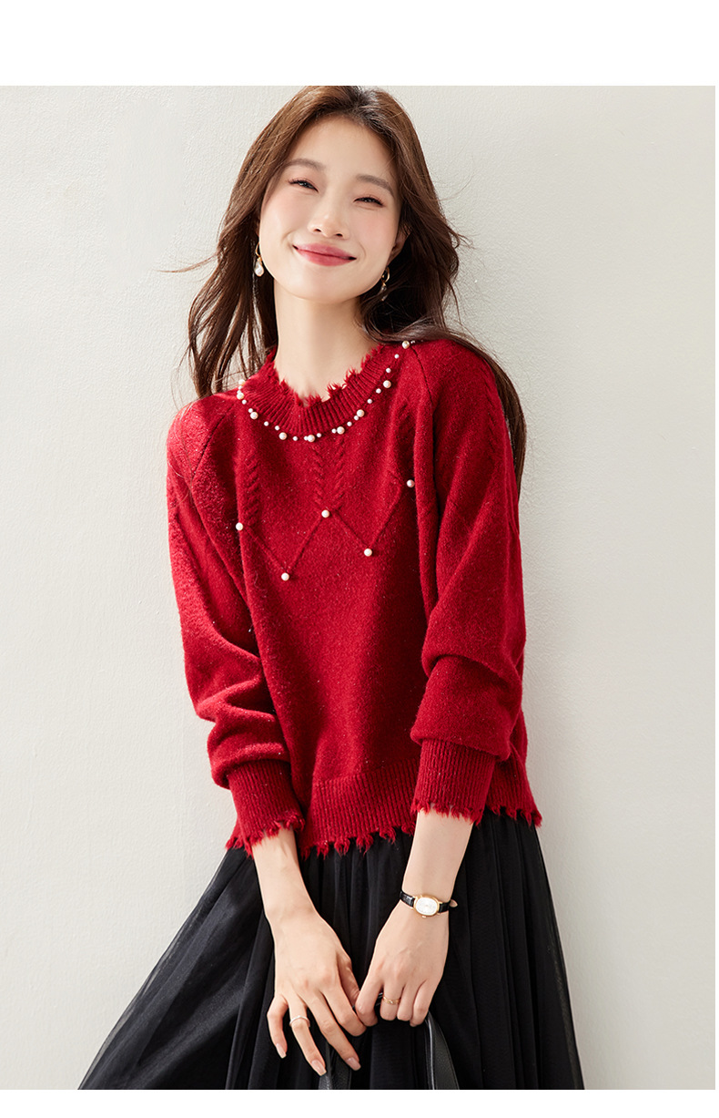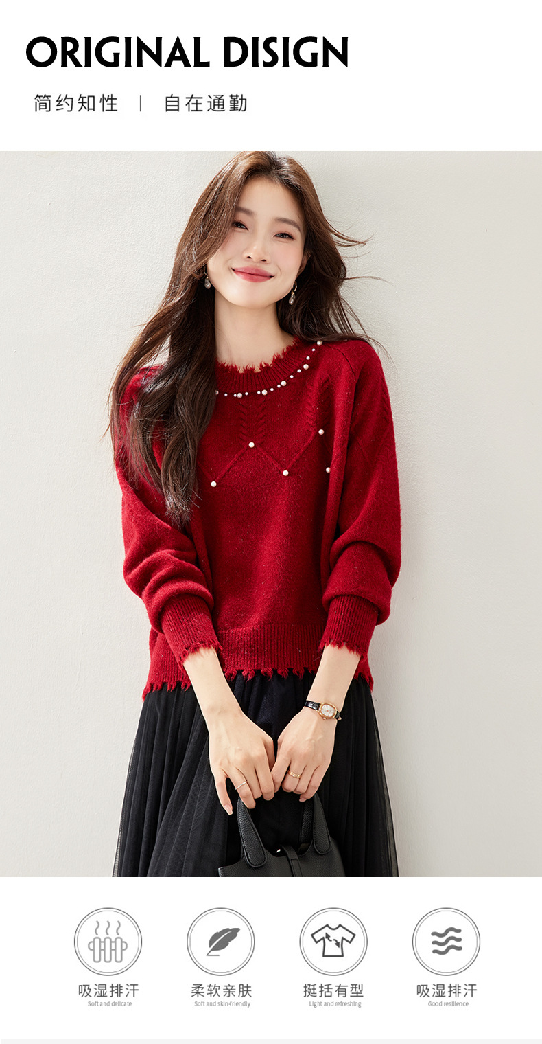 CC慵懒风圆领毛衣女秋冬2025新宽松洋气高级感内搭好看针织打底衫厚