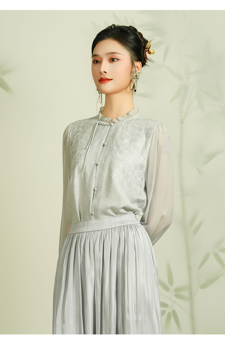 100%桑蚕丝乔万尼真丝衬衫新中式国风设计重工刺绣EM2C928
