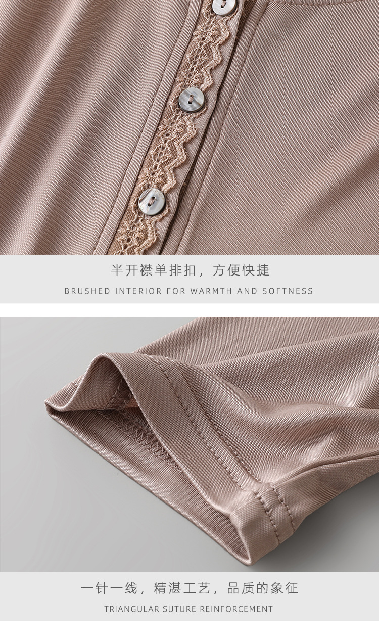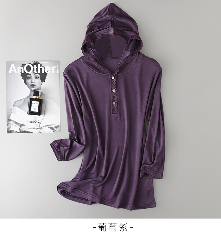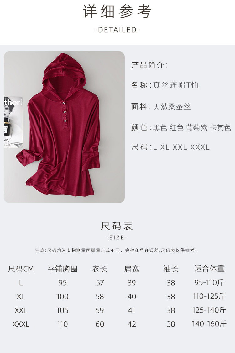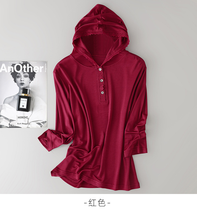 百媚生 重磅针织真丝蕾丝花边连帽七分袖上衣TX-067