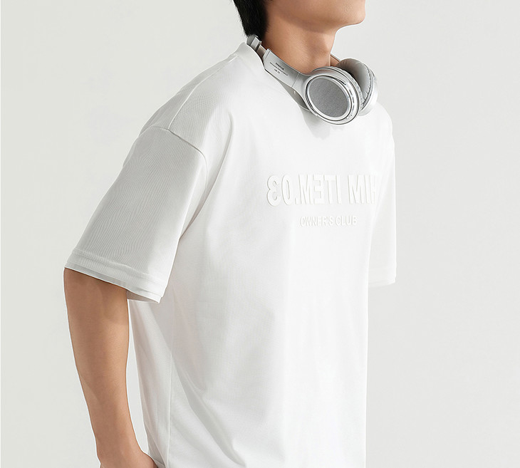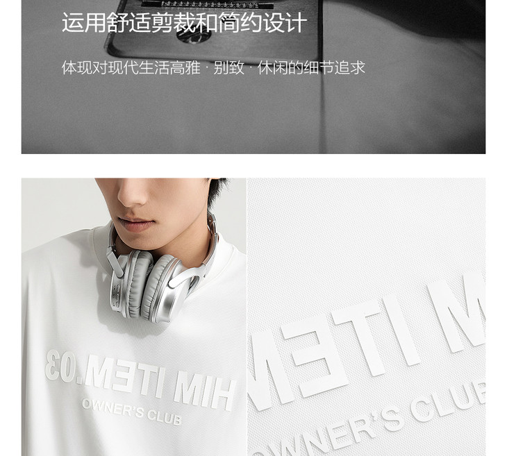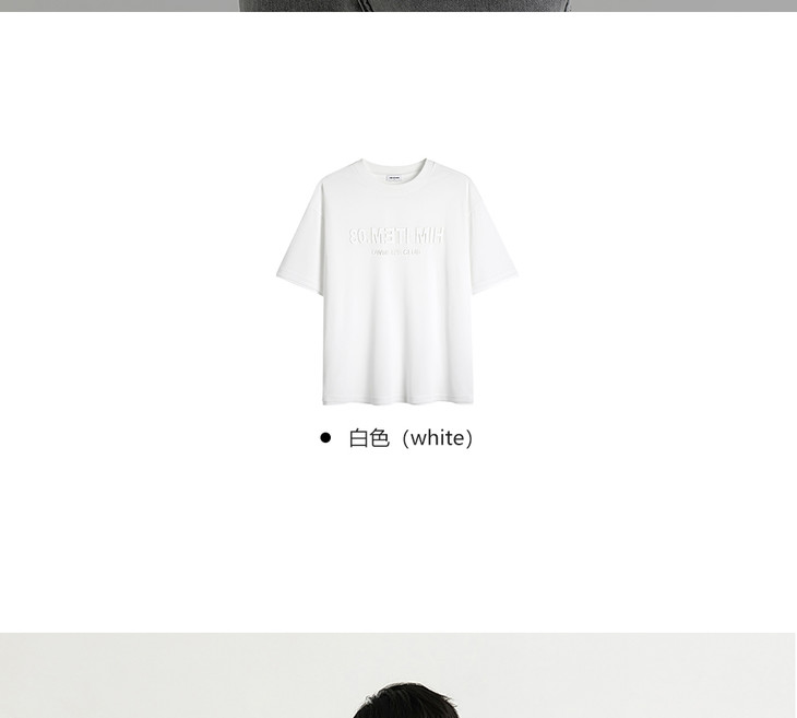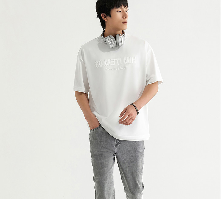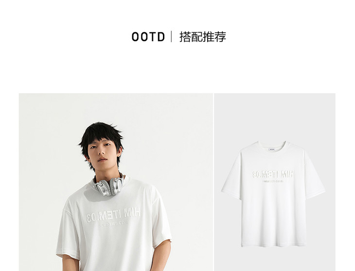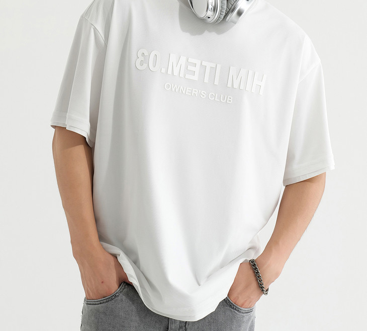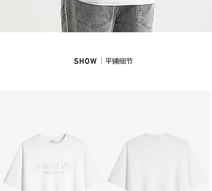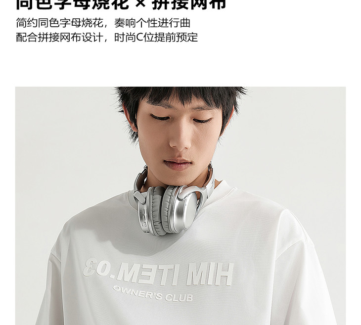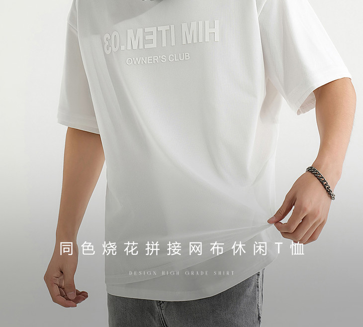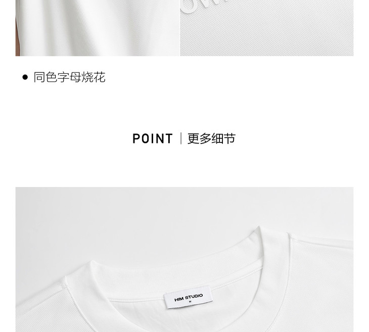 HIM漢崇 舒适透气休闲圆领T恤简约字母烧花宽松短袖衫 2025夏季