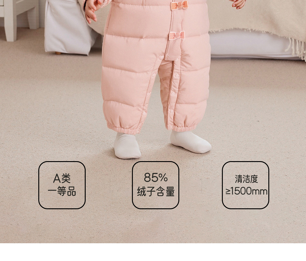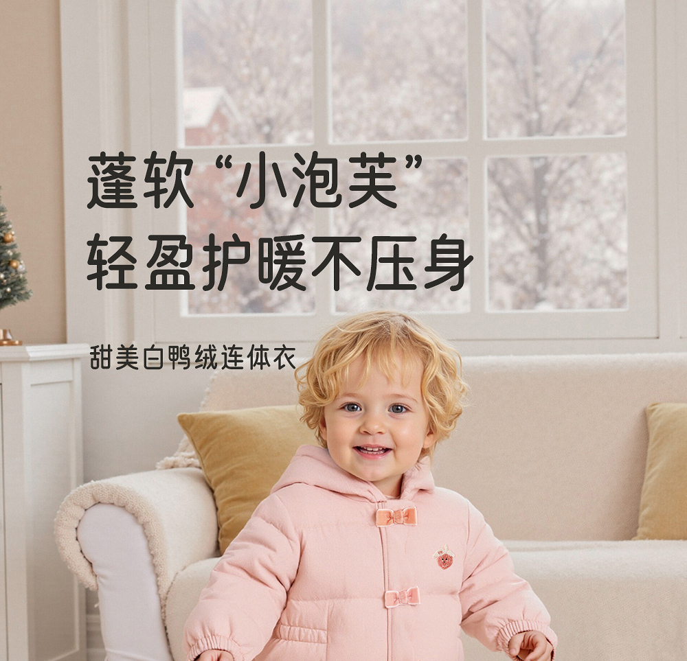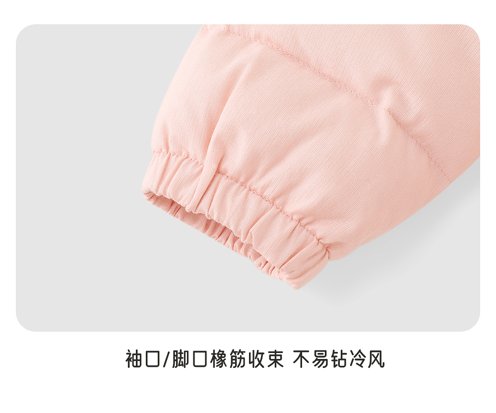 【商场同款】英氏婴儿连体衣羽绒哈衣连帽保暖粉色可爱秋冬新款超韧绒
