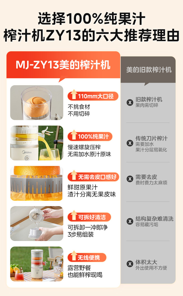 【美的 MJ-ZY12榨汁机】便携式电动橙汁机原汁机柠檬柳橙压果汁机