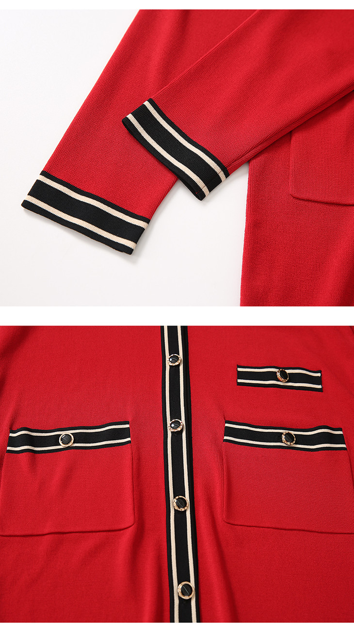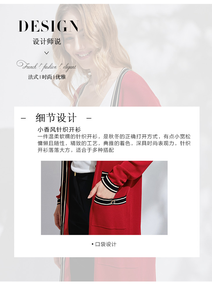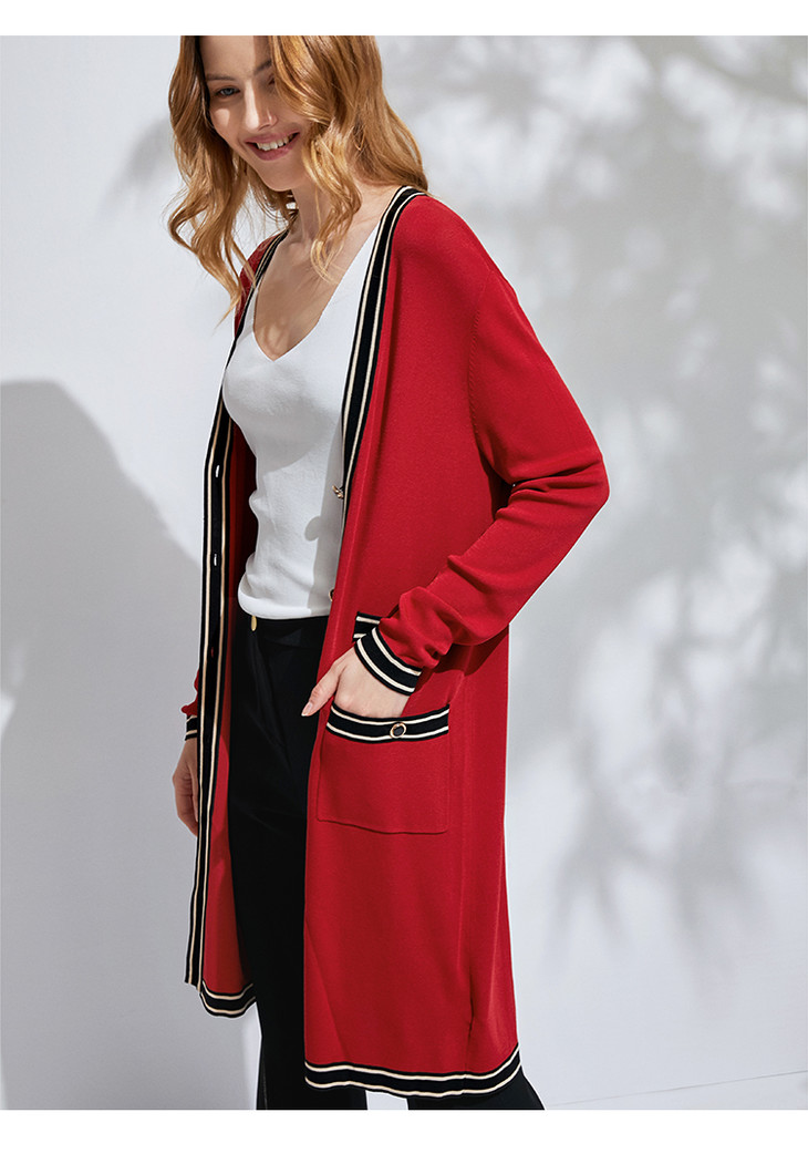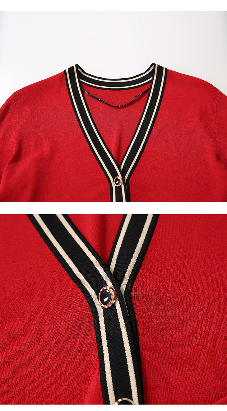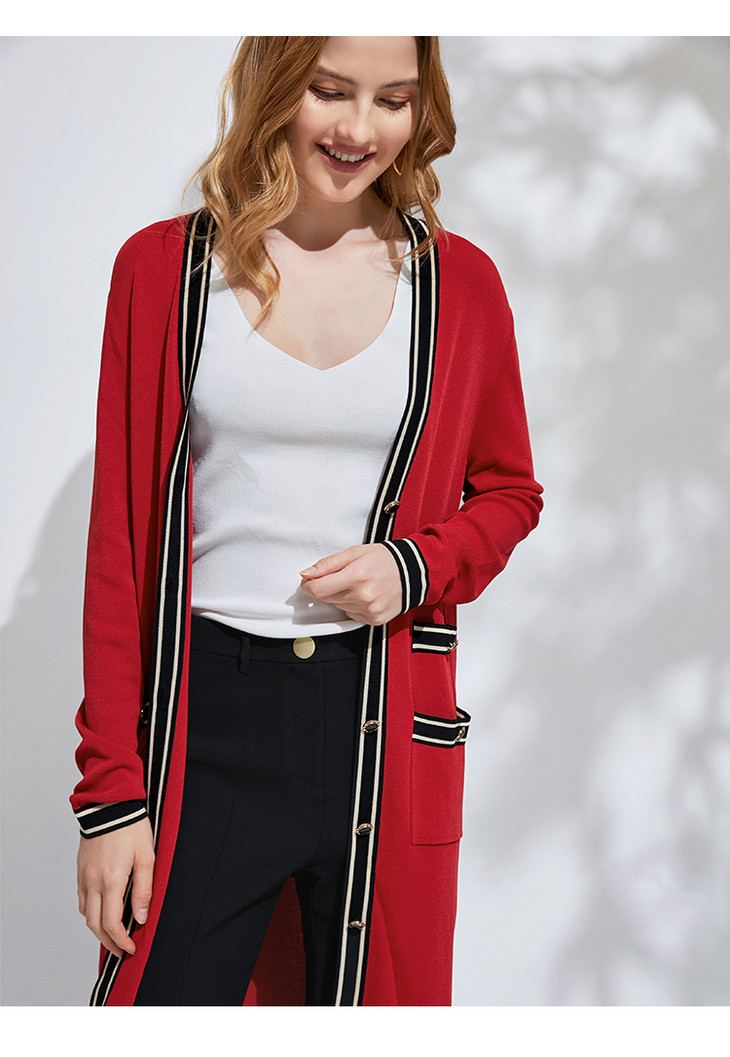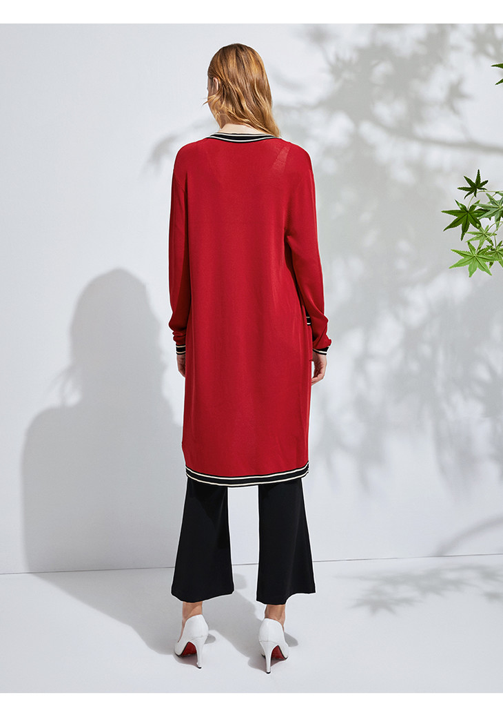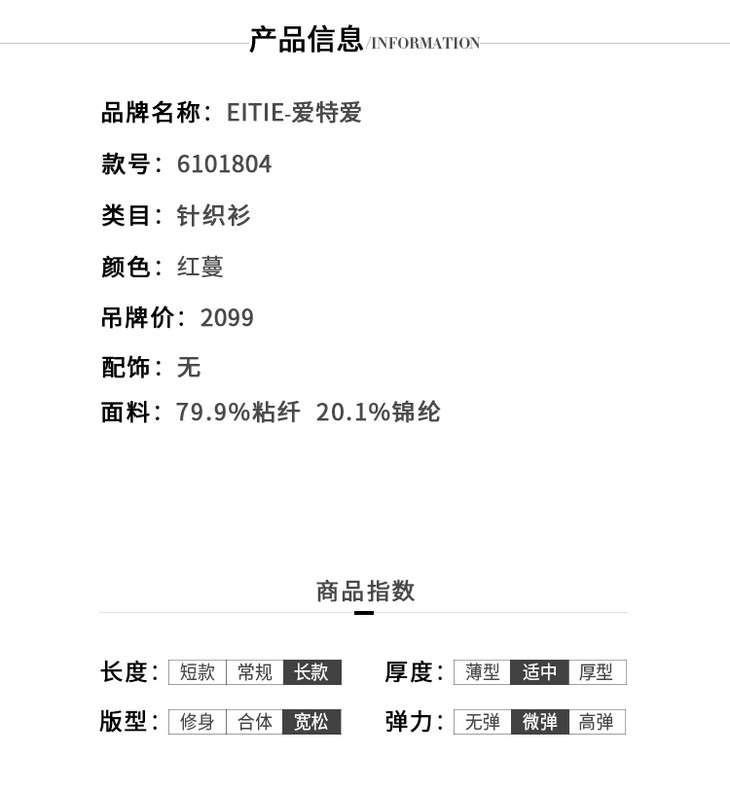 EITIE爱特爱冬季新款时尚撞色V领显瘦慵懒宽松针织开衫外套女6101804