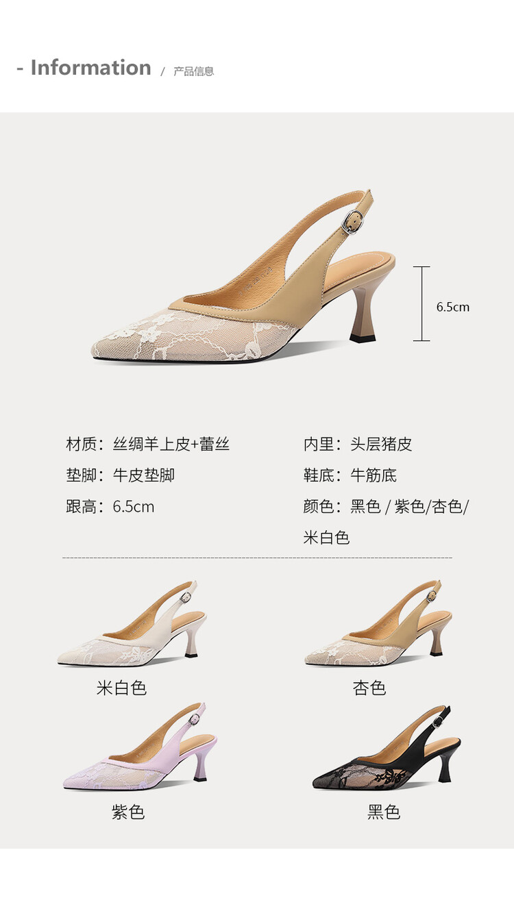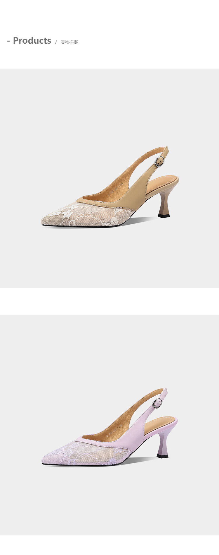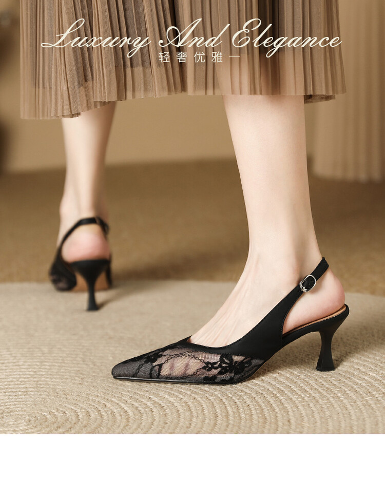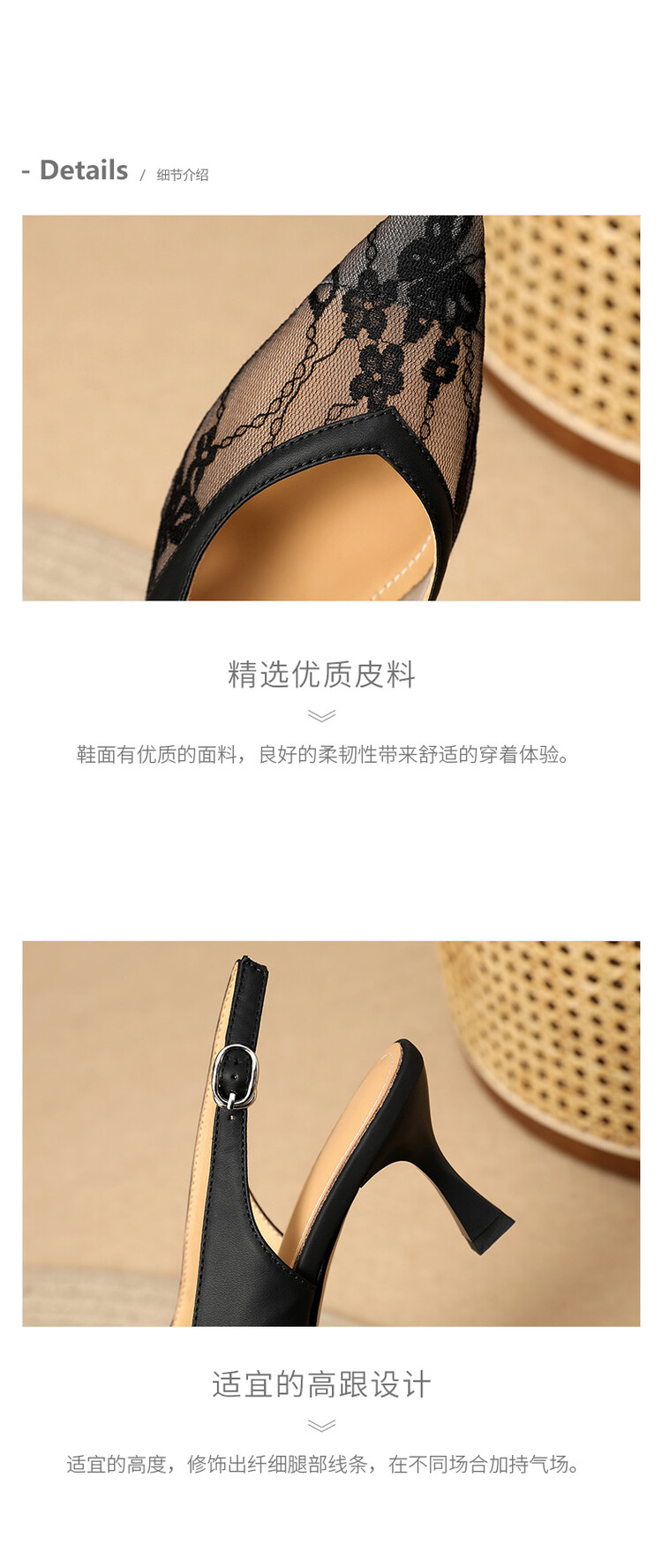 【预售5天】chic性感蕾丝镂空一字带罗马鞋法式小跟鞋高跟包头凉鞋女夏季BYXY&H1995