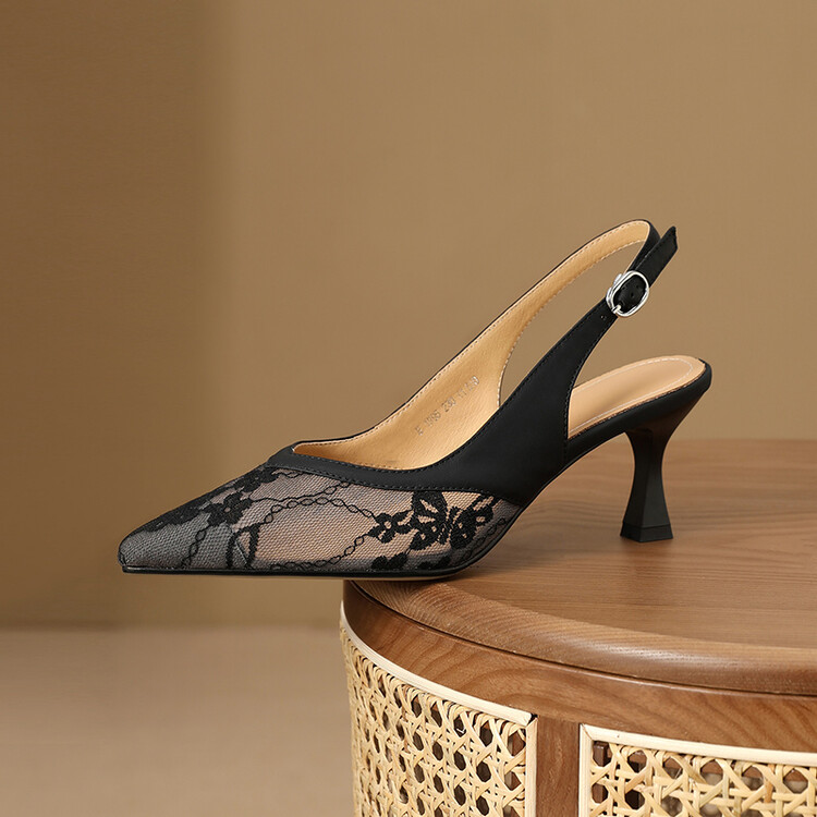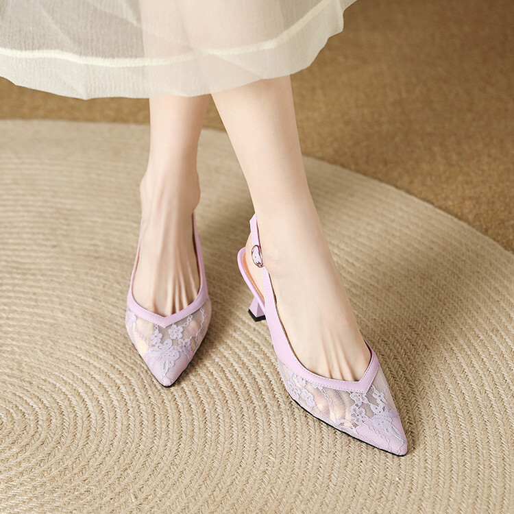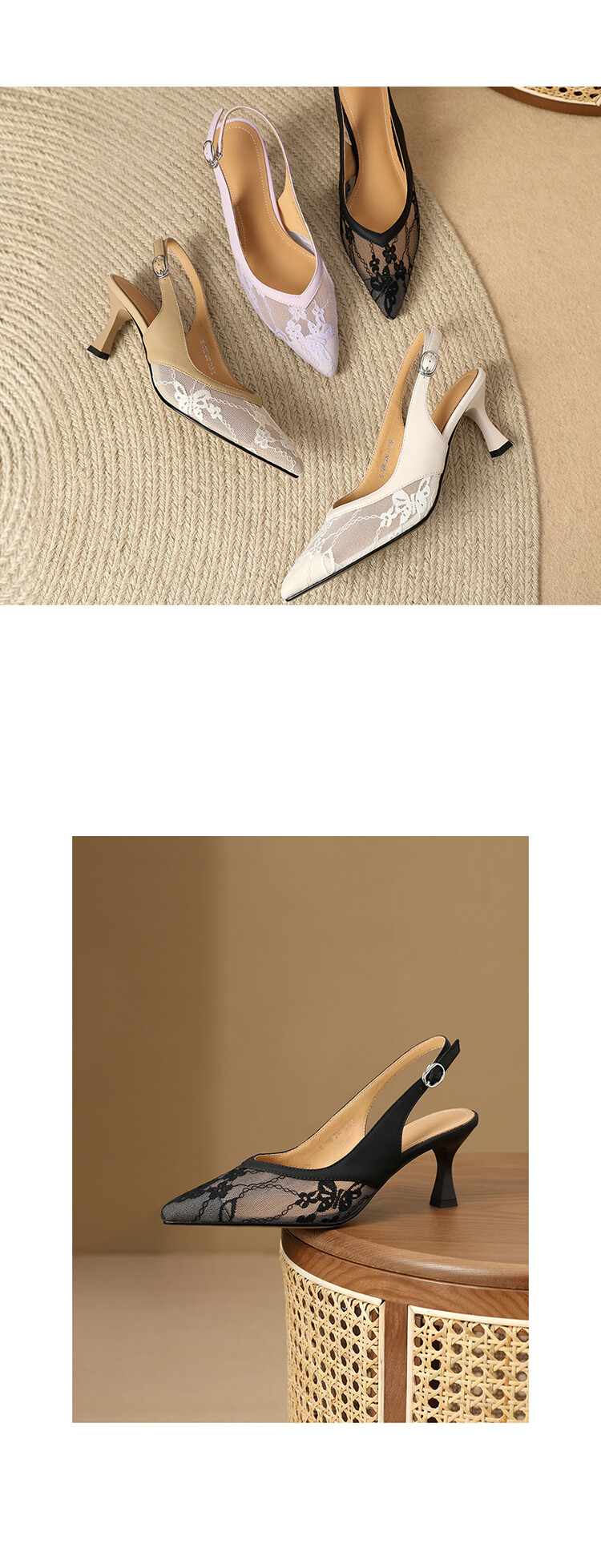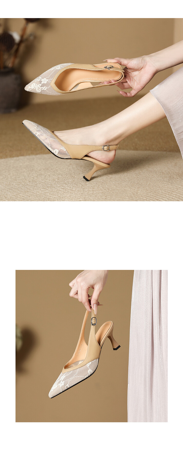 【预售5天】chic性感蕾丝镂空一字带罗马鞋法式小跟鞋高跟包头凉鞋女夏季BYXY&H1995