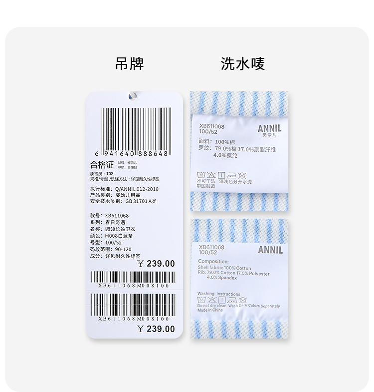 【实体店同款】男童圆领长袖卫衣春季新款安奈儿童装XB611068