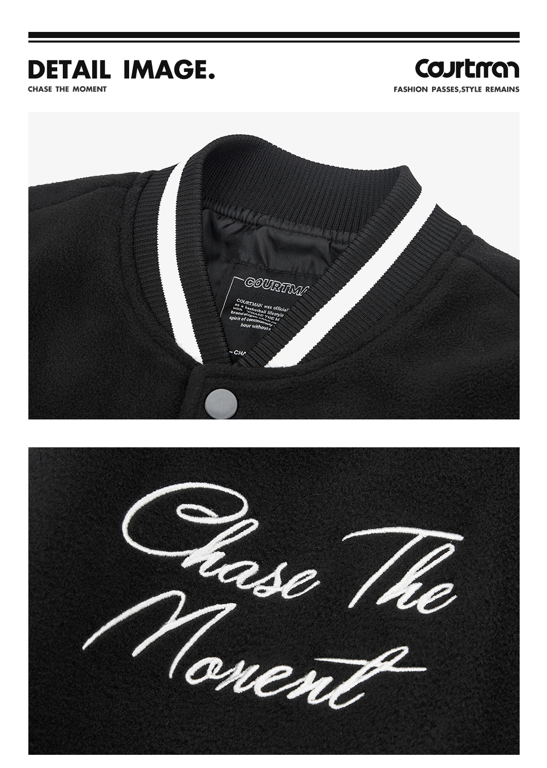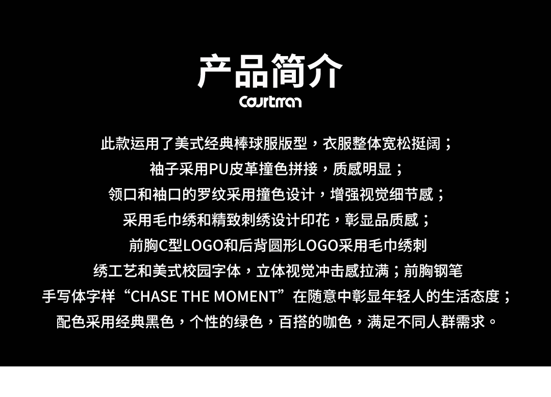 COURTMAN棒球服夹克重工刺绣2022秋冬潮美式男女宽松外套情侣运动