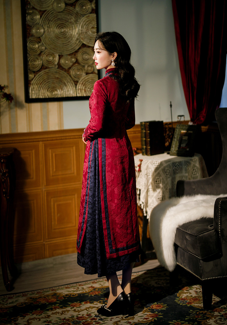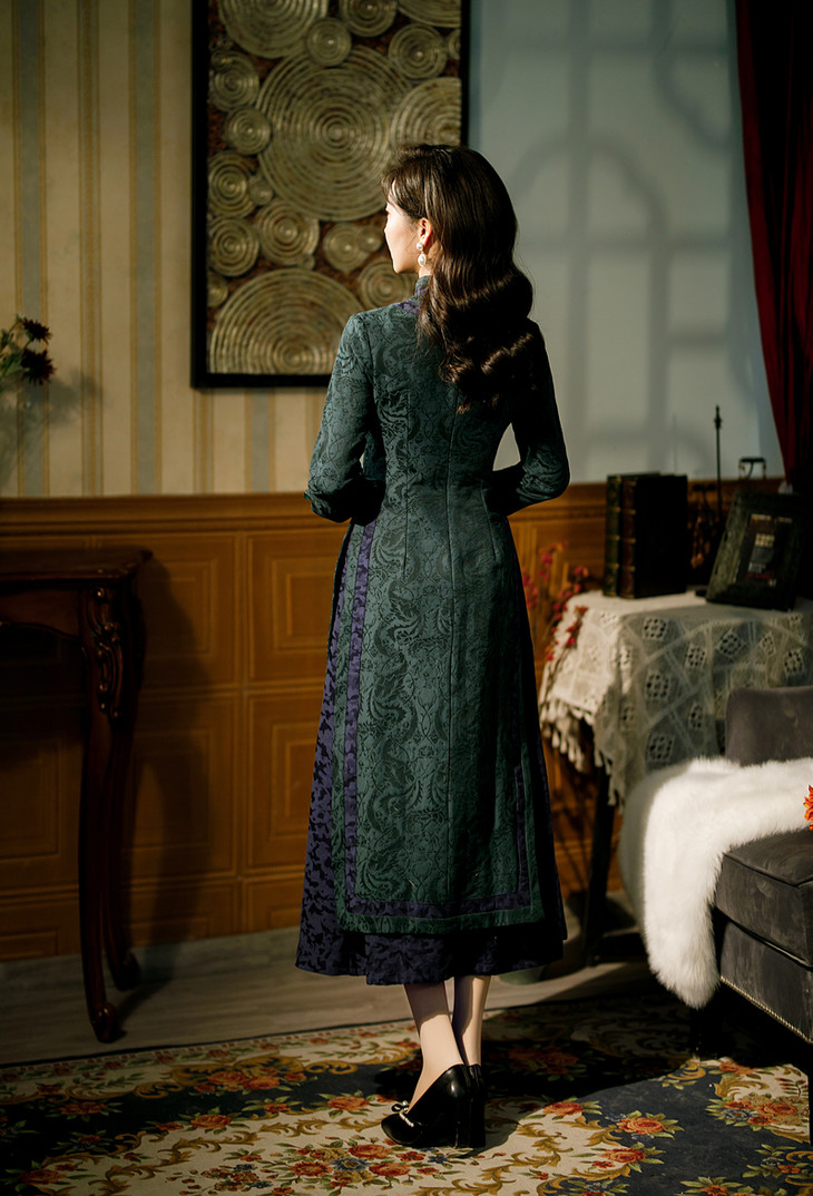 TQ 392601改良棉麻奥黛大码旗袍裙
