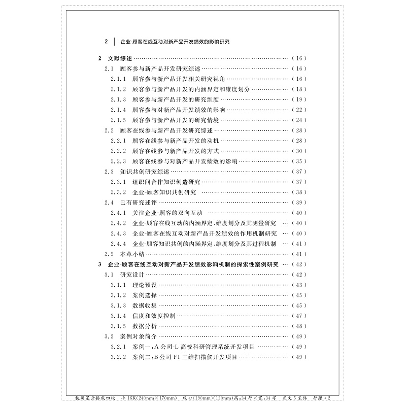 本书首先对顾客参与新产品开发、顾客在线参与新产品开发及知识共创相关理论进行文献综述,梳理出了与本研究框架相关的理论脉络;其次通过对4家企业的典型新产品开发项目的探索性案例研究,揭示企业-顾客在线互动、知识共创与新产品开发绩效的关系,初步得出了相关研究假设;再次提出了相应的11个假设和本研究的概念模型,接着通过对202家企业的新产品开发项目进行问卷调查,并采用因子分析、信度与效度检验、结构方程模型分析等统计分析方法对模型和假设进行了实证检验,得出了企业-顾客在线互动与新产品开发绩效关系的相关结论;最后在探索性案例研究、实证分析和核心变量作用关系模型分析的基础上,进一步深入探究企业-顾客知识共创的过程机制,提出了相应的管理启示。