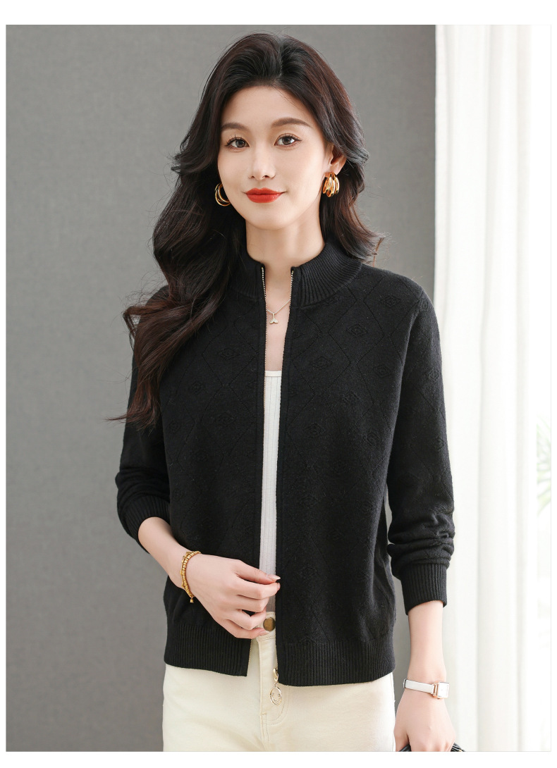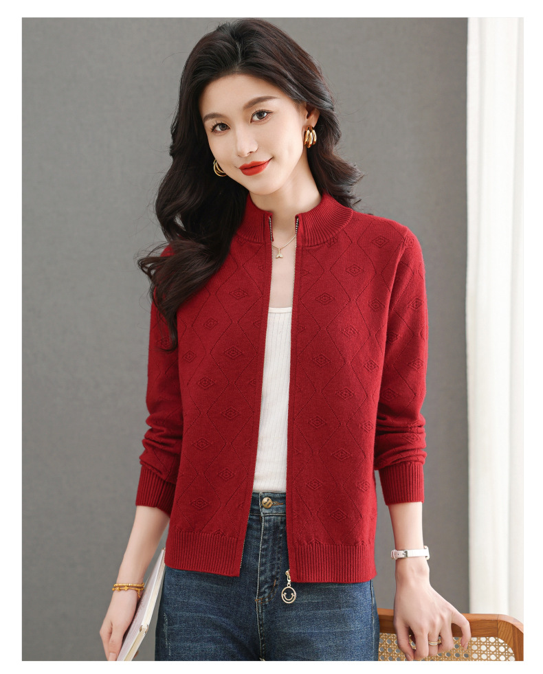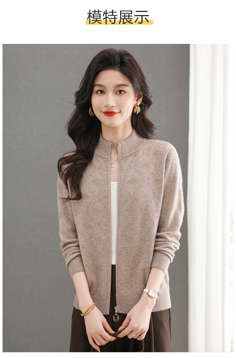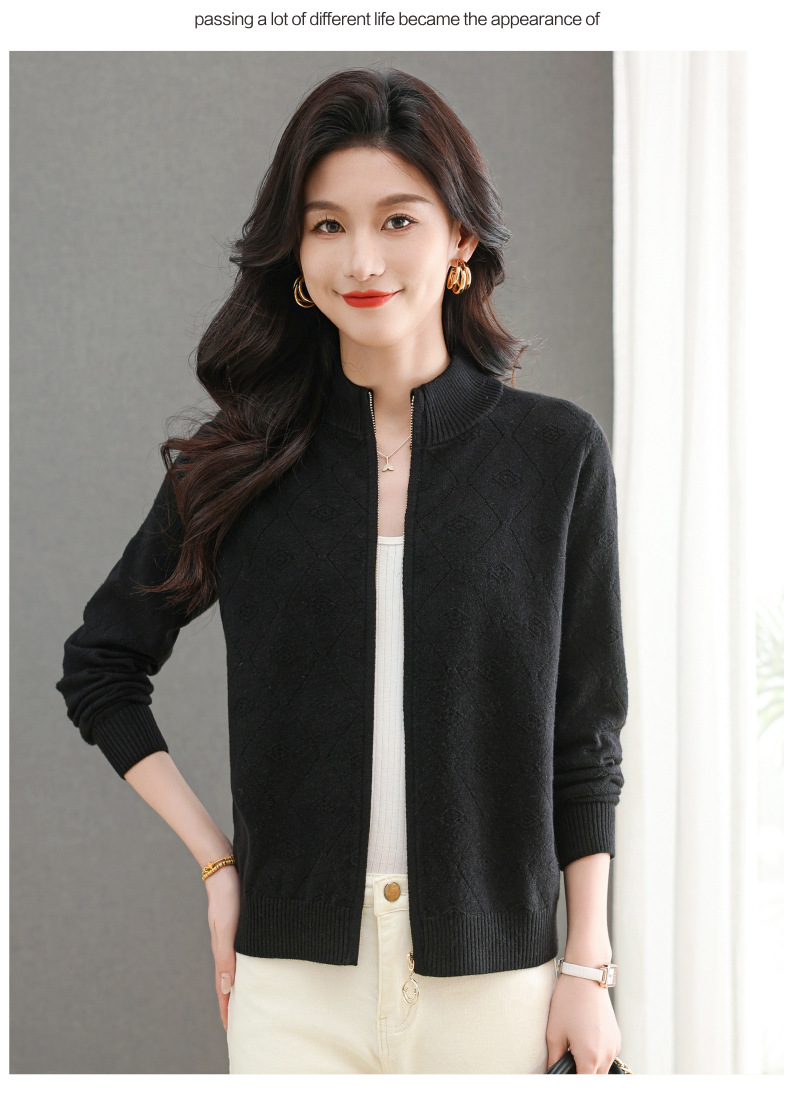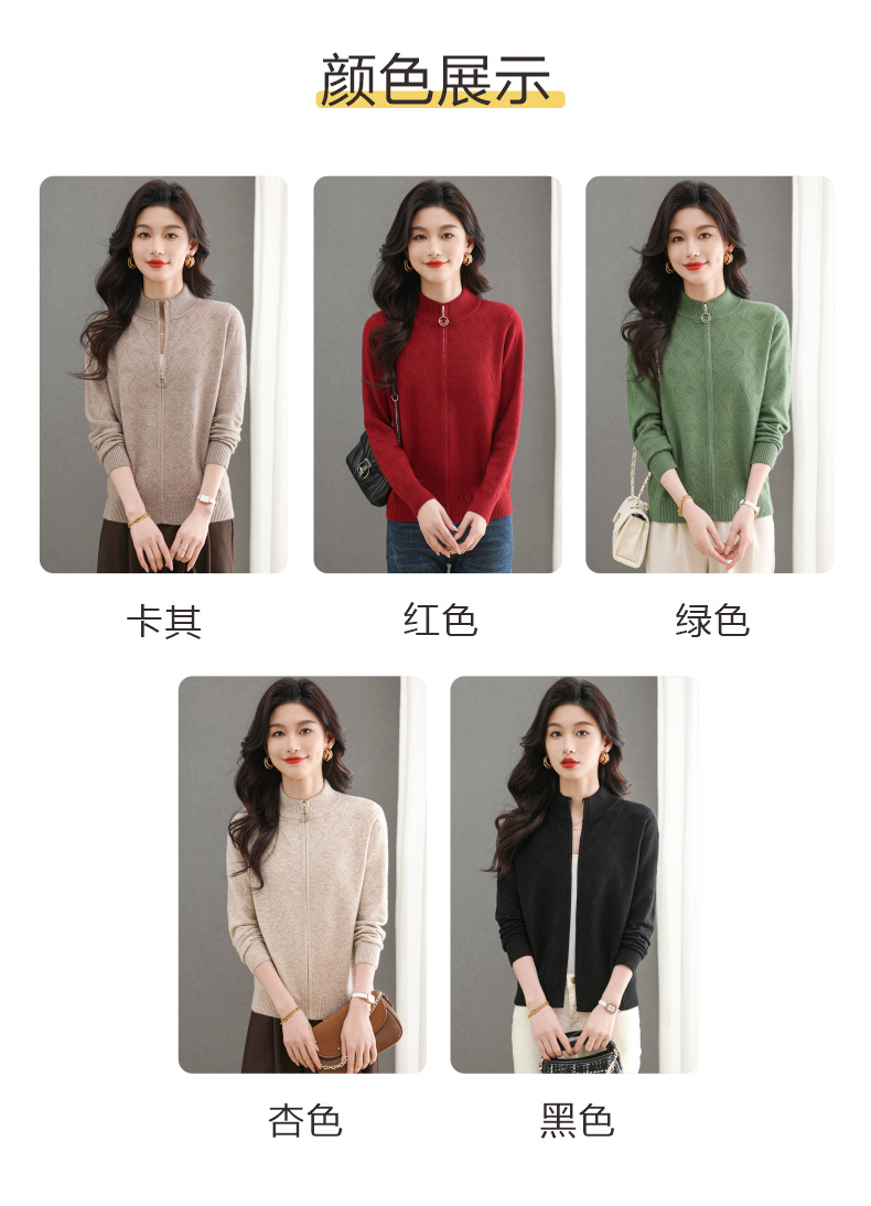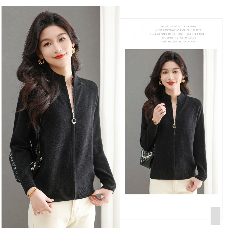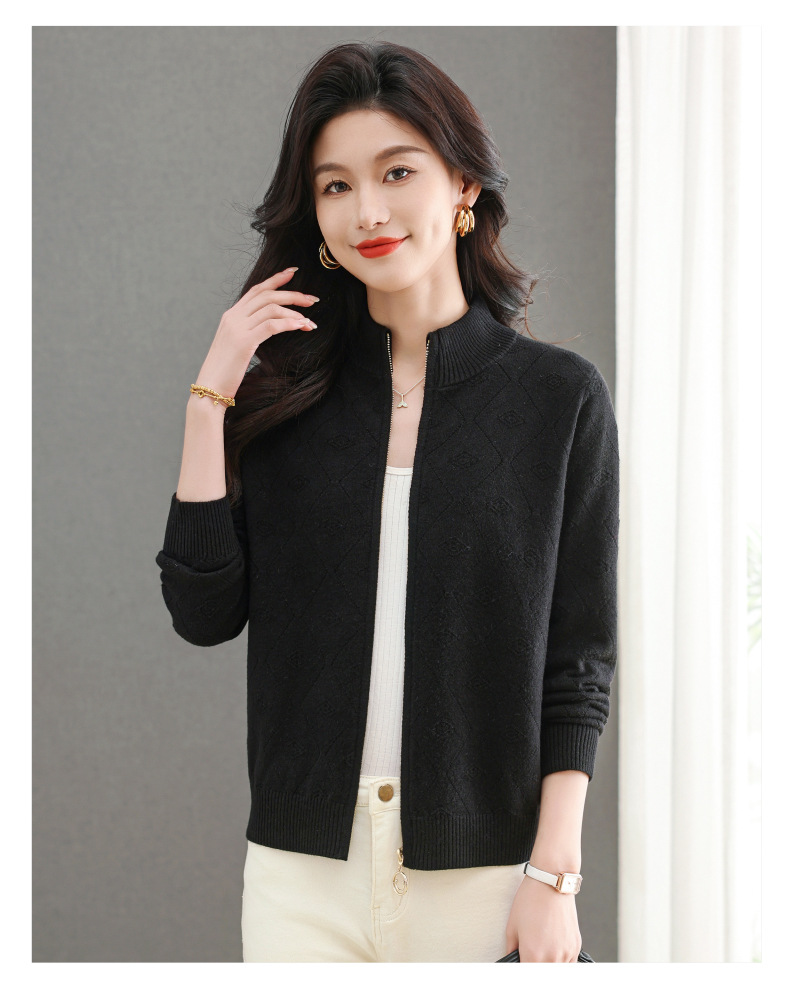 CC-101-96118立领短款外套女士毛衣开衫2025春秋装新款拉链针织衫上衣提花外搭