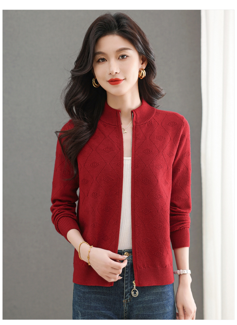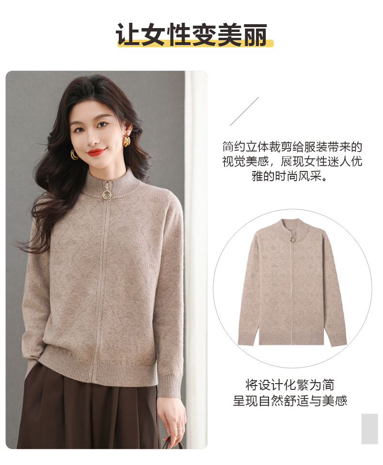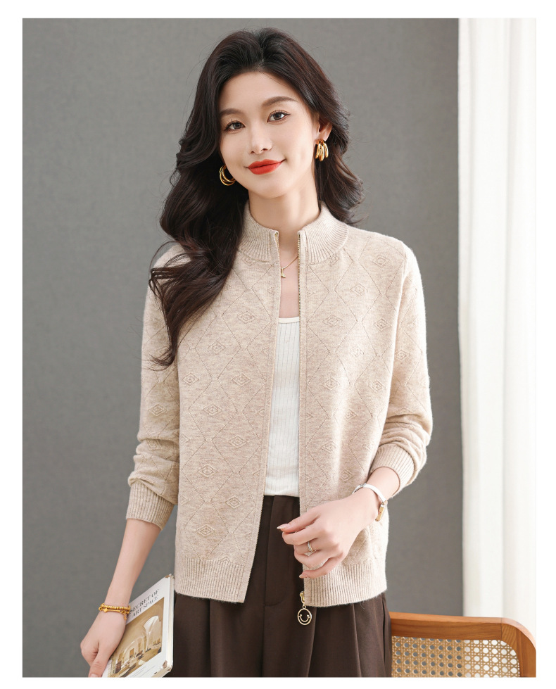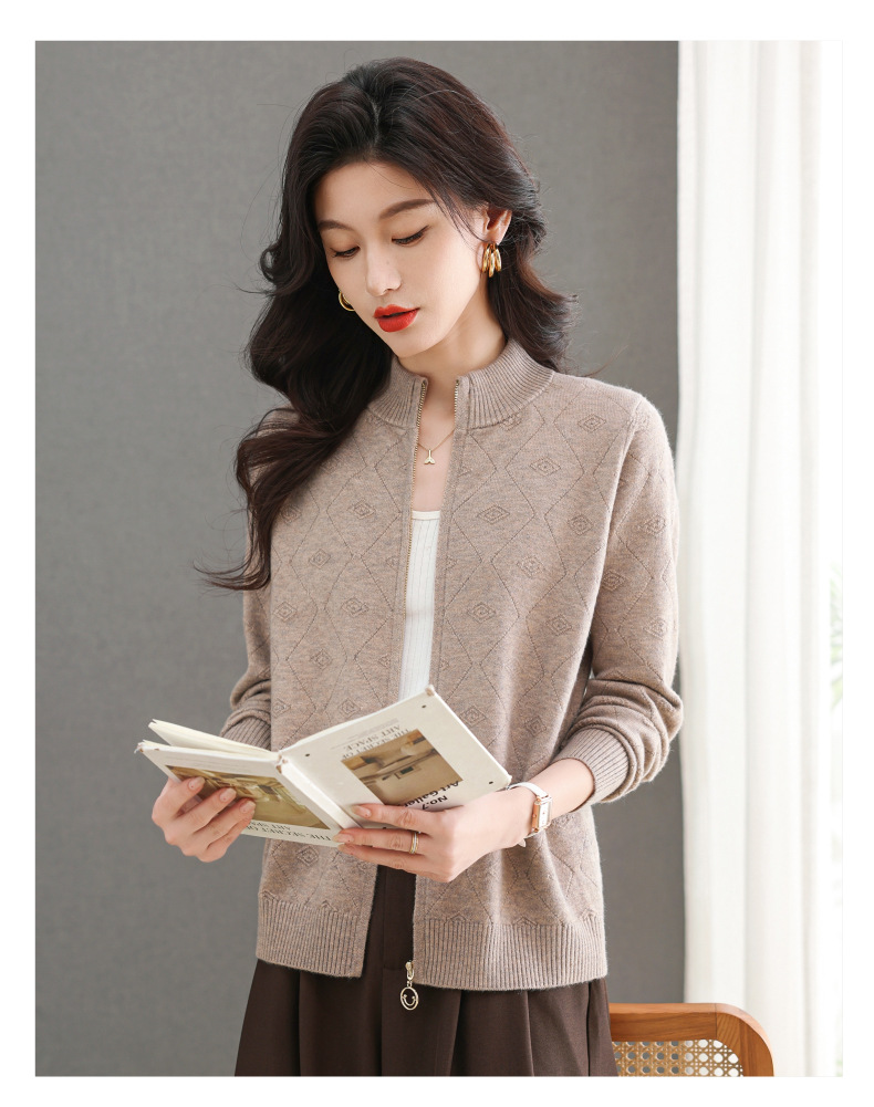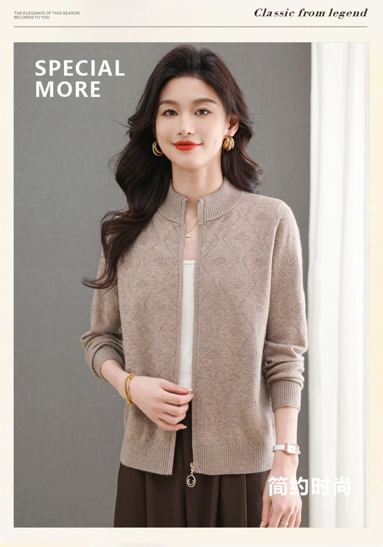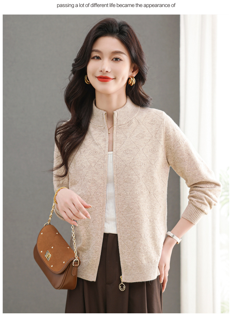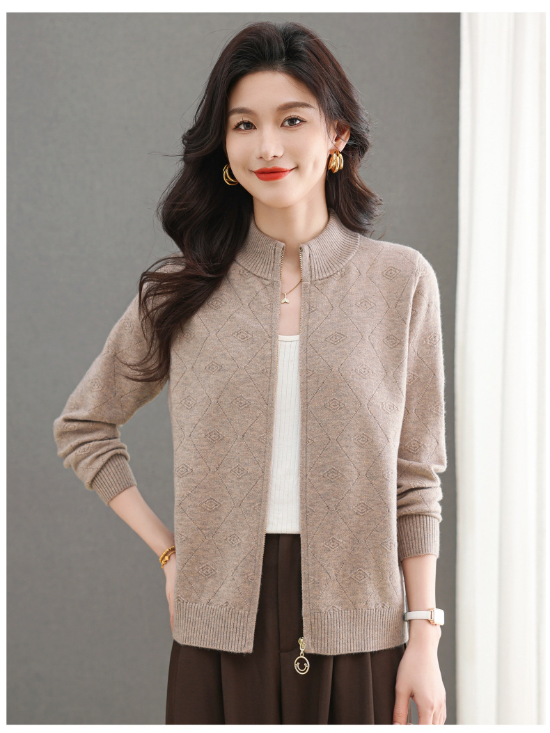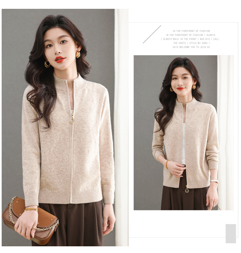 CC-101-96118立领短款外套女士毛衣开衫2025春秋装新款拉链针织衫上衣提花外搭