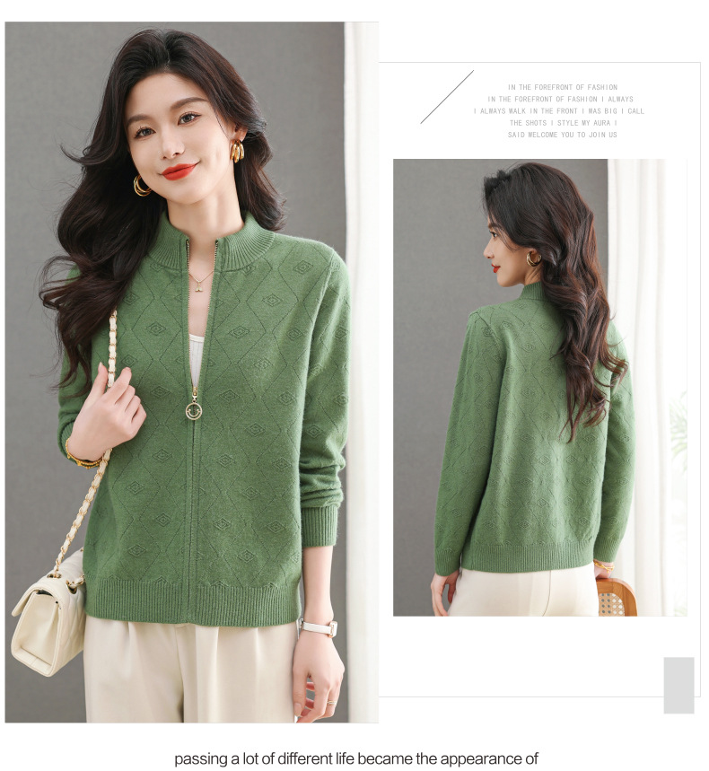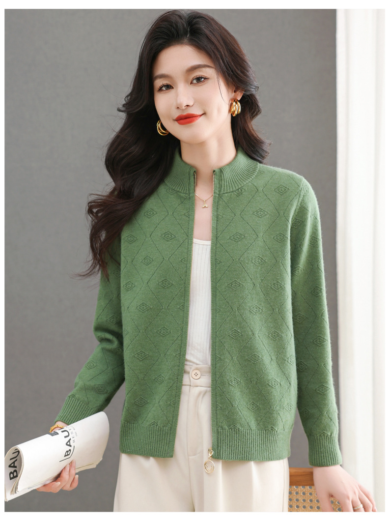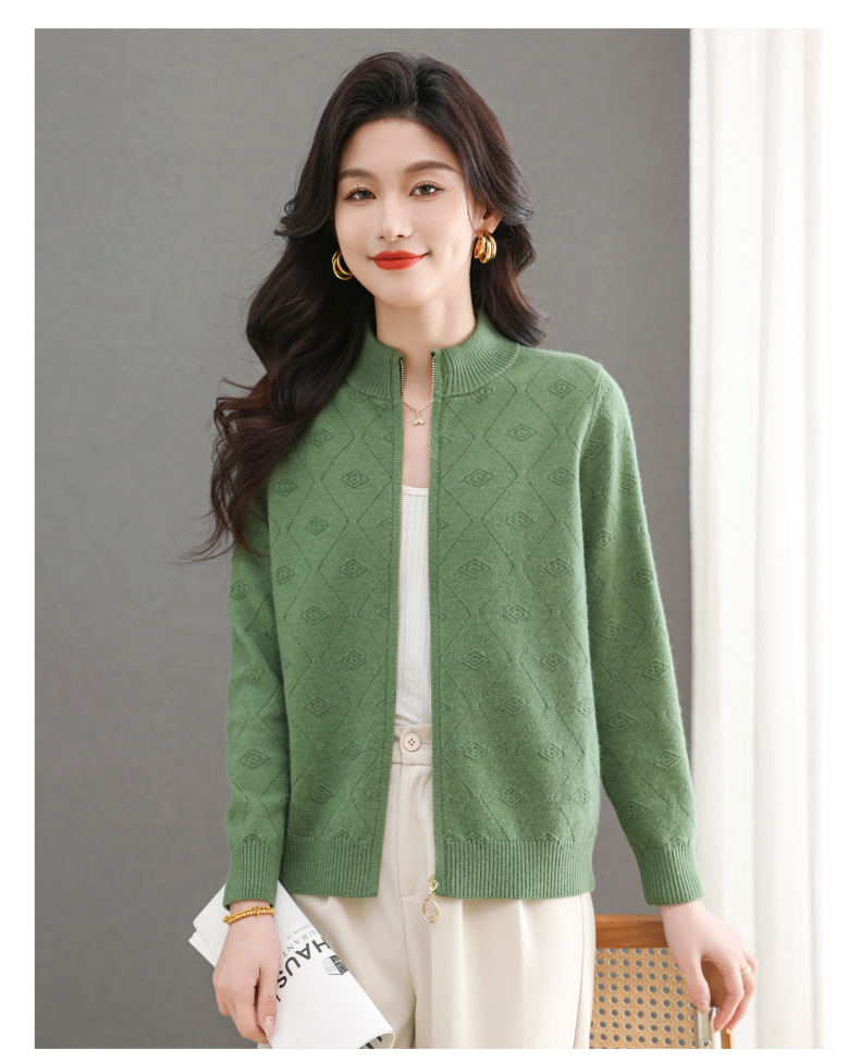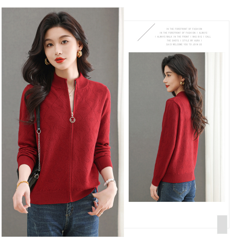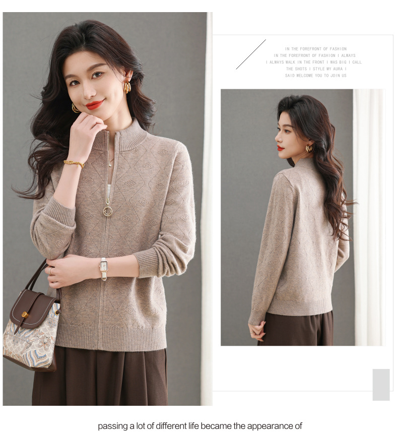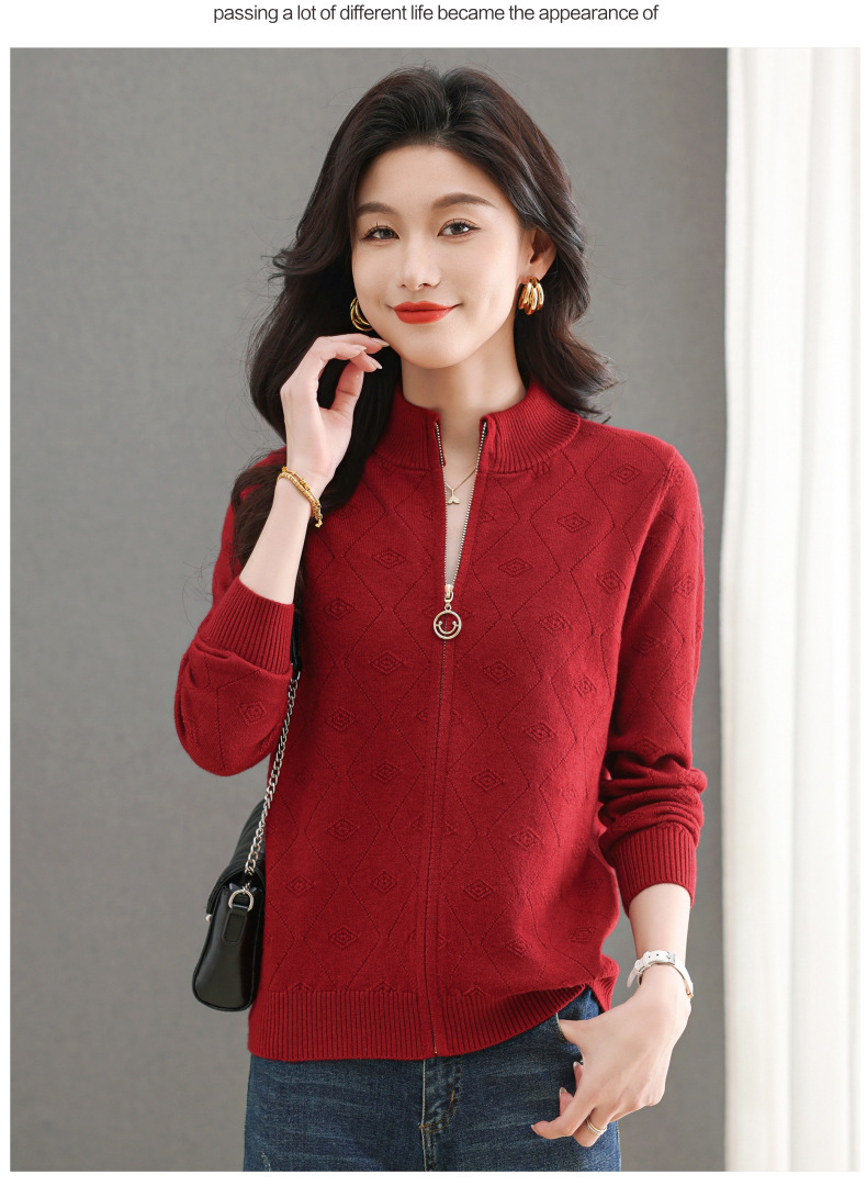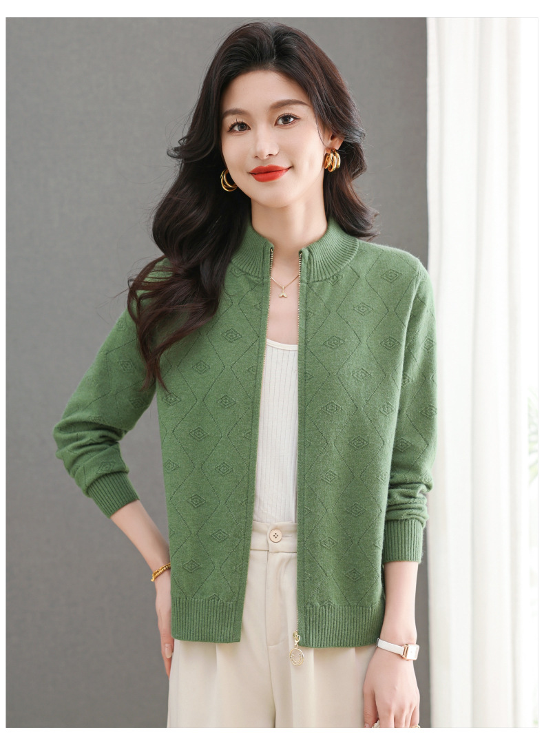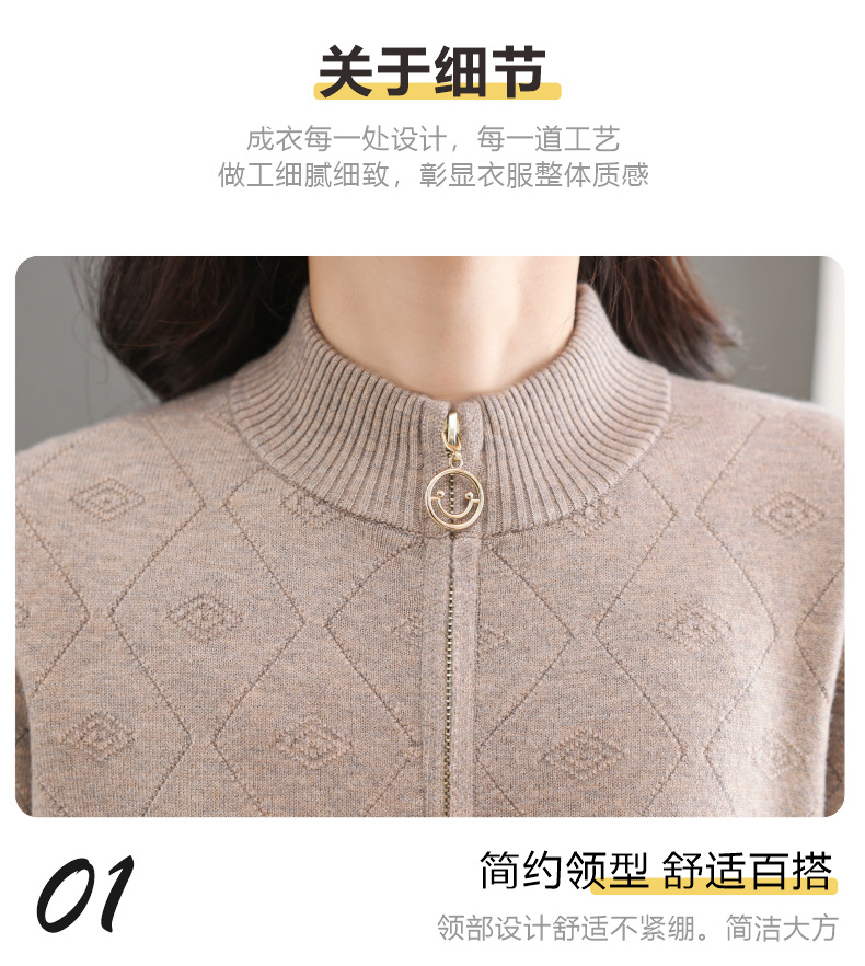 CC-101-96118立领短款外套女士毛衣开衫2025春秋装新款拉链针织衫上衣提花外搭