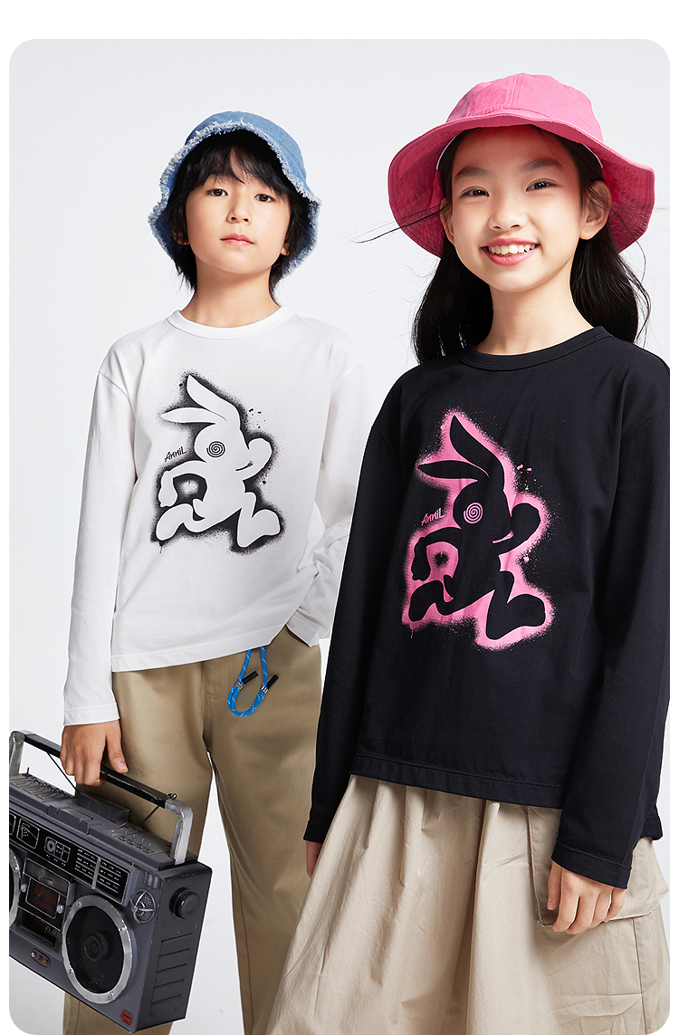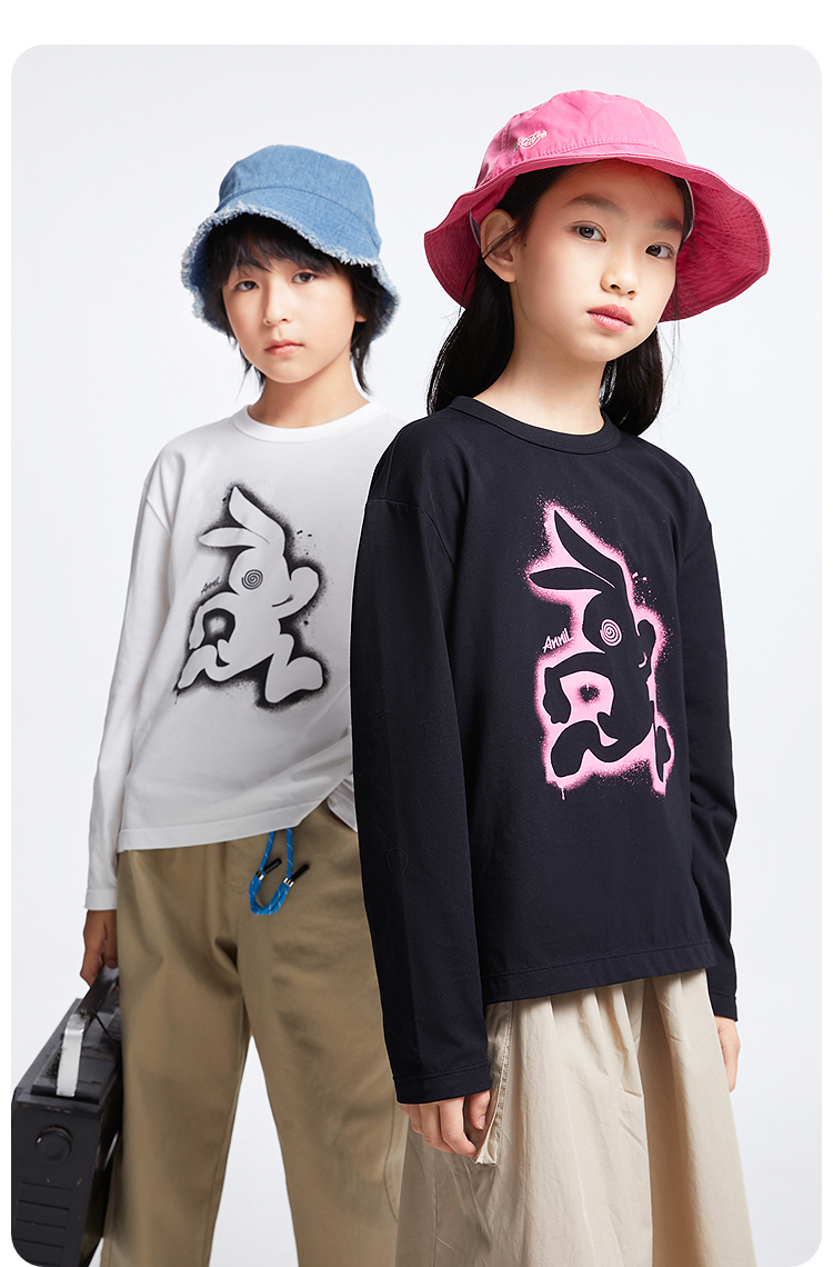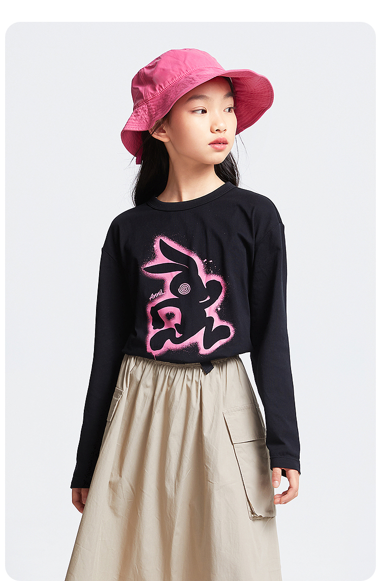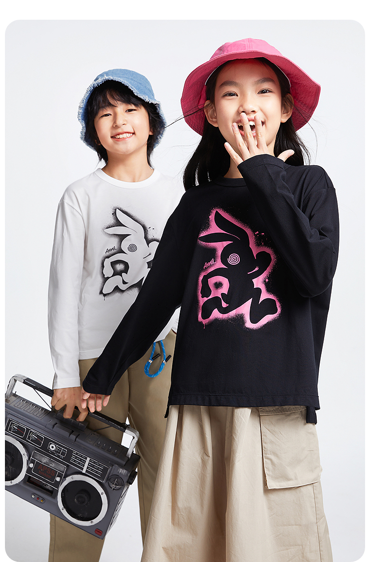 男女童圆领长袖T恤春季新款安奈儿童装EM511025