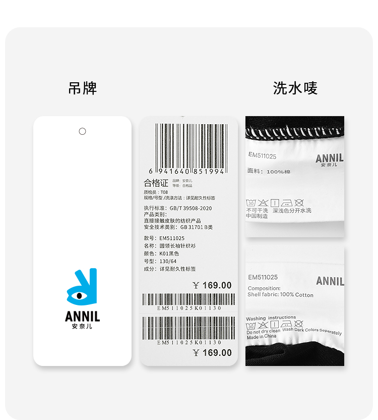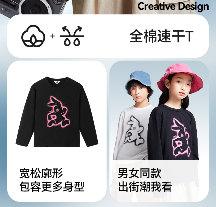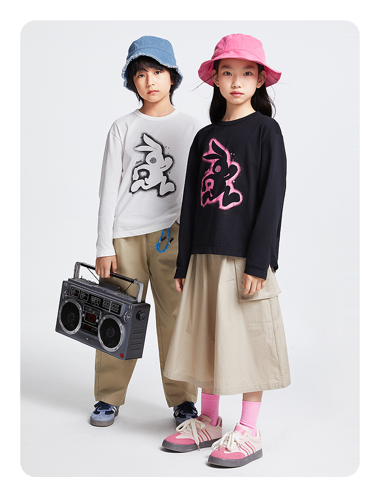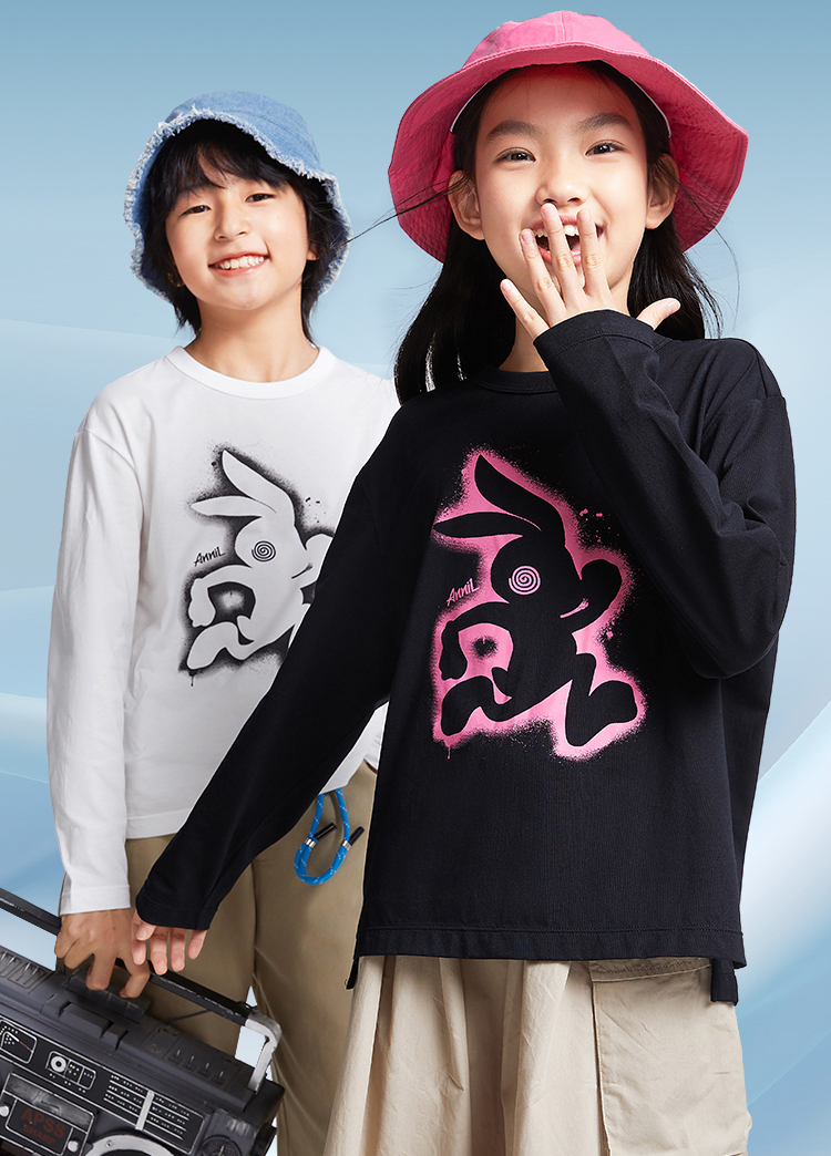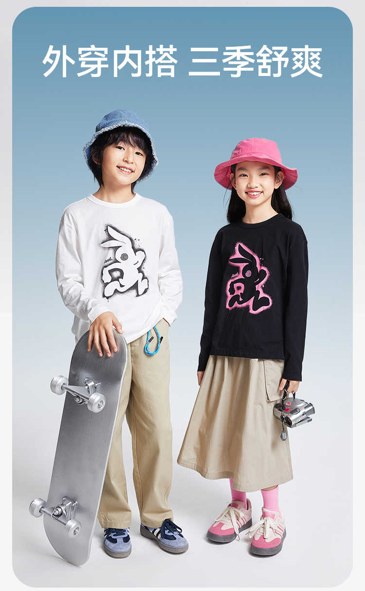 男女童圆领长袖T恤春季新款安奈儿童装EM511025