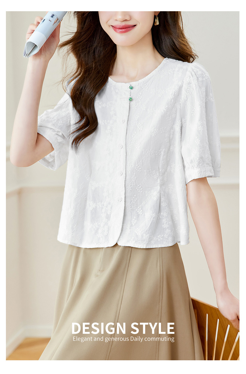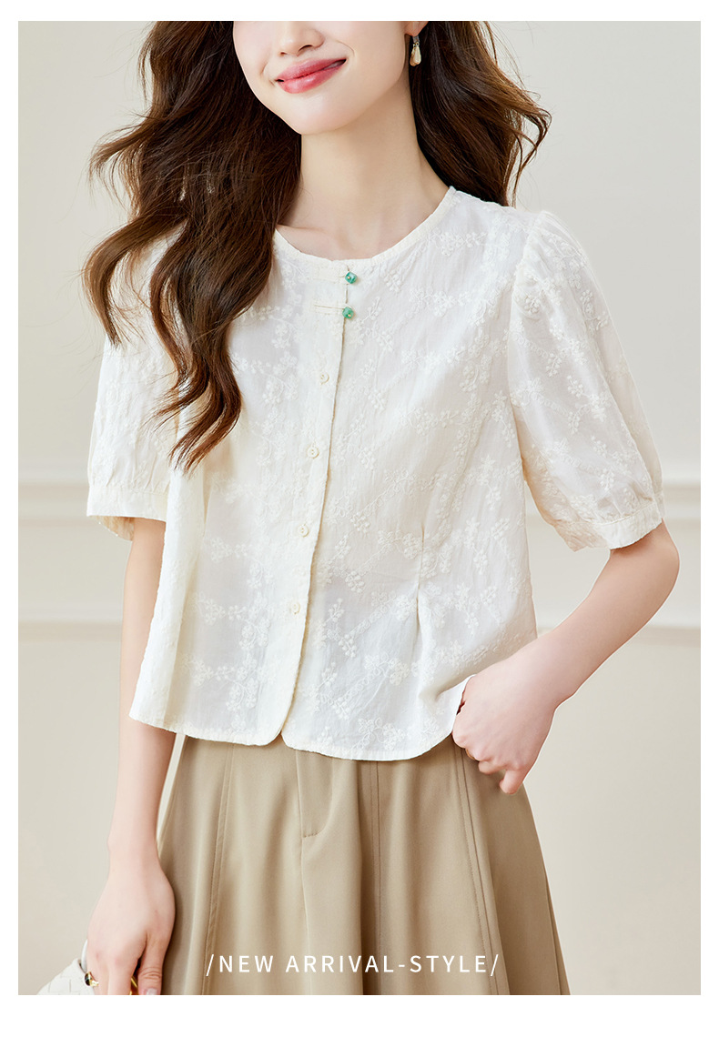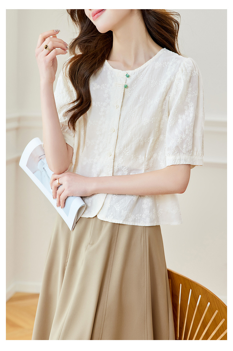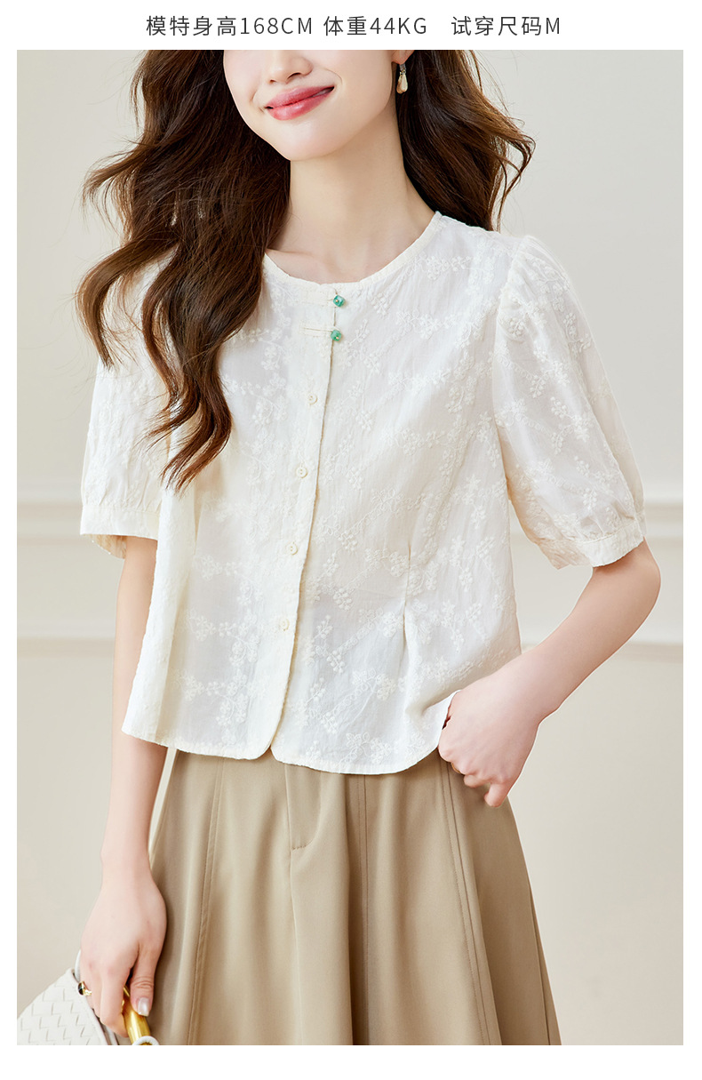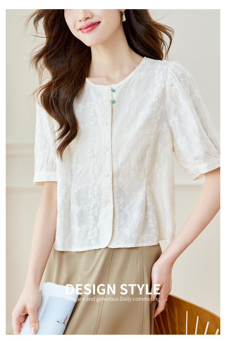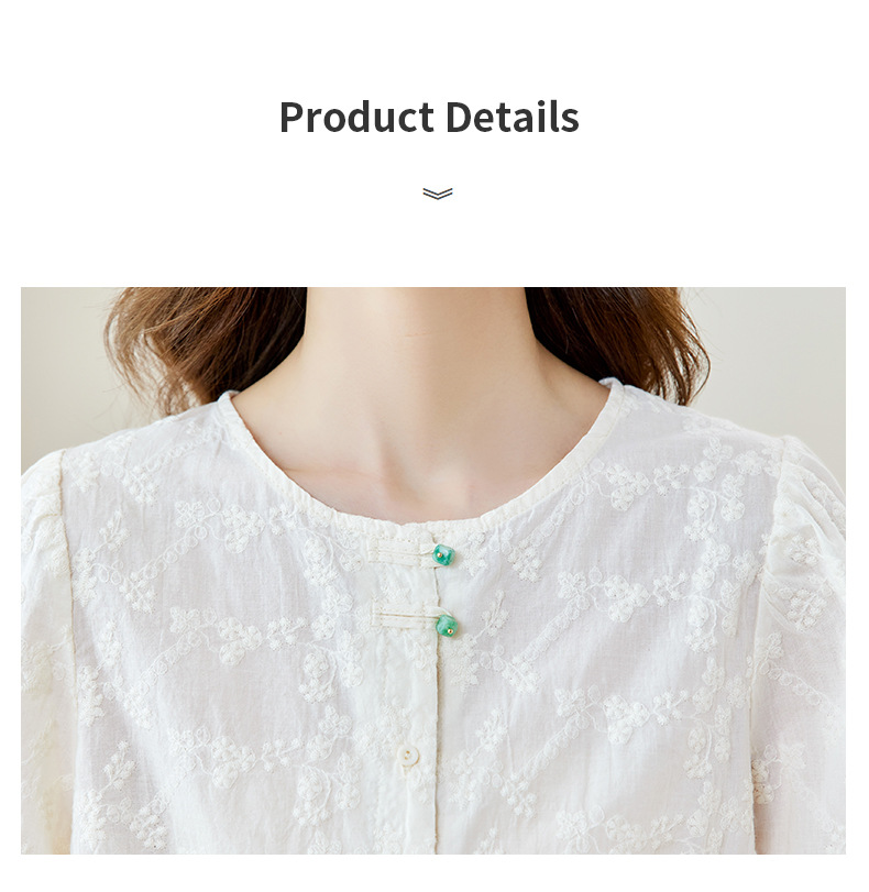 雀说圆领刺绣国风盘扣衬衫女新款轻熟风衬衣AL44191