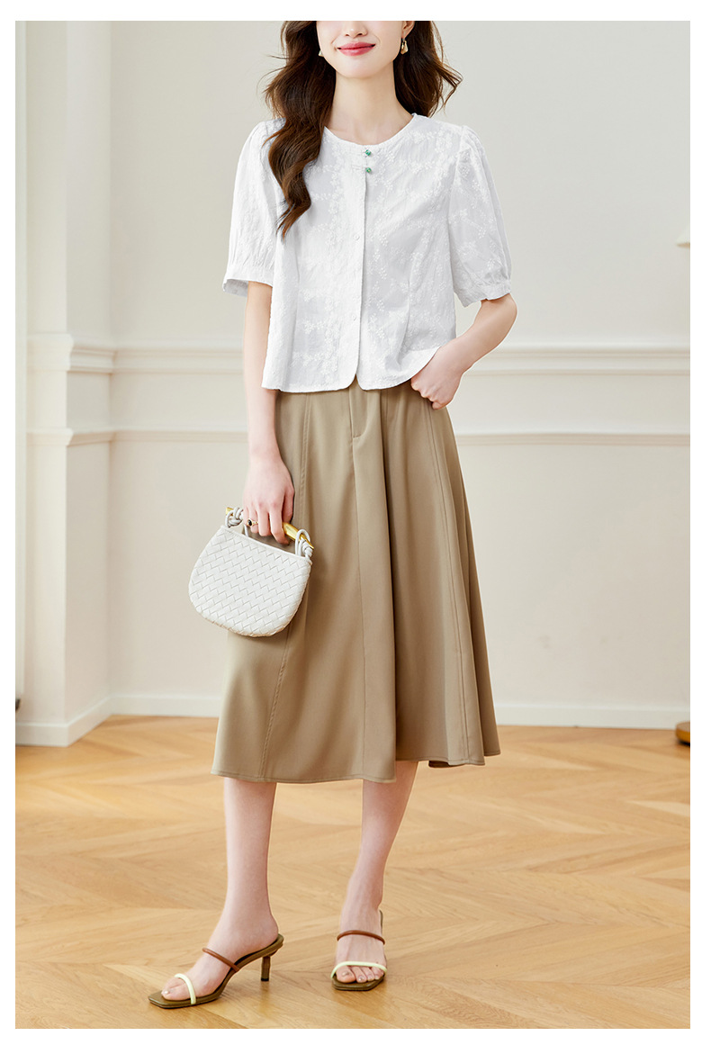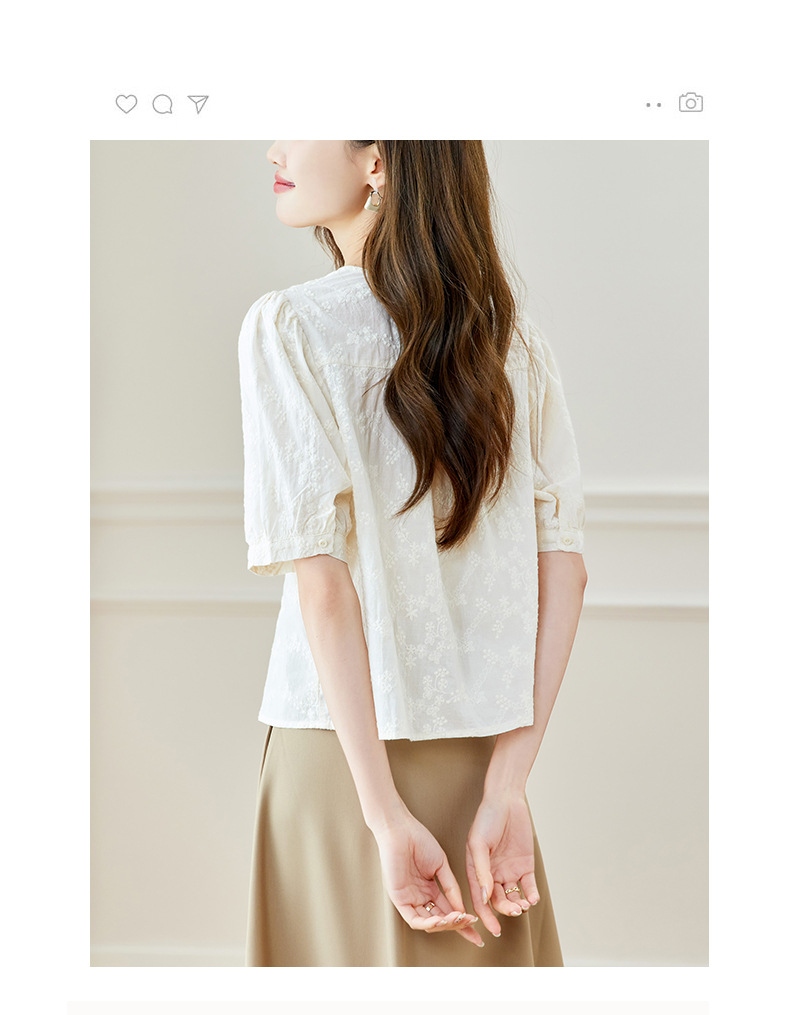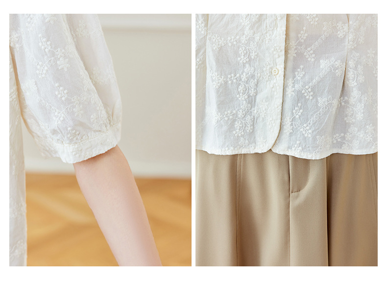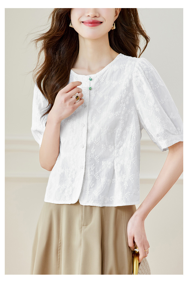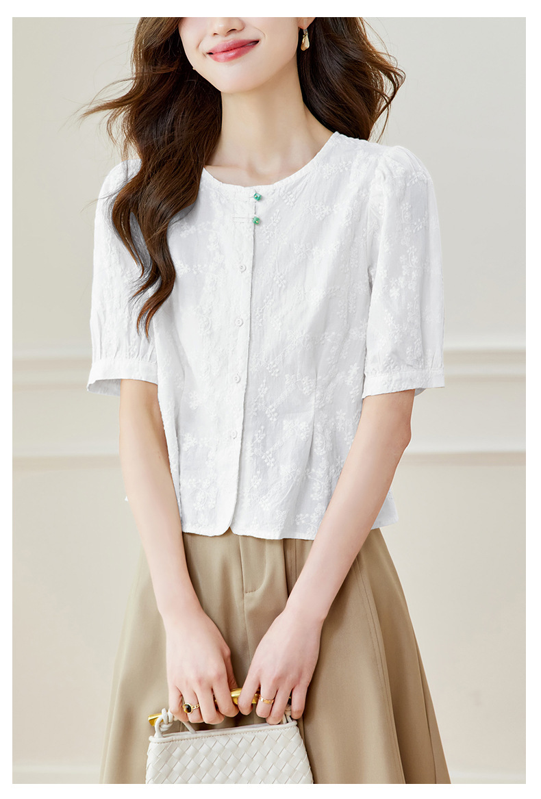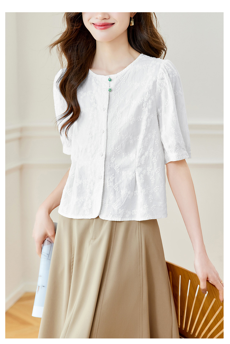 雀说圆领刺绣国风盘扣衬衫女新款轻熟风衬衣AL44191