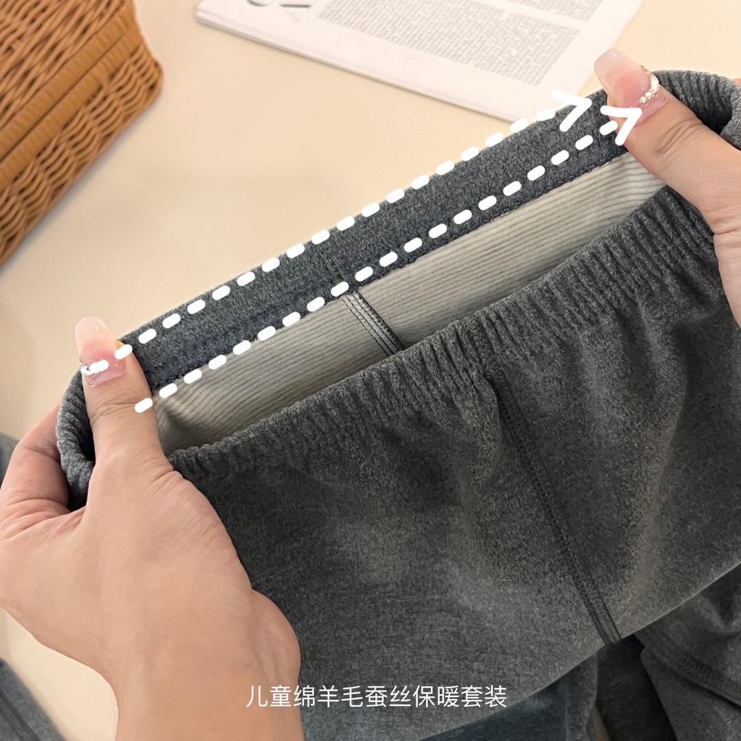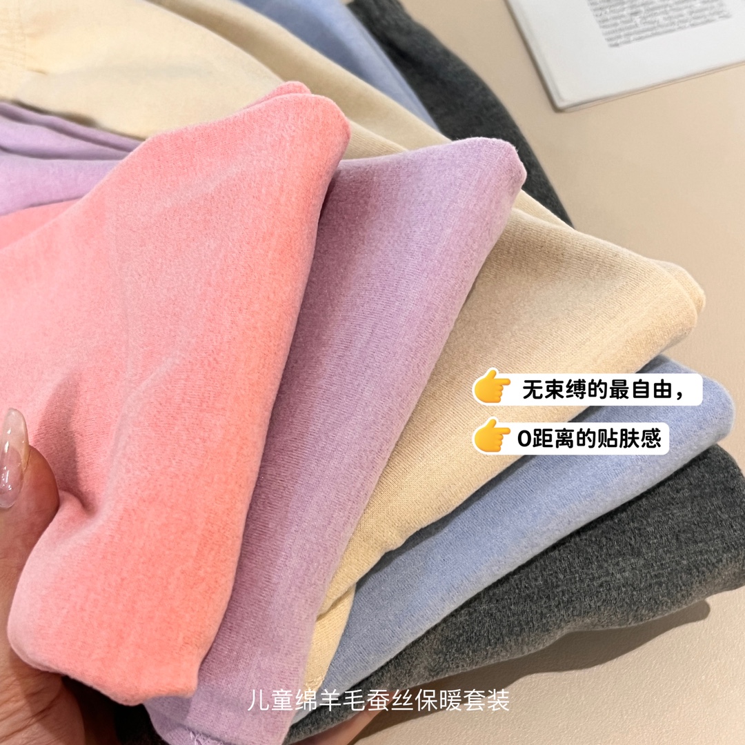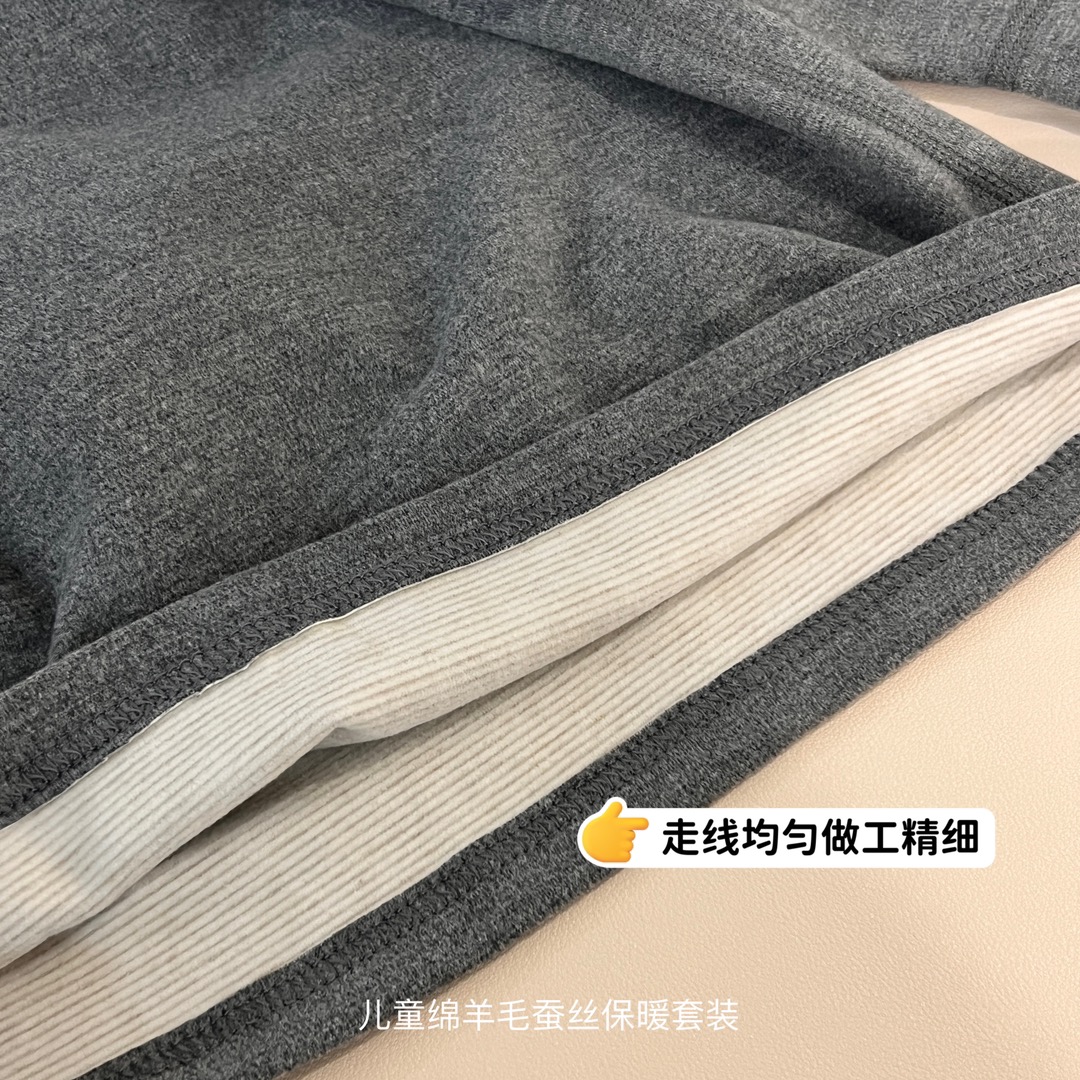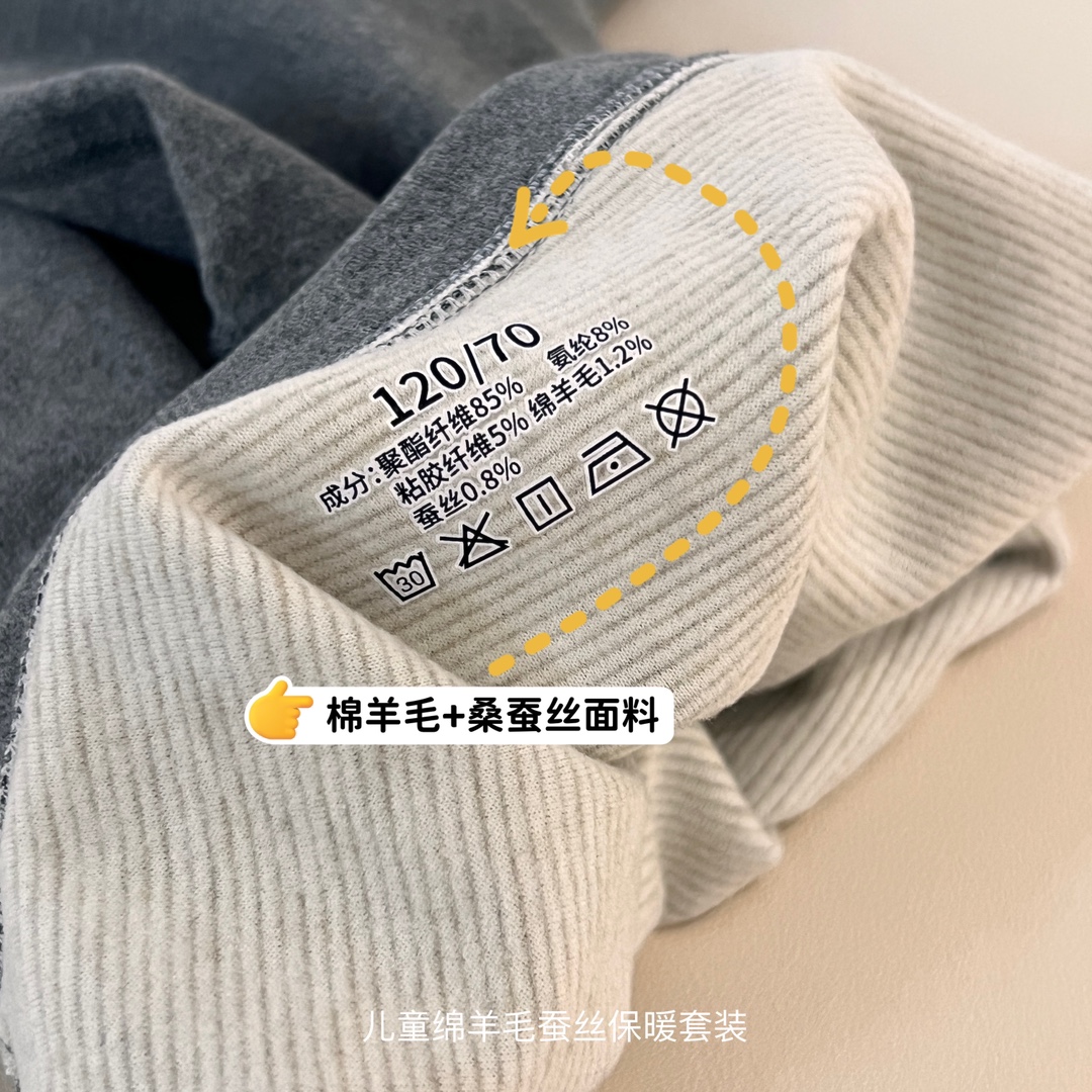 儿童绵羊毛蚕丝蛋白保暖套装 ! 突然入秋也不慌,穿到哪暖到哪采用高品质的蚕丝羊毛面料,温暖舒适^ω^ 让宝宝在秋天的变凉中也能感受到柔暖呵护[擁抱] 无论在家中还是户外活动都不会轻易着凉。真的好舒服!!!真正表里如一,认真做衣服的品牌🏆,特别贴合身材,穿起来特别舒服😌领口包边、走线工整又细致,无骨贴身,精致走线,立体裁剪,久穿久洗不会变形!出口级品质,放心入‼️ 真的好舒服!!!真正表里如一,认真做衣服的品牌🏆, 特别贴合身材,穿起来特别舒服😌领口包边、走线工整又细致,无骨贴身 精致走线,立体裁剪。久穿久洗不会变形!出口级品质,放心入‼️ ▪️高弹,柔软,细腻,透气!无束缚的最自由,0距离的贴肤感,比没穿还舒服的打底系列!