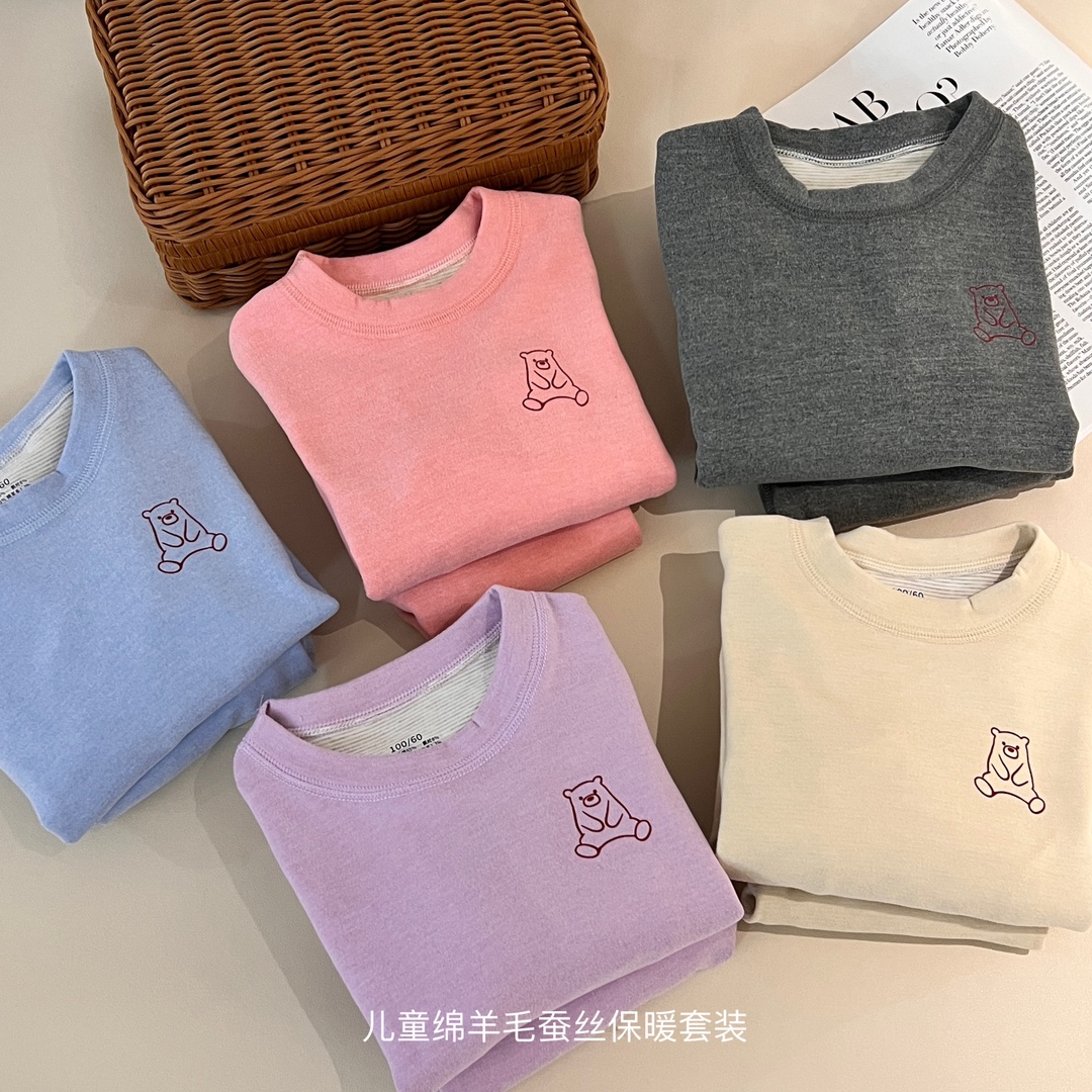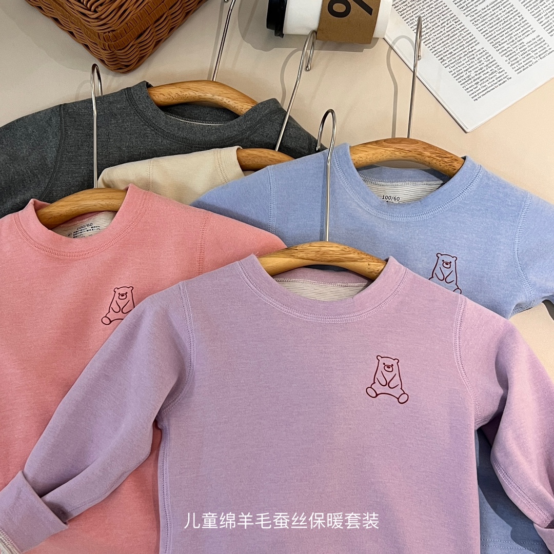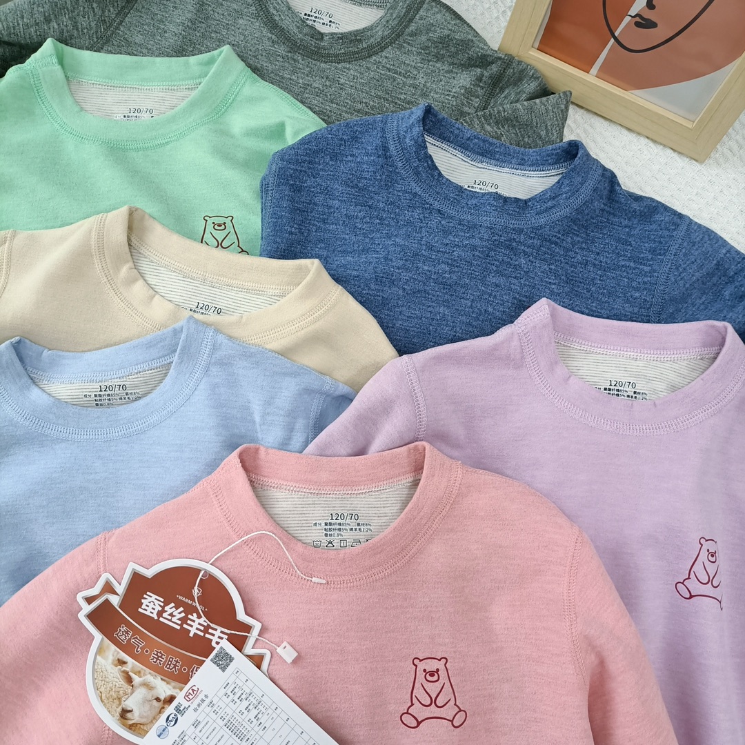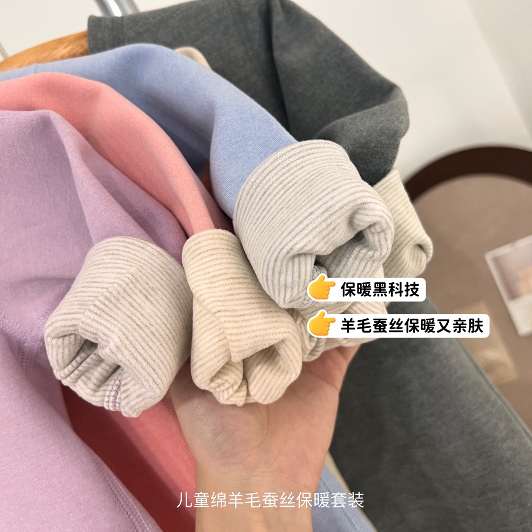 儿童绵羊毛蚕丝蛋白保暖套装 ! 突然入秋也不慌,穿到哪暖到哪采用高品质的蚕丝羊毛面料,温暖舒适^ω^ 让宝宝在秋天的变凉中也能感受到柔暖呵护[擁抱] 无论在家中还是户外活动都不会轻易着凉。真的好舒服!!!真正表里如一,认真做衣服的品牌🏆,特别贴合身材,穿起来特别舒服😌领口包边、走线工整又细致,无骨贴身,精致走线,立体裁剪,久穿久洗不会变形!出口级品质,放心入‼️ 真的好舒服!!!真正表里如一,认真做衣服的品牌🏆, 特别贴合身材,穿起来特别舒服😌领口包边、走线工整又细致,无骨贴身 精致走线,立体裁剪。久穿久洗不会变形!出口级品质,放心入‼️ ▪️高弹,柔软,细腻,透气!无束缚的最自由,0距离的贴肤感,比没穿还舒服的打底系列!