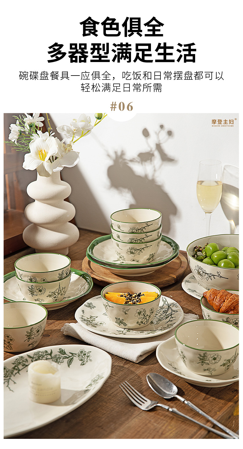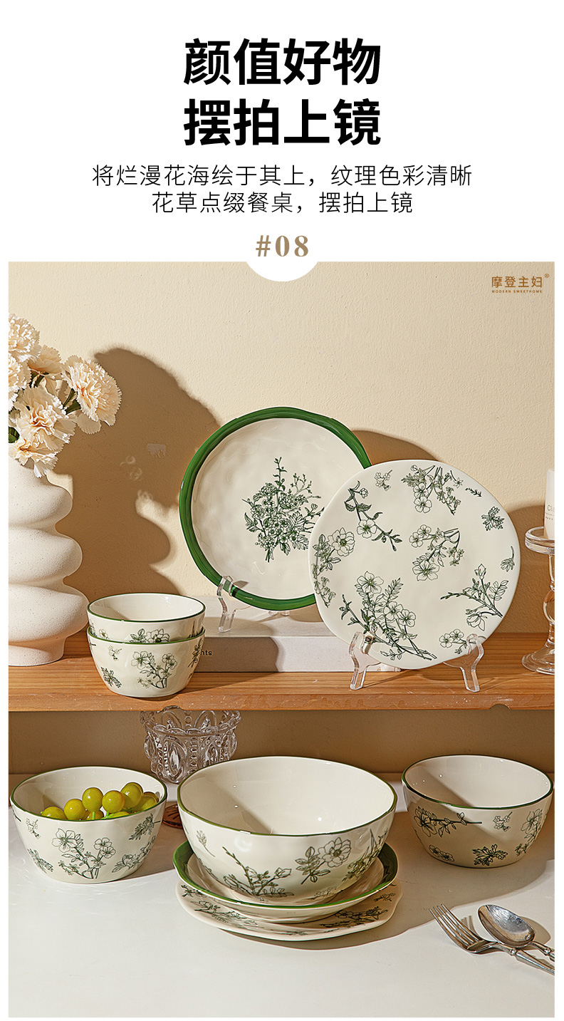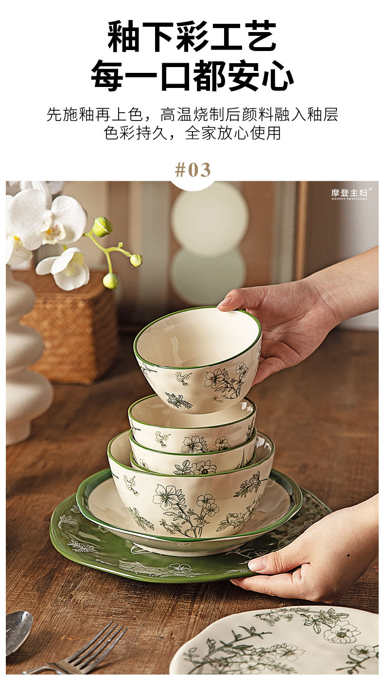 摩登主妇釉下彩餐具碗碟家用2025新款碗具漂亮的盘子陶瓷饭碗汤碗