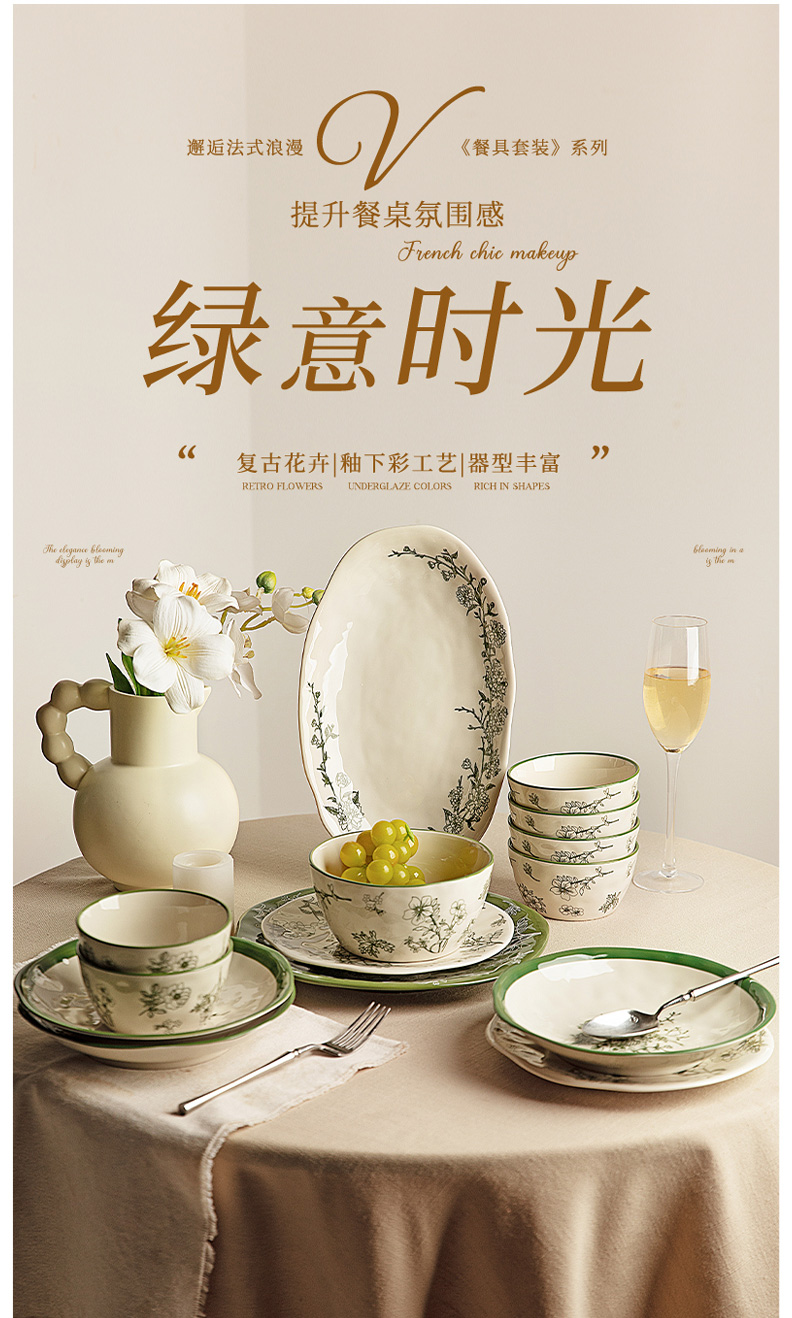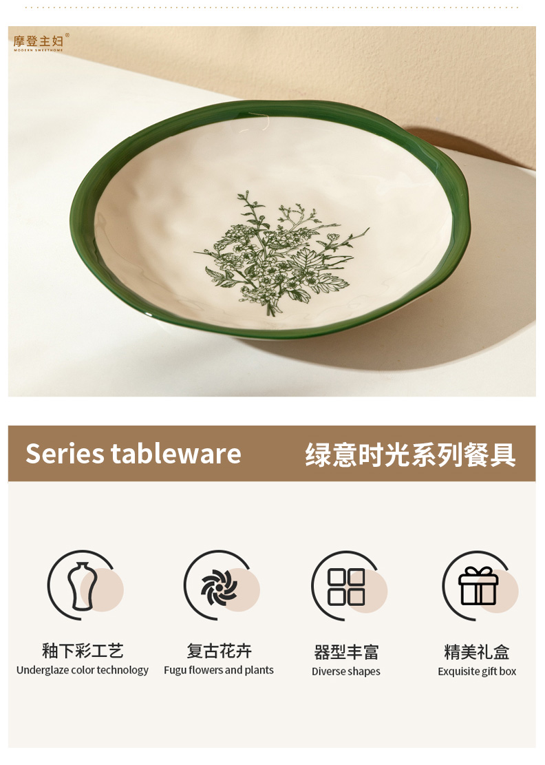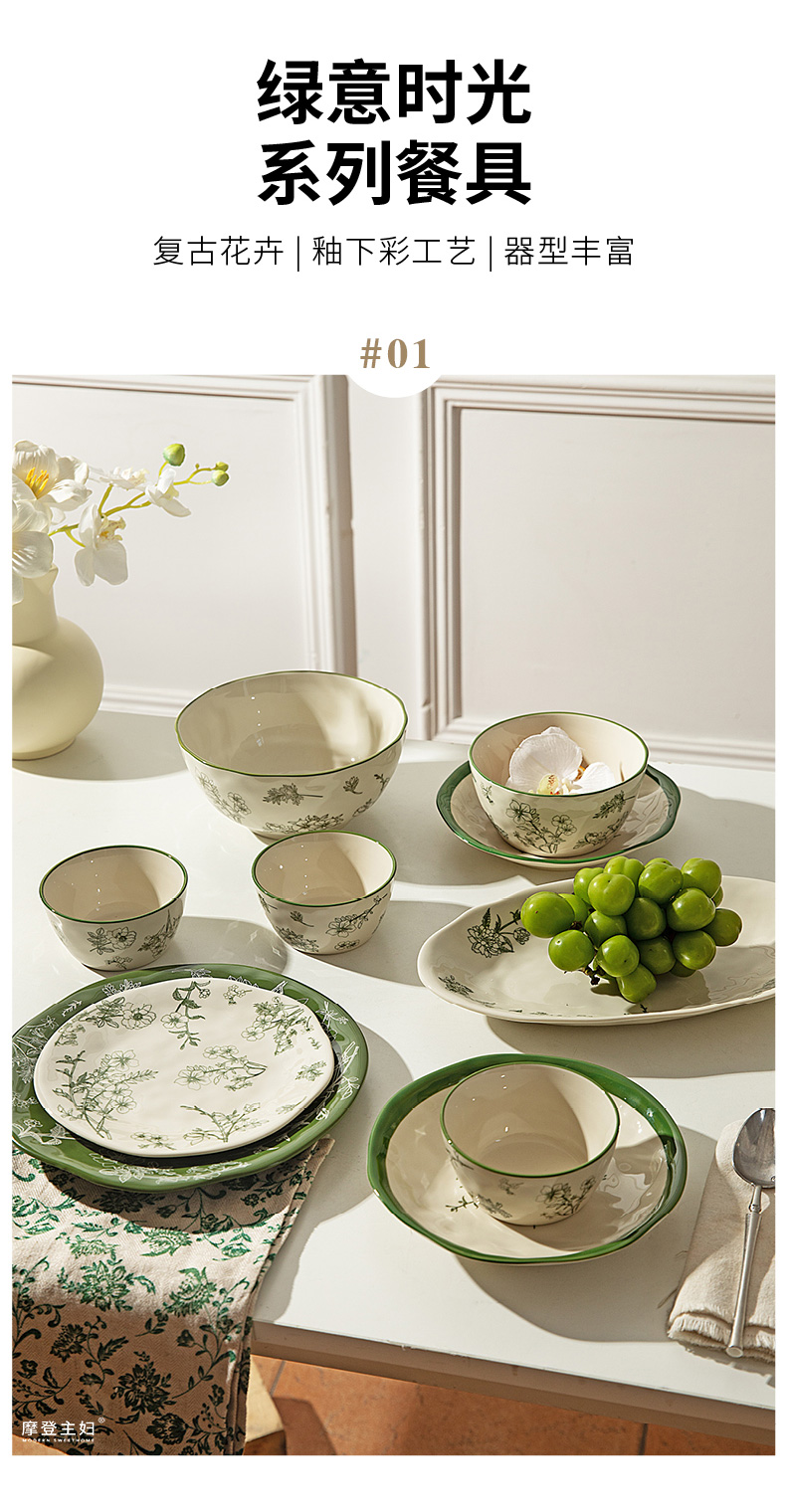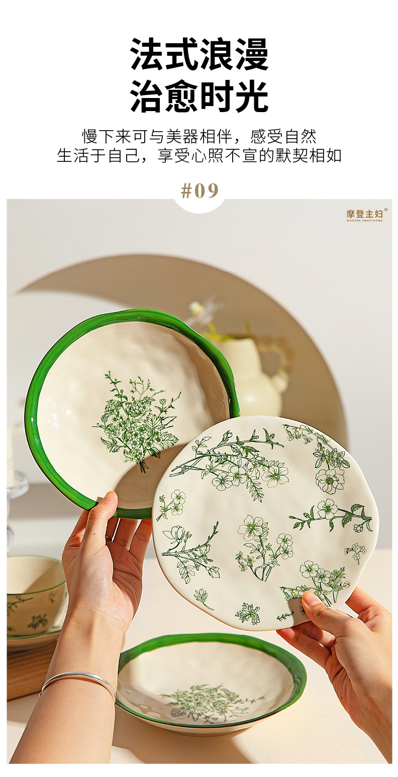 摩登主妇釉下彩餐具碗碟家用2025新款碗具漂亮的盘子陶瓷饭碗汤碗