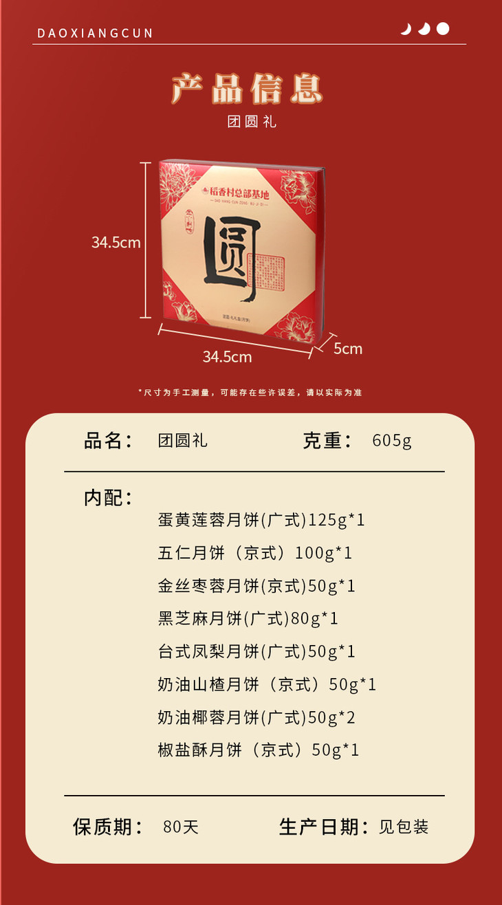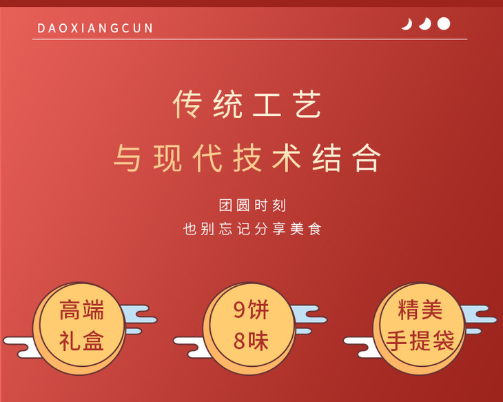 【稻香村】团圆礼 605g/9饼8味【含精美手提袋】中秋天地盖月饼糕点新款五仁经典味道(ZJSM)