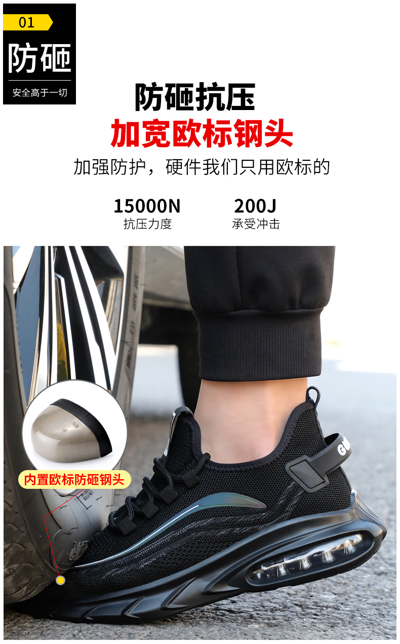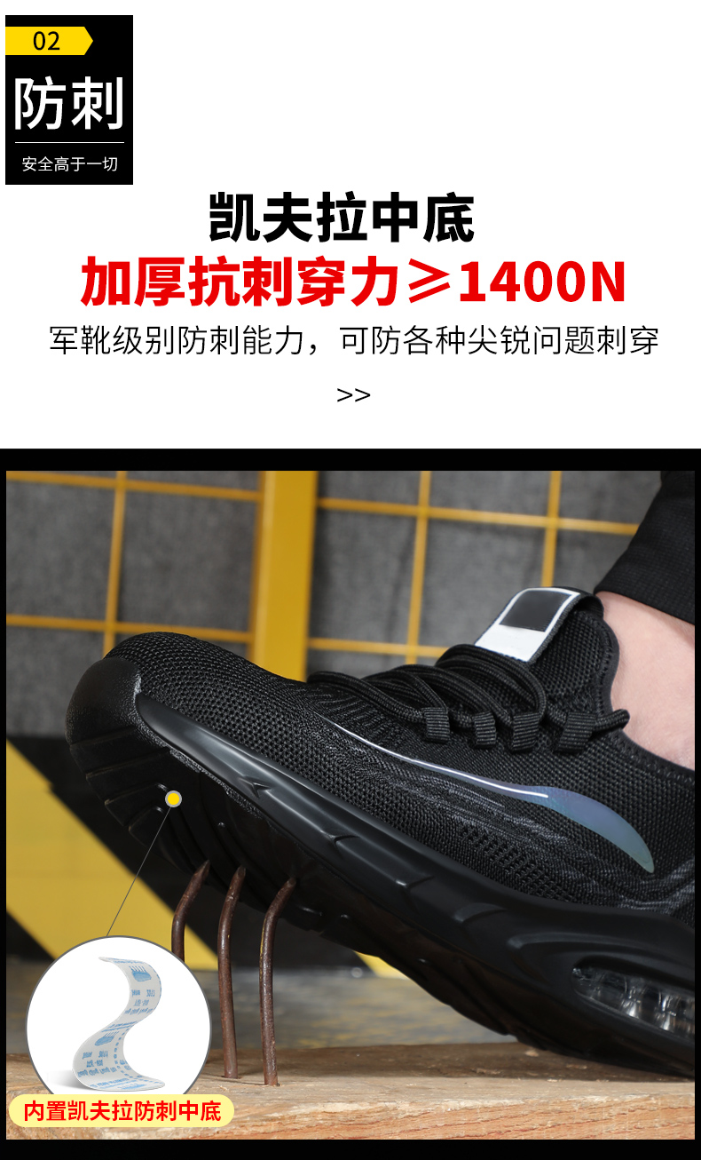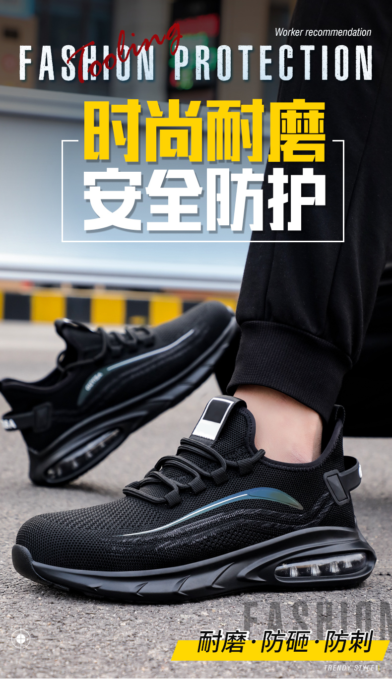 网布透气劳保鞋钢包头防砸防刺耐磨抗造实心大底舒适防臭安全工作鞋运动款