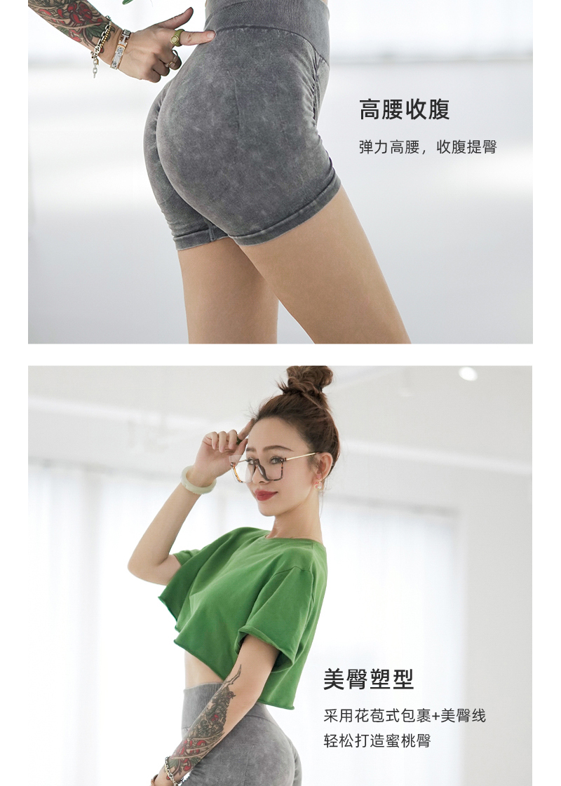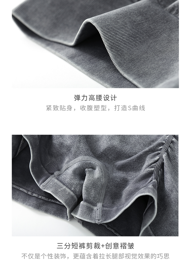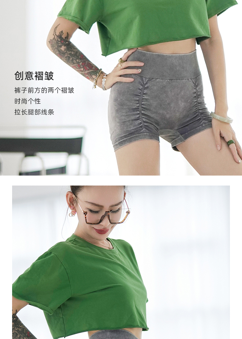 夏季运动健身瑜伽裤紧身前褶皱跑步三分裤提臀开翘美臀裤