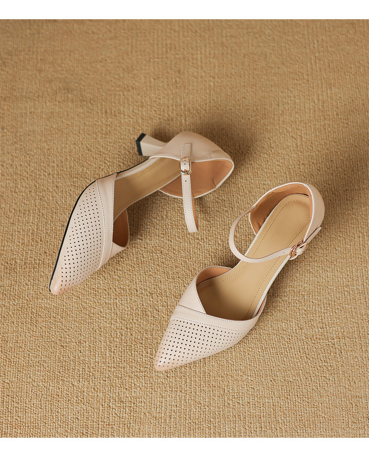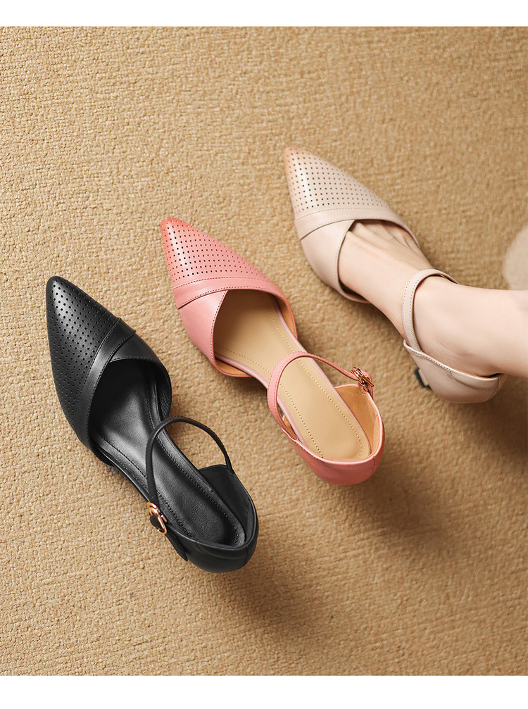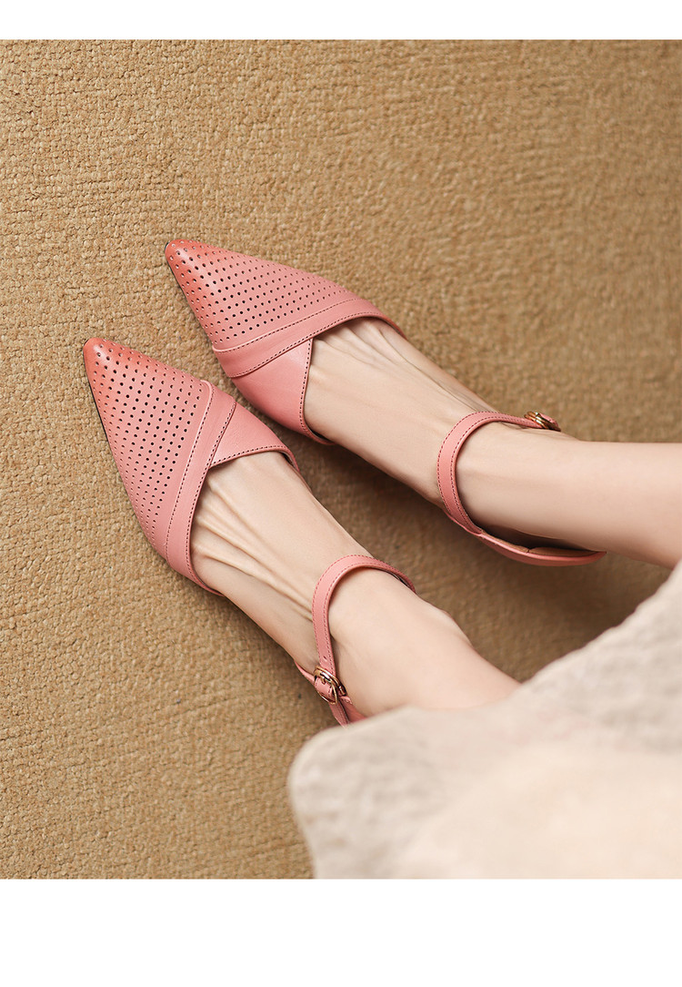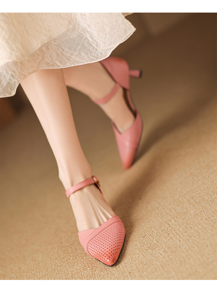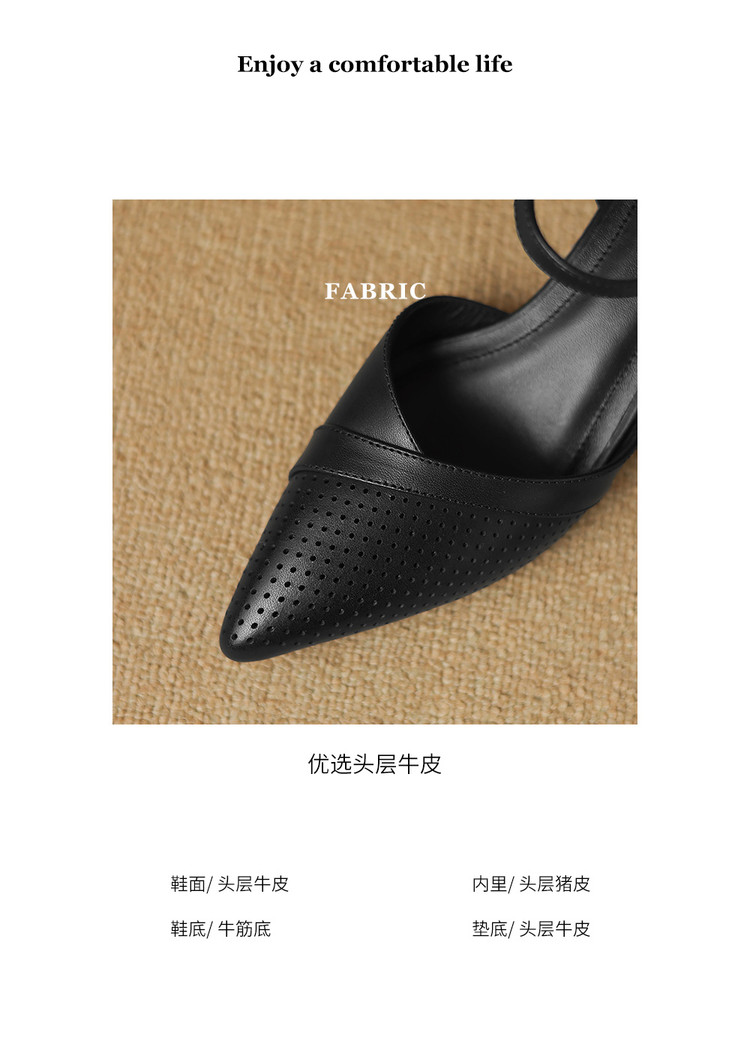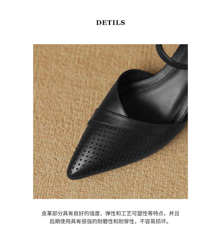 【预售7天】罗马风尖头包头凉鞋法式优雅镂空透气包头细跟时装凉鞋女气质通勤尖头一字带中空单鞋ASN&3021