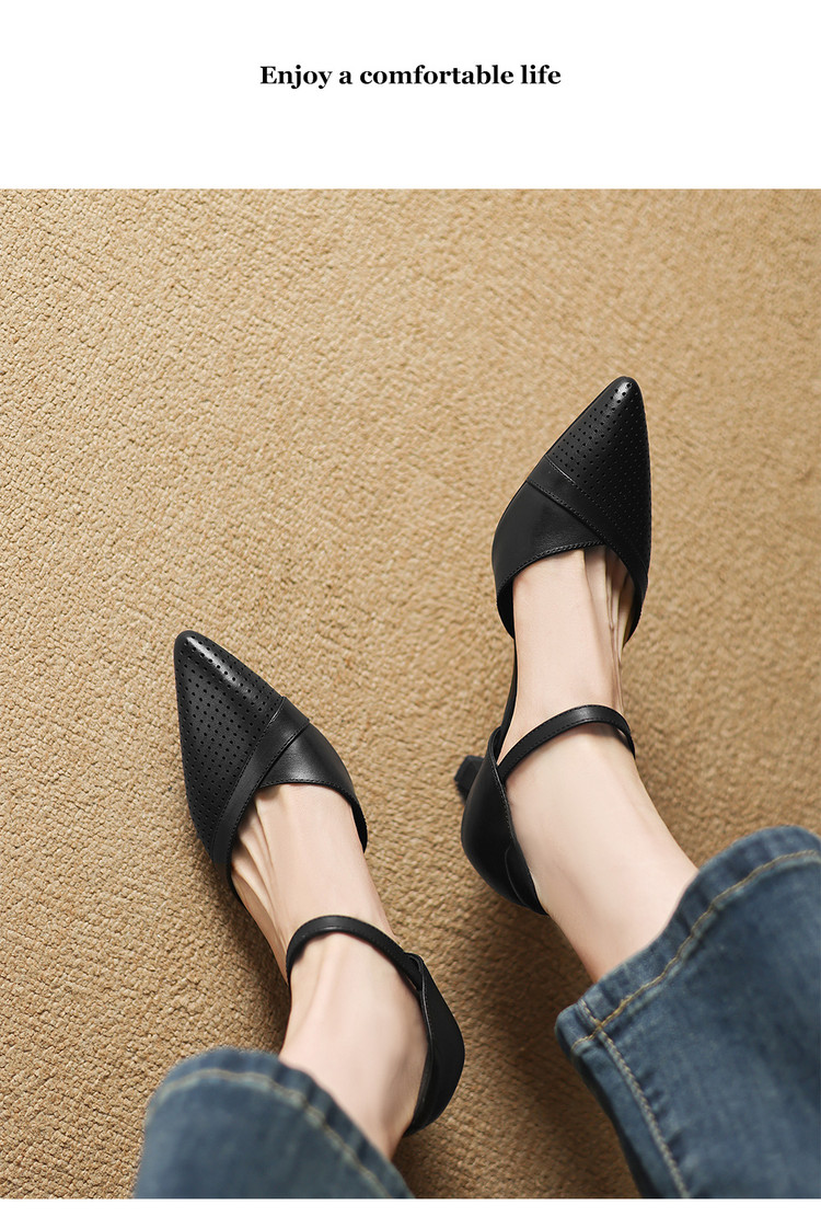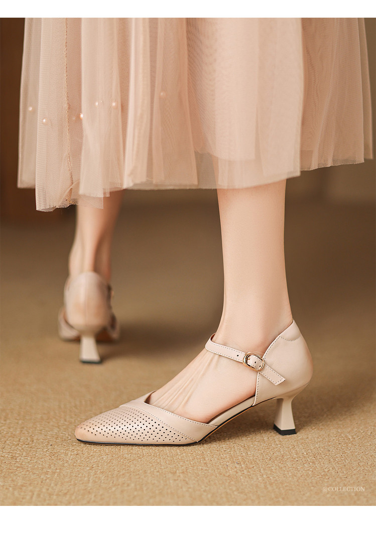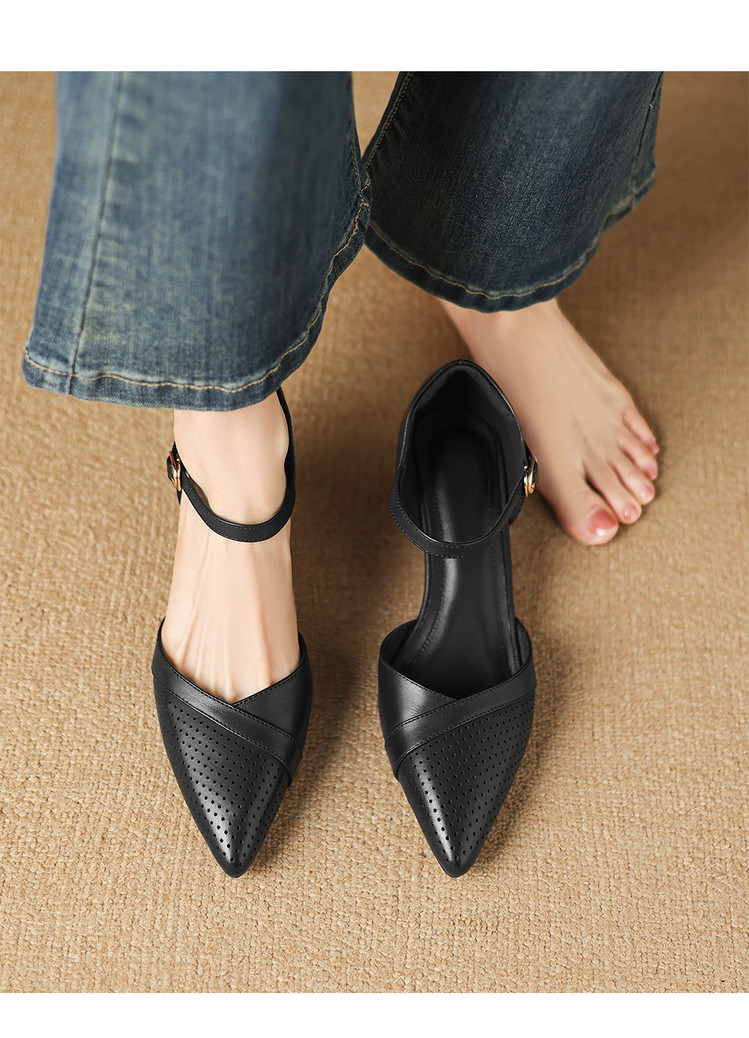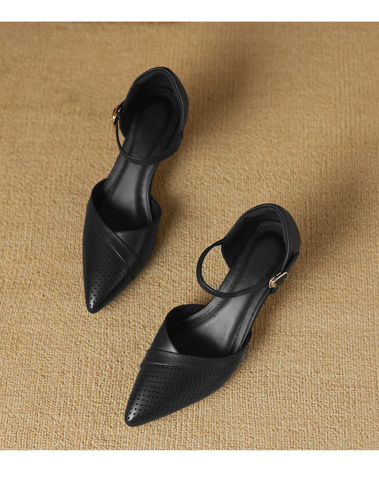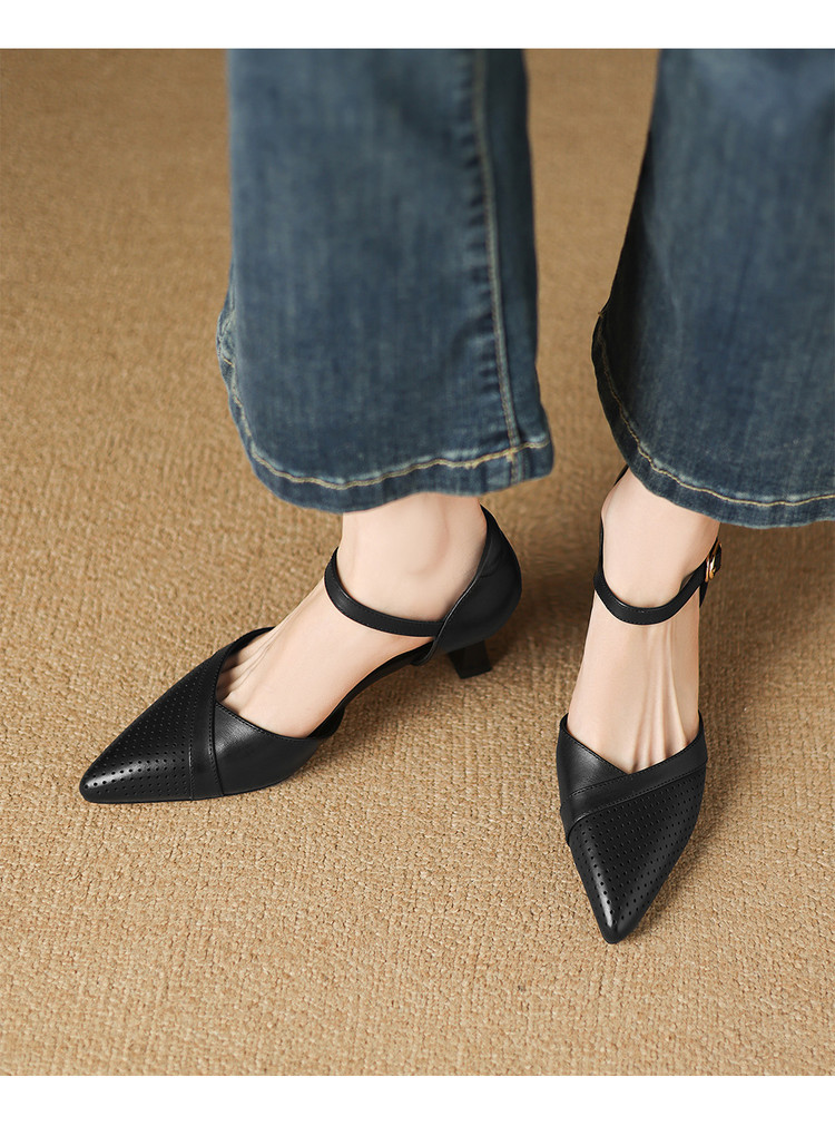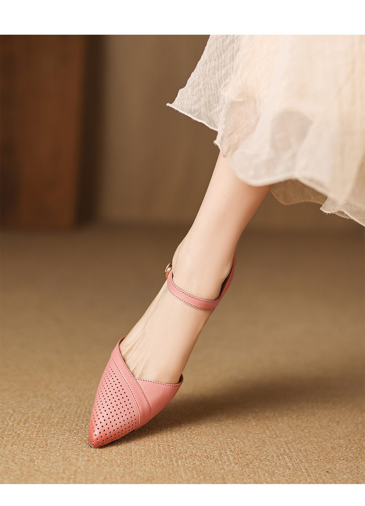 【预售7天】罗马风尖头包头凉鞋法式优雅镂空透气包头细跟时装凉鞋女气质通勤尖头一字带中空单鞋ASN&3021