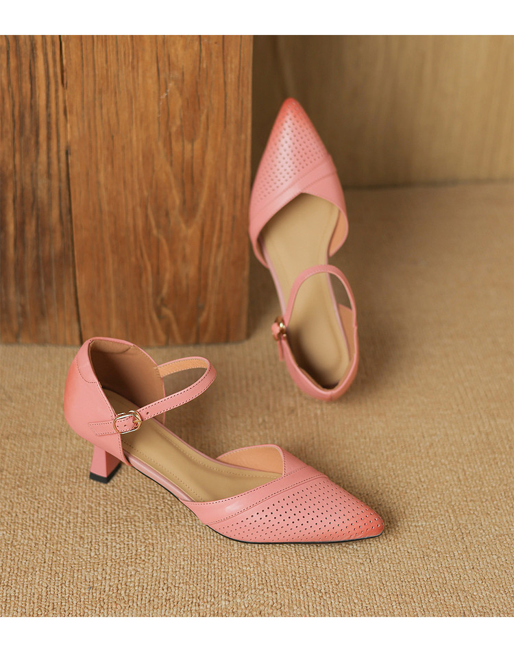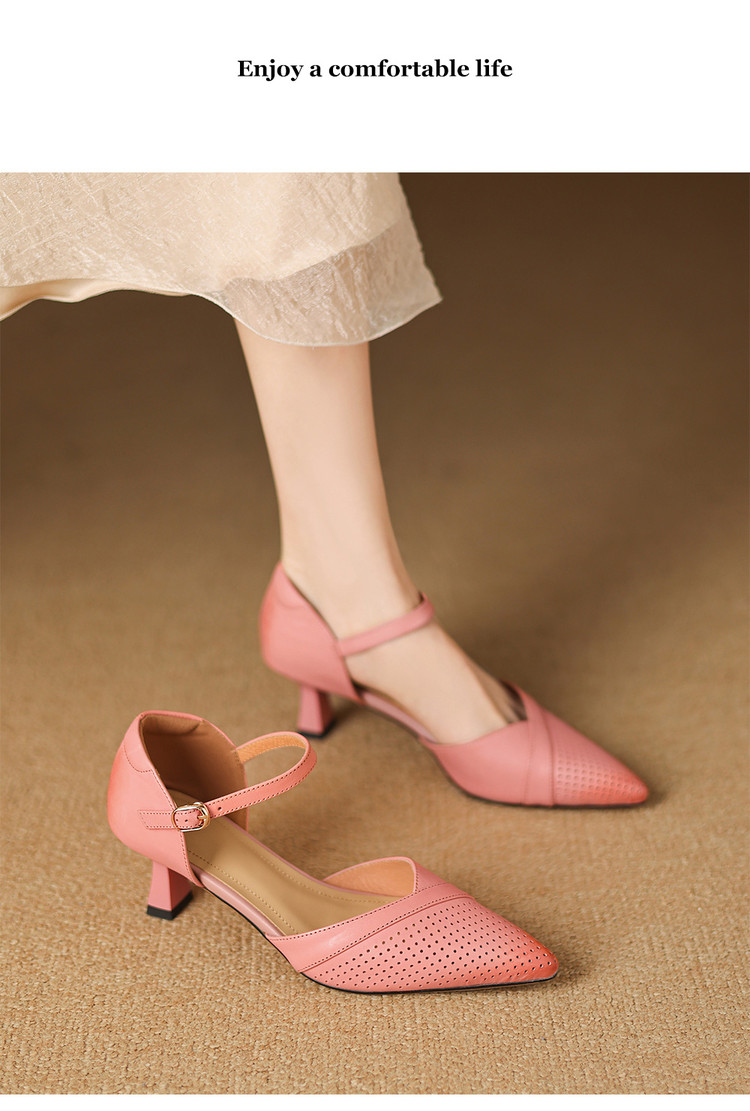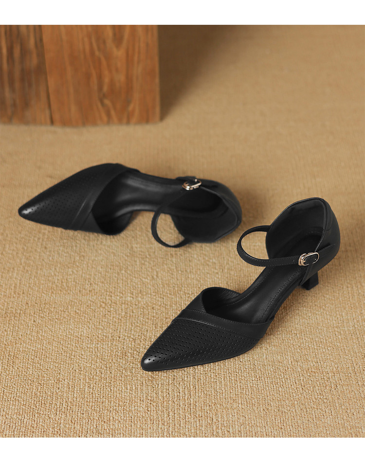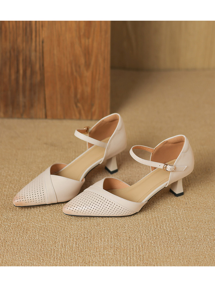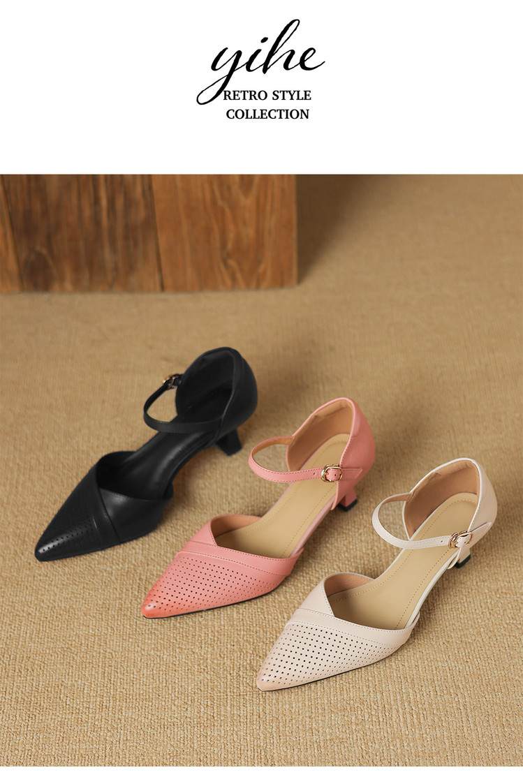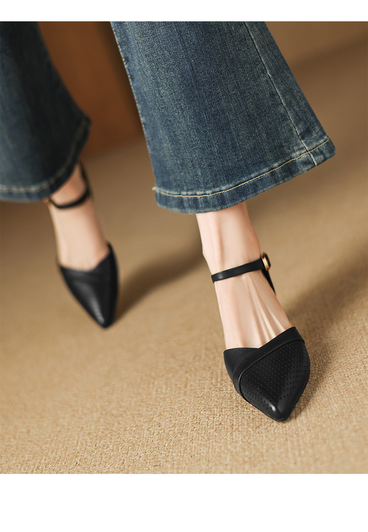 【预售7天】罗马风尖头包头凉鞋法式优雅镂空透气包头细跟时装凉鞋女气质通勤尖头一字带中空单鞋ASN&3021