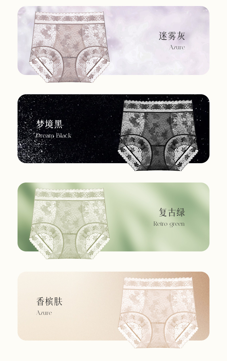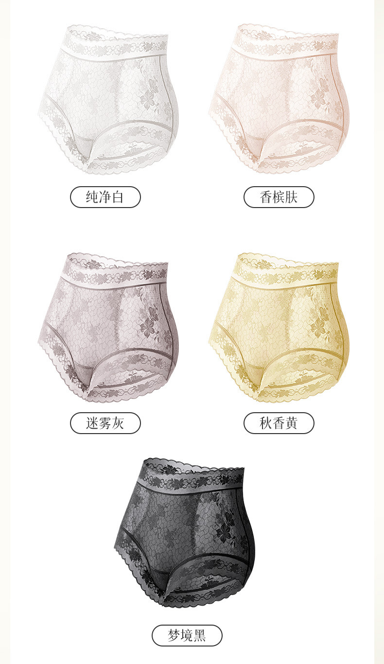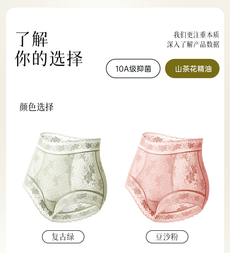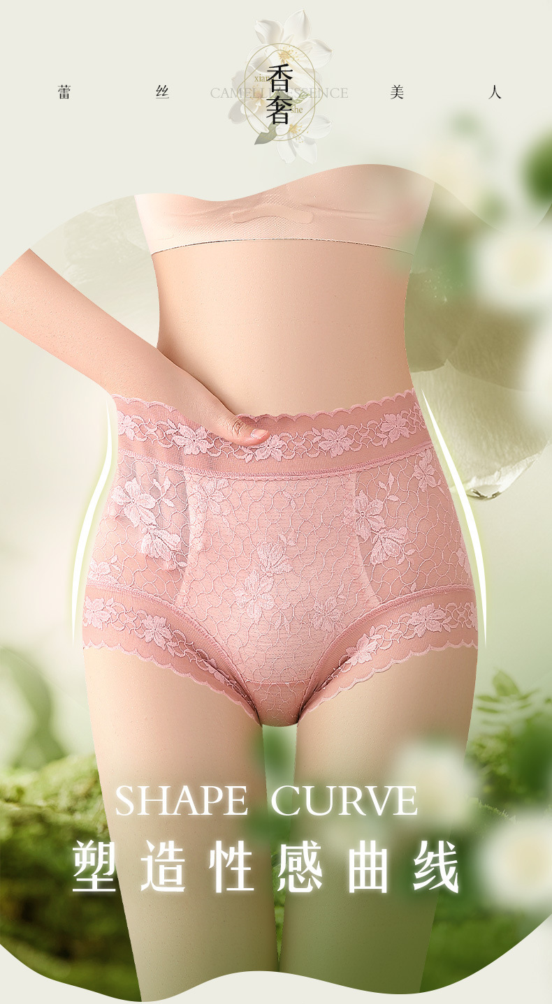 雀说 【4条】内裤女蕾丝中高腰收腹山茶花香氛10A抗菌桑蚕丝加长裆轻薄三角裤MZ8010-9