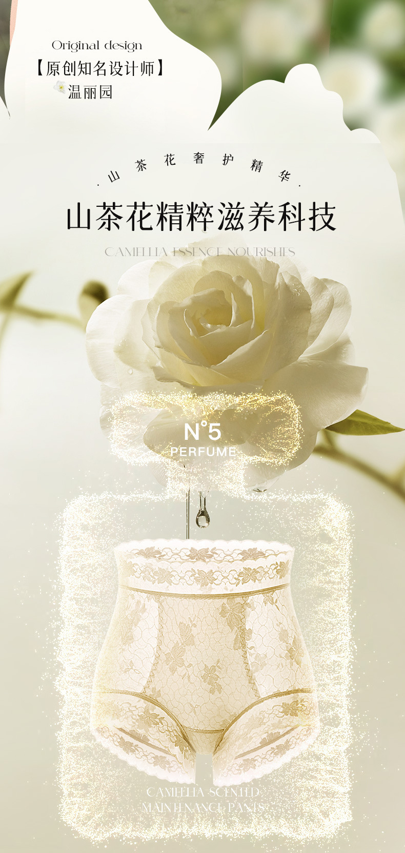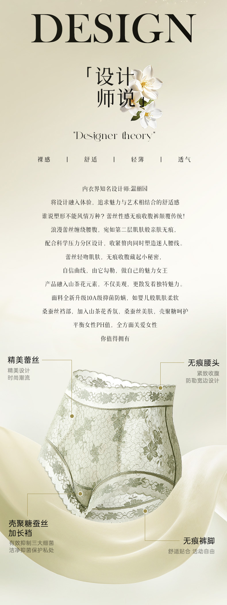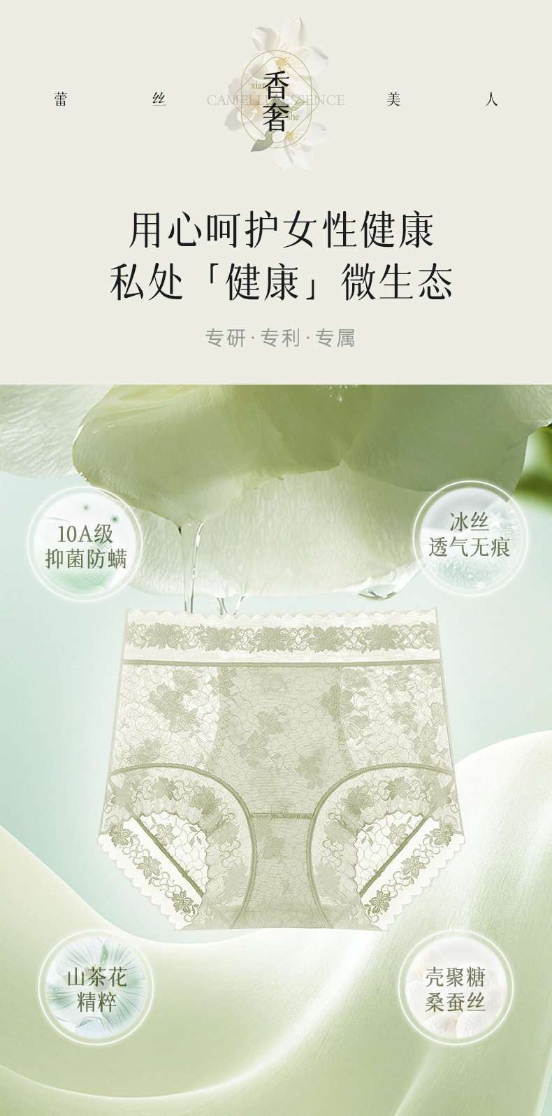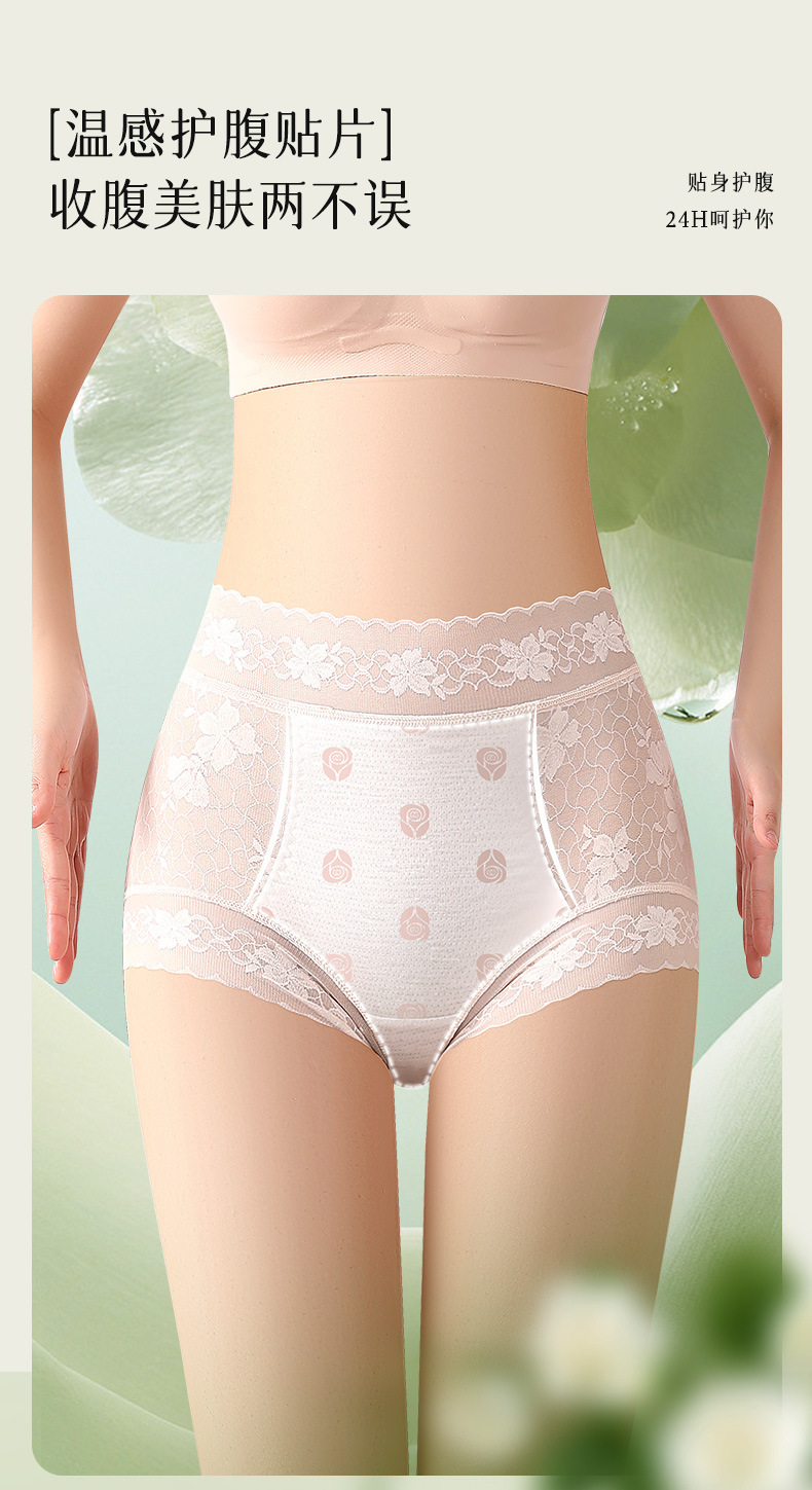 雀说 【4条】内裤女蕾丝中高腰收腹山茶花香氛10A抗菌桑蚕丝加长裆轻薄三角裤MZ8010-9