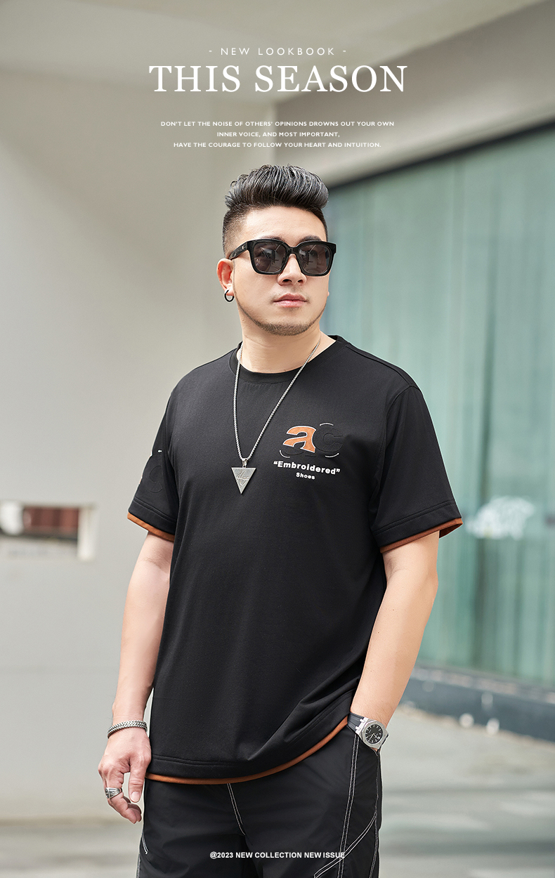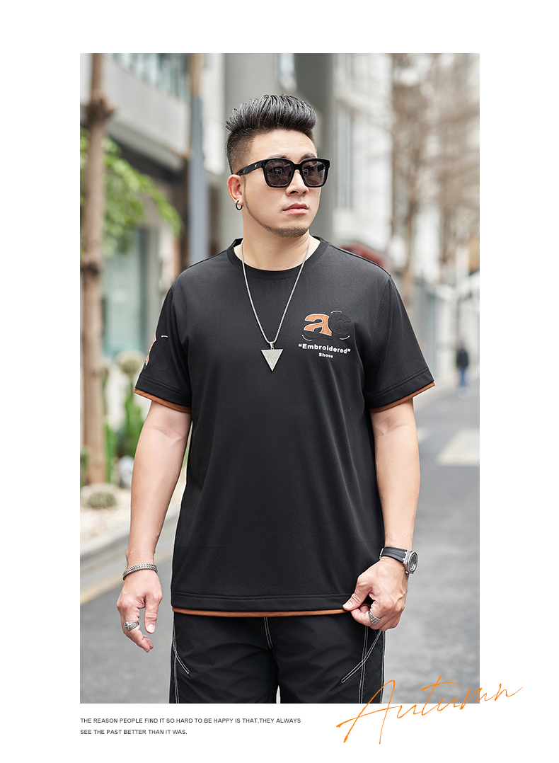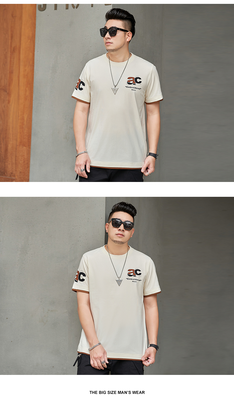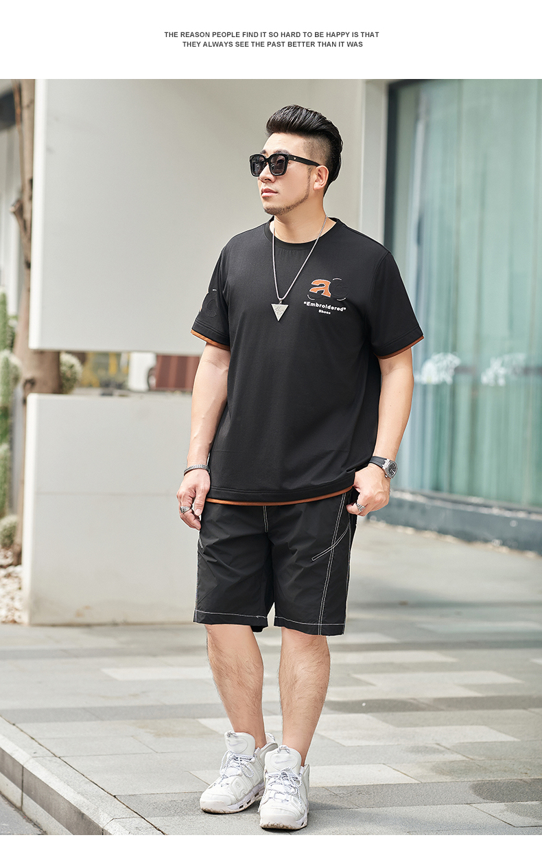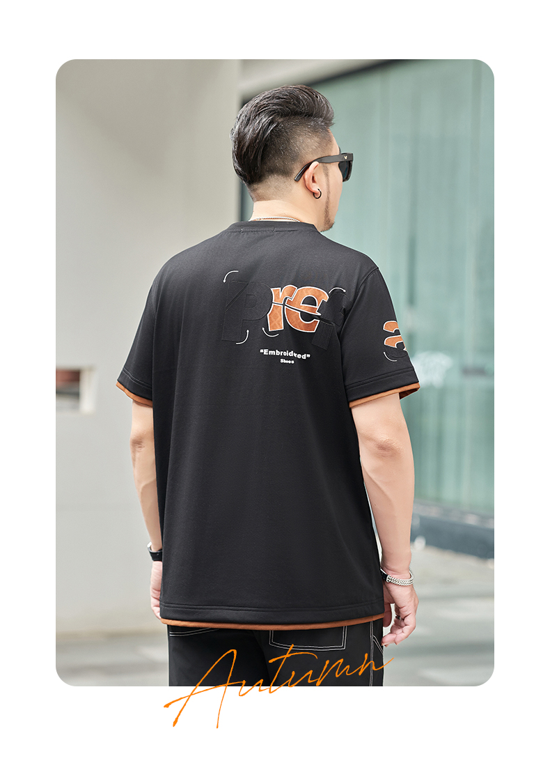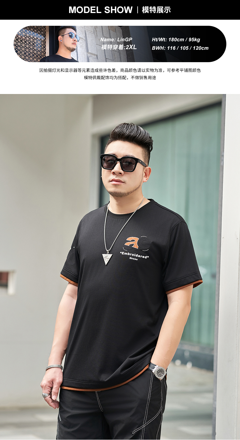 【新款DMH】大依优型大码男装前后印花圆领短袖T恤加肥加大休闲肥佬男上衣夏季半袖胖子潮款