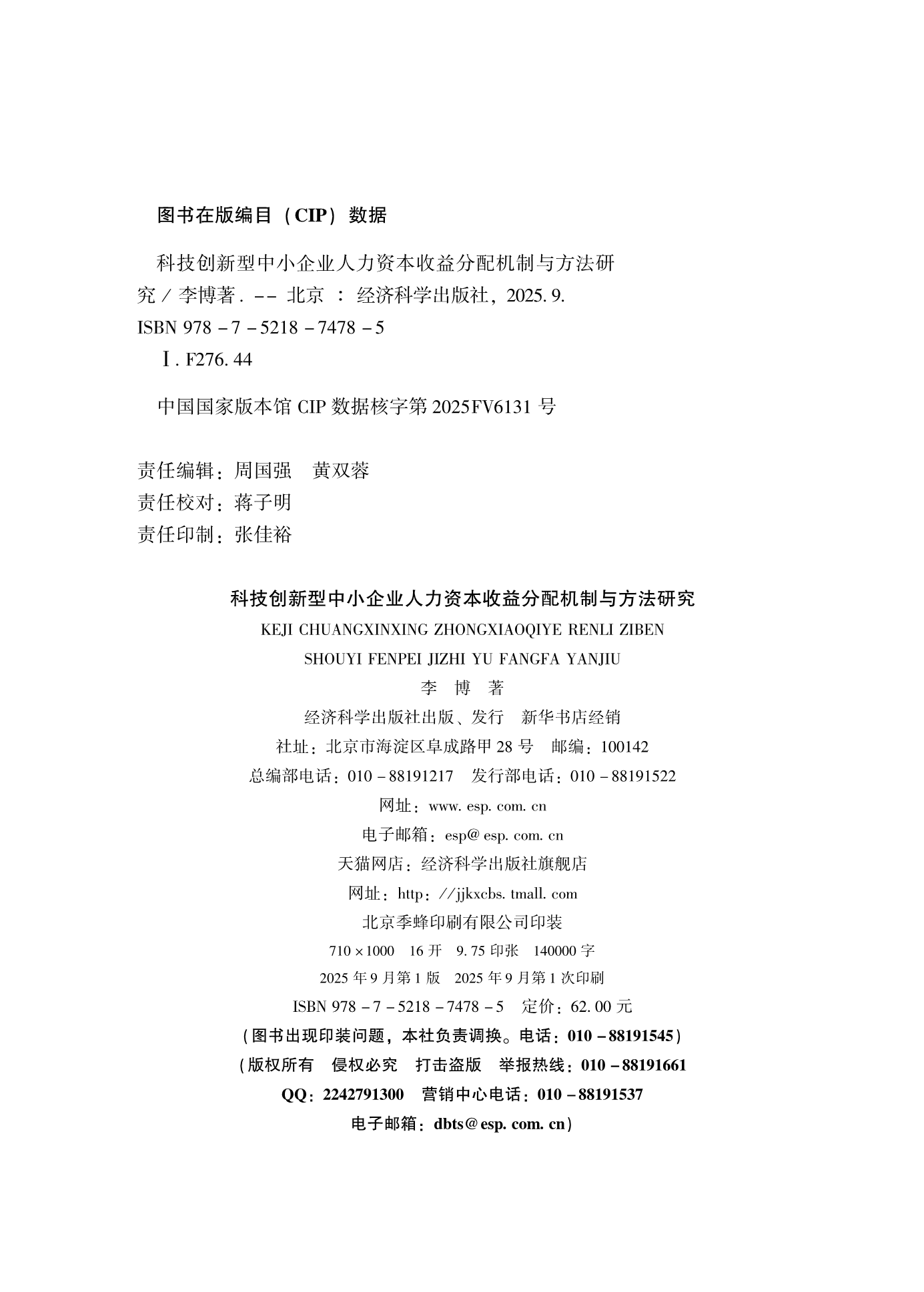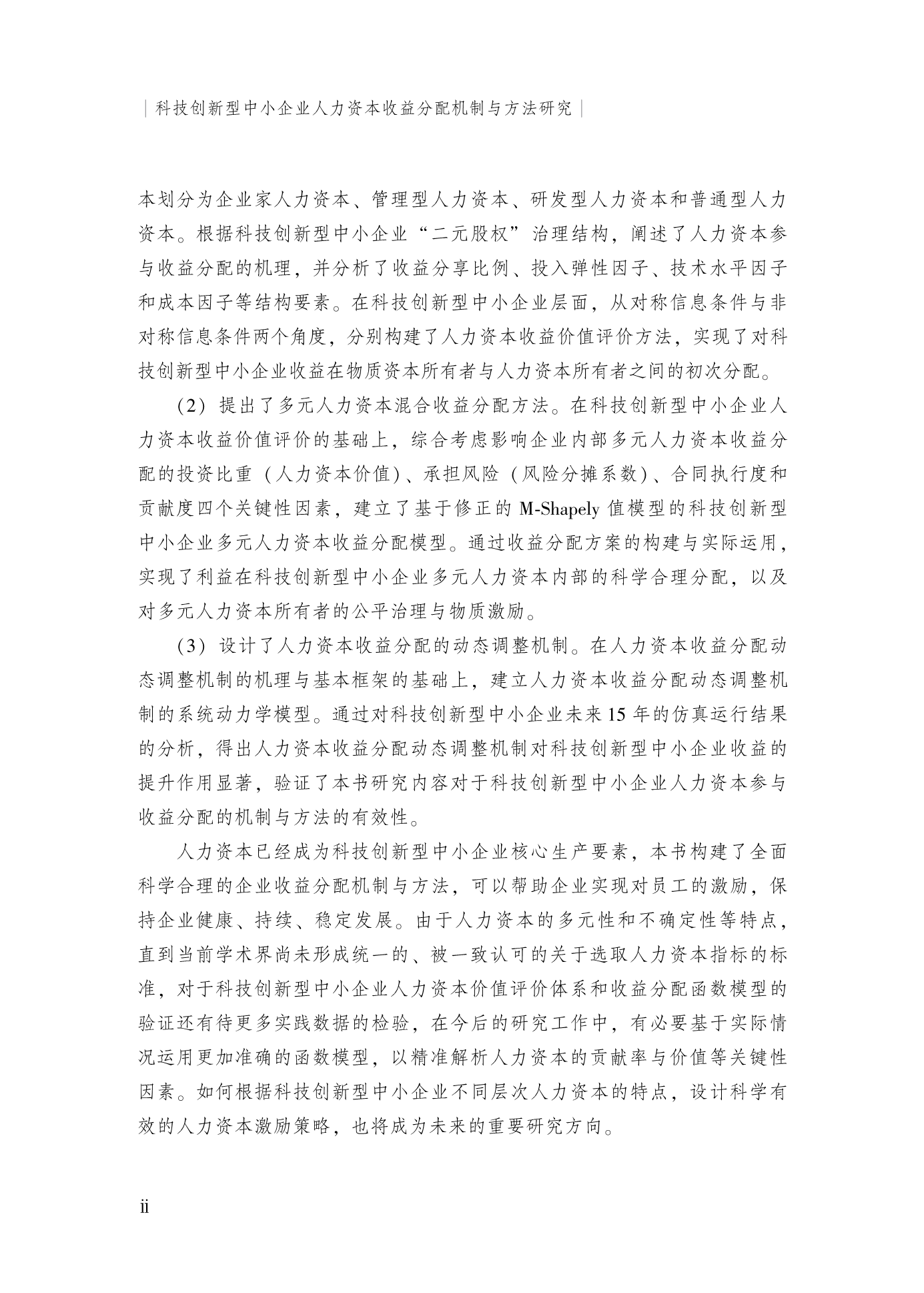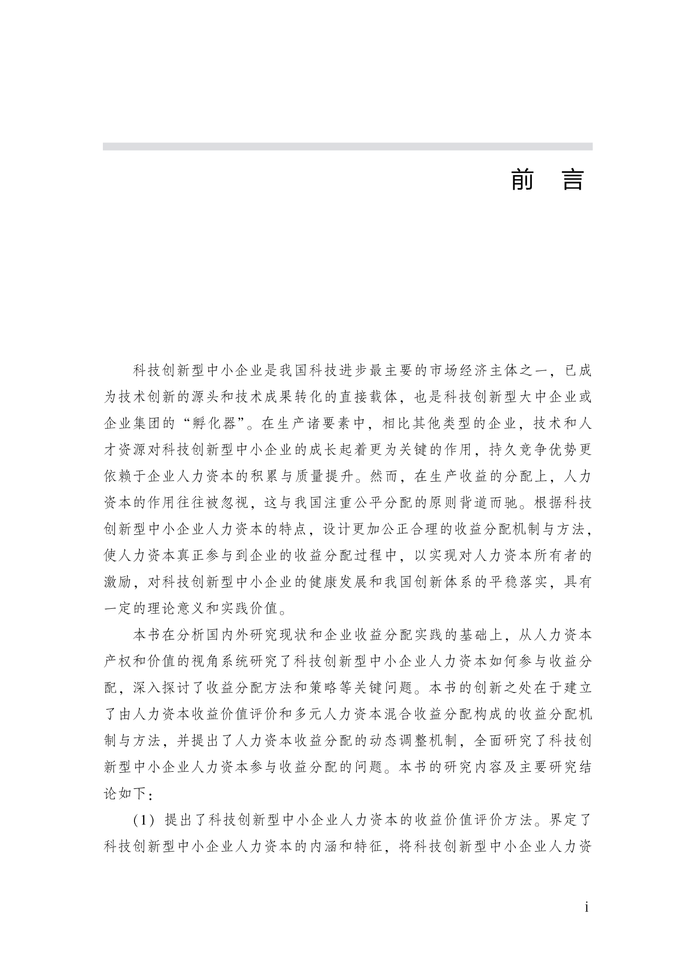 科技创新型中小企业人力资本收益分配机制与方法研究