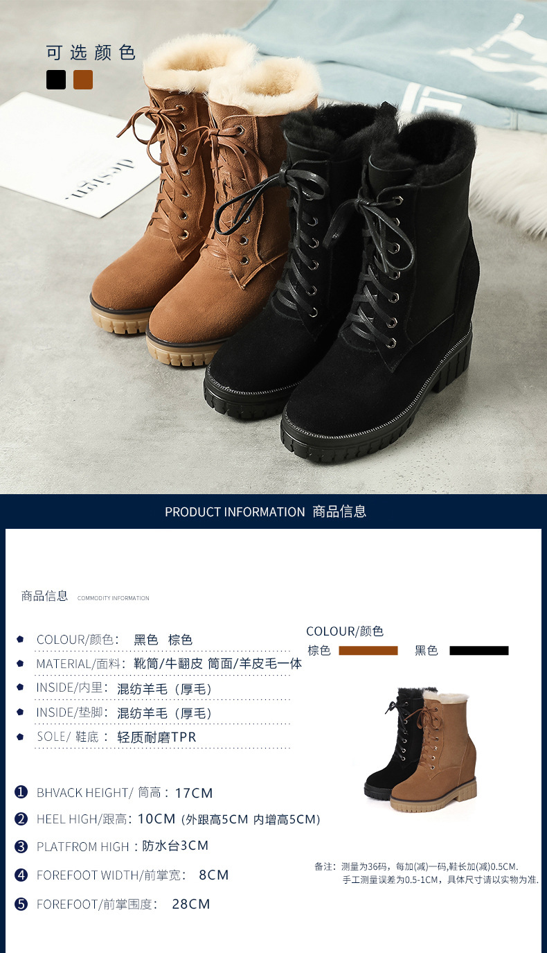 OLD-6663新款时尚气质真皮圆头加厚保暖坡跟雪地靴