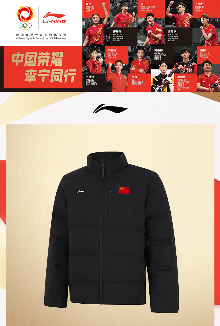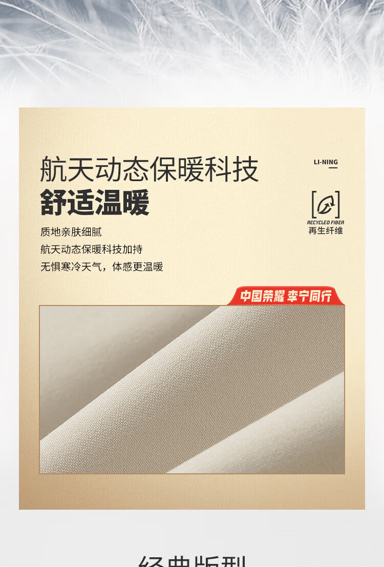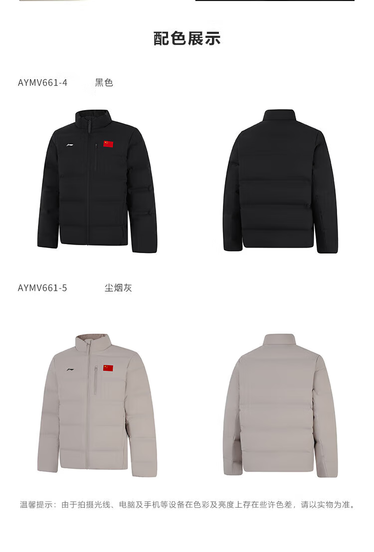 李宁短羽绒服男2025冬季新款荣耀系列鸭绒保暖立领外套AYMV661