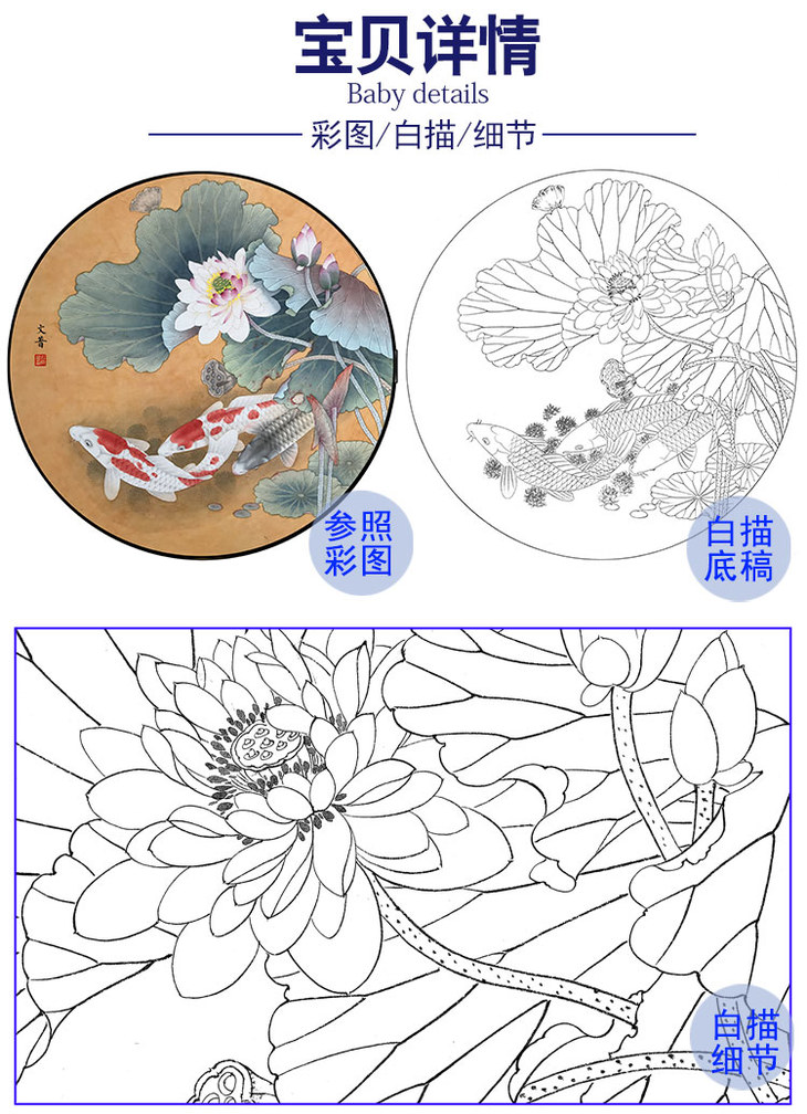 於文普工笔花鸟荷花鲤鱼小品白描底稿-WP09