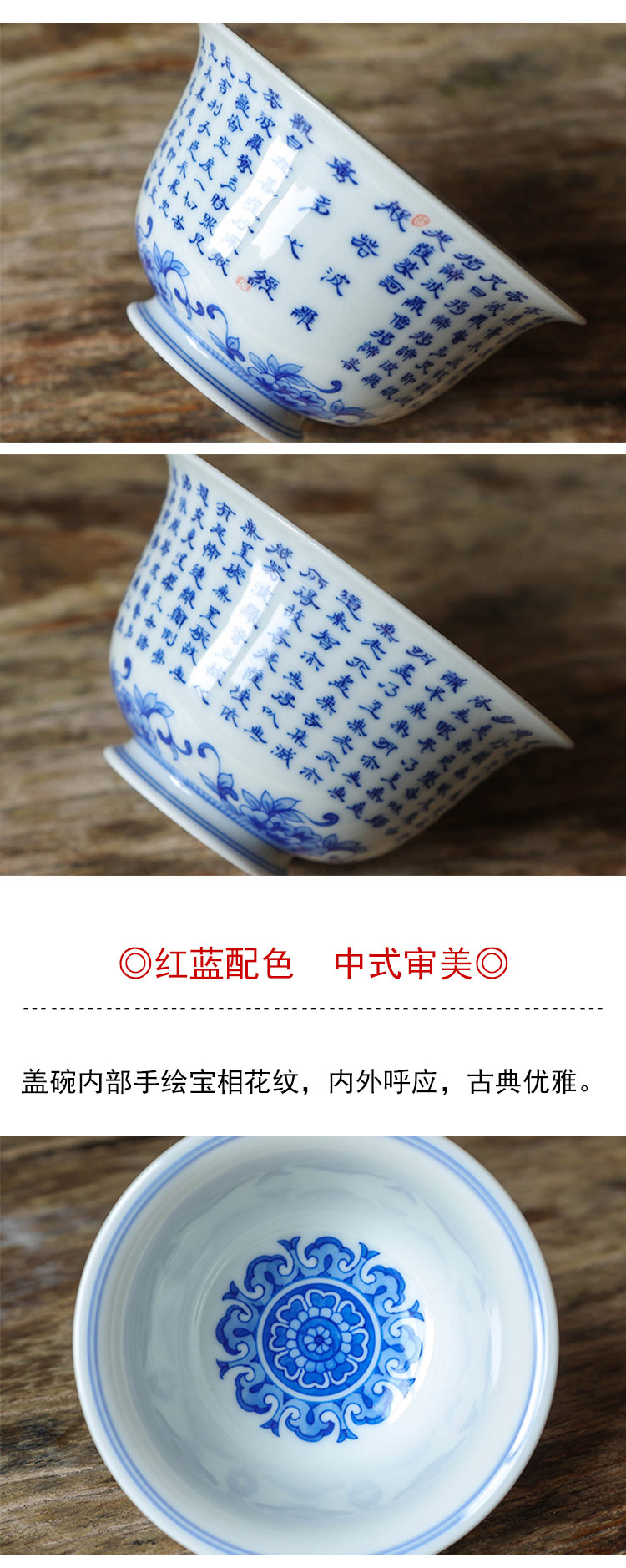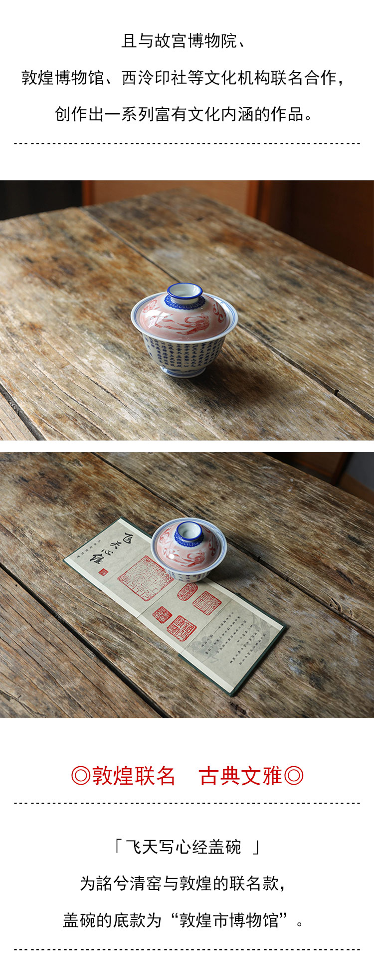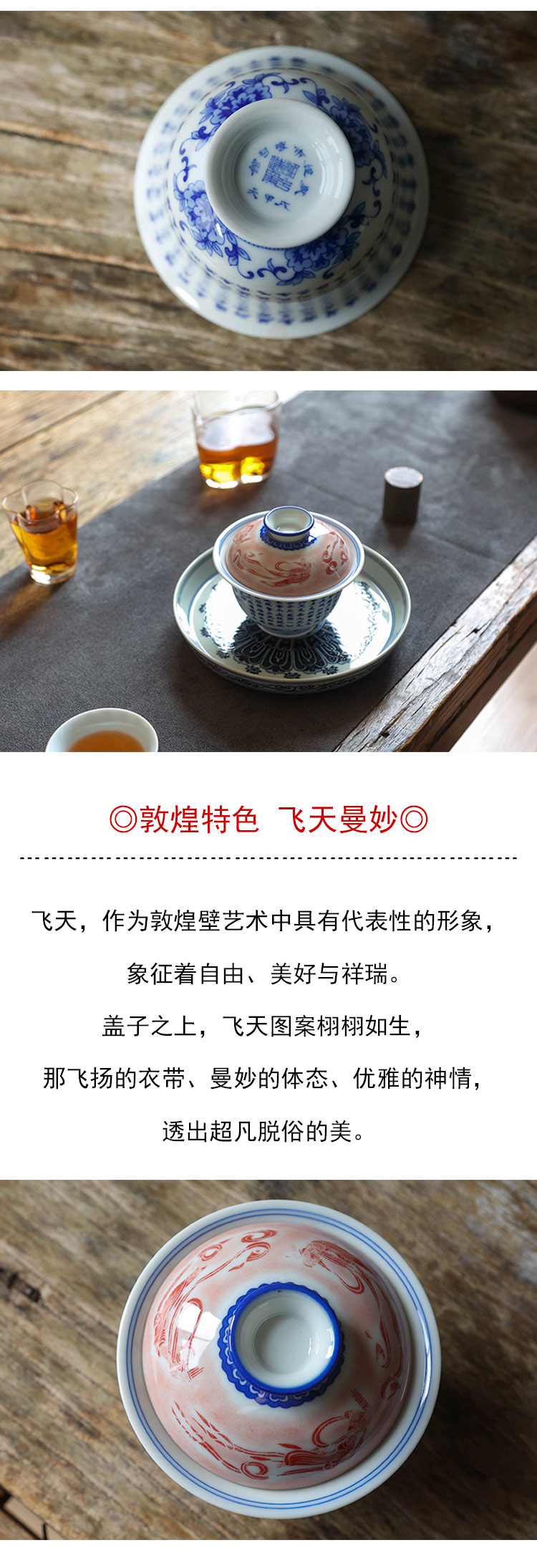 茶香记 詺兮清窑飞天写心经盖碗150ml青花手绘敦煌博物馆联名泡茶碗