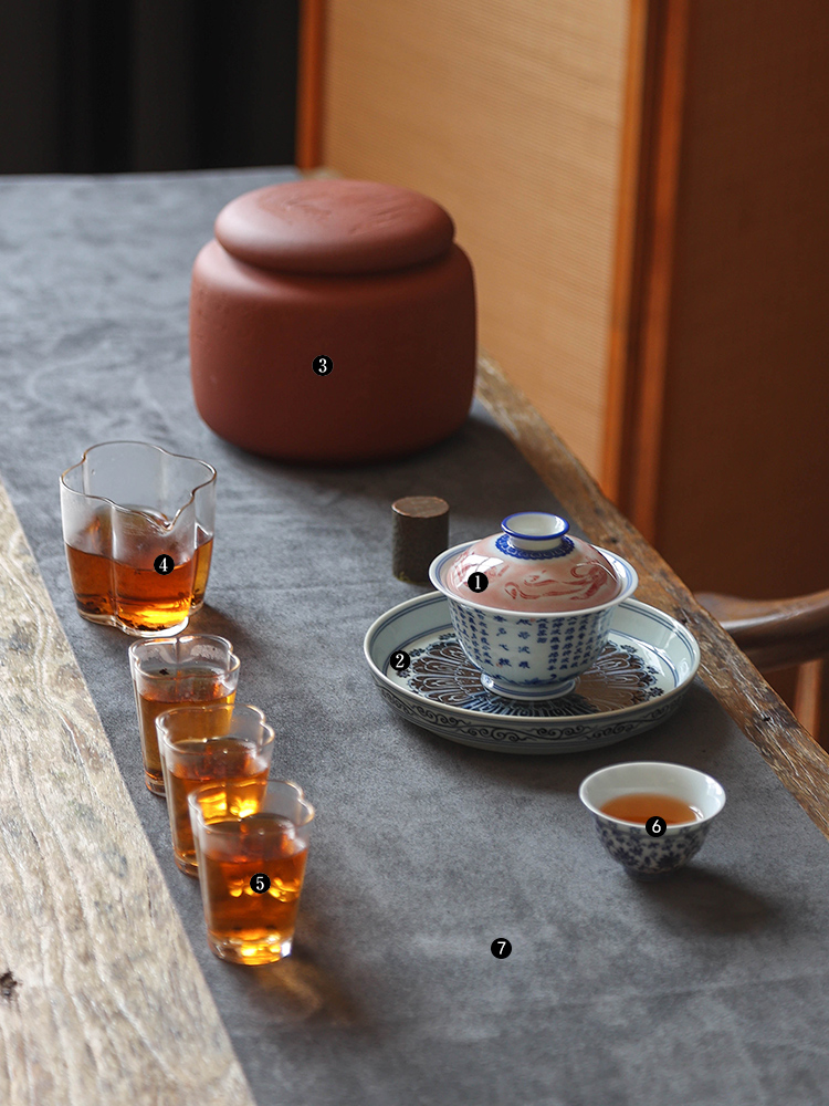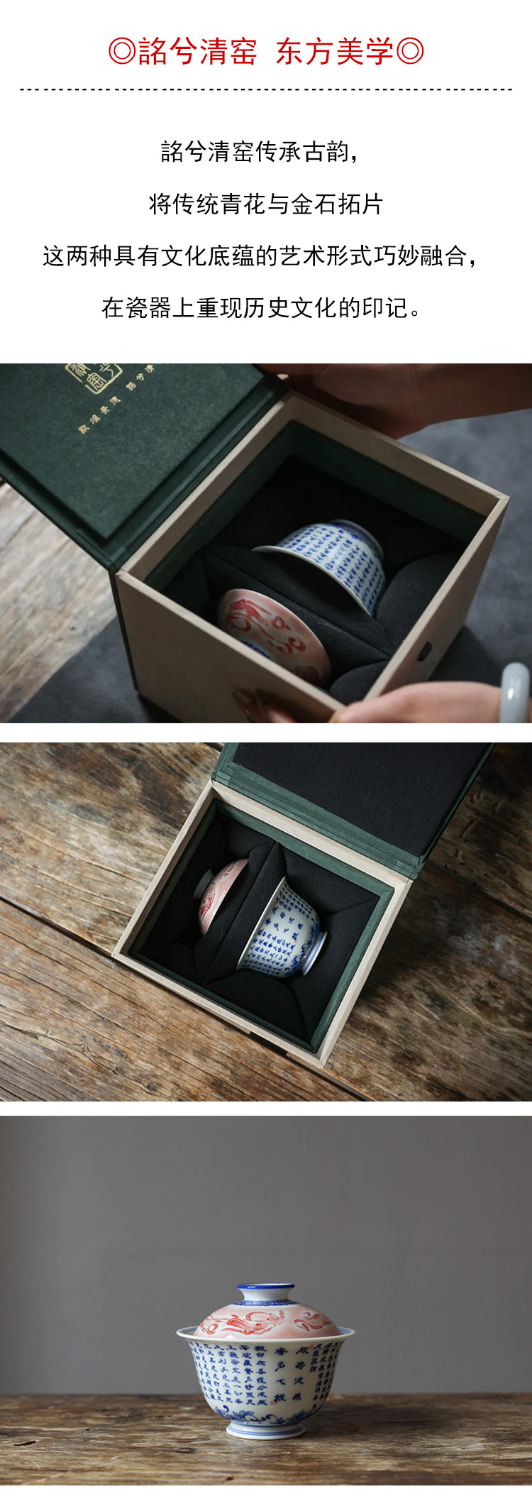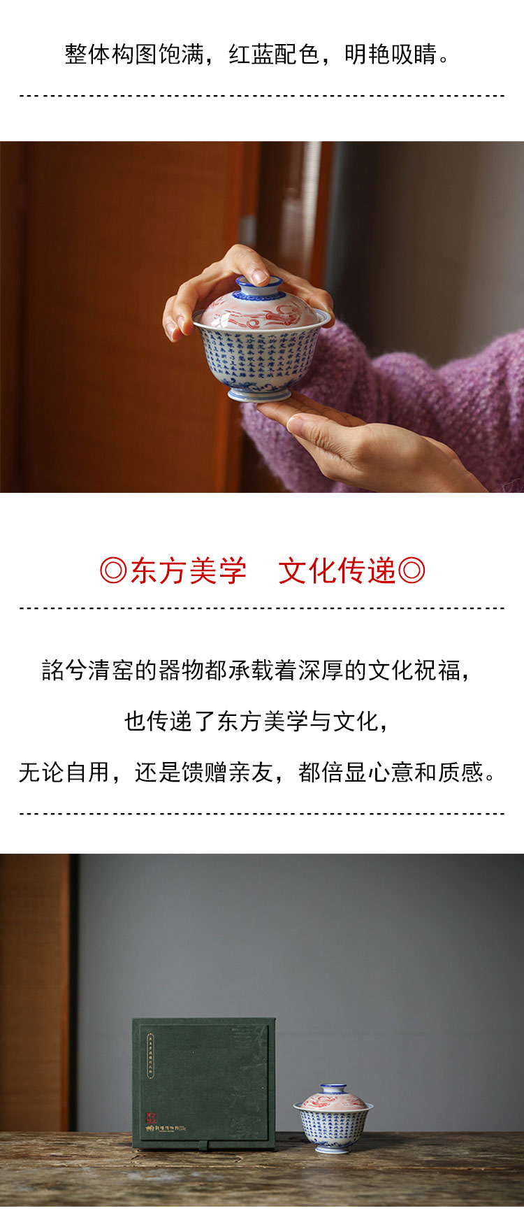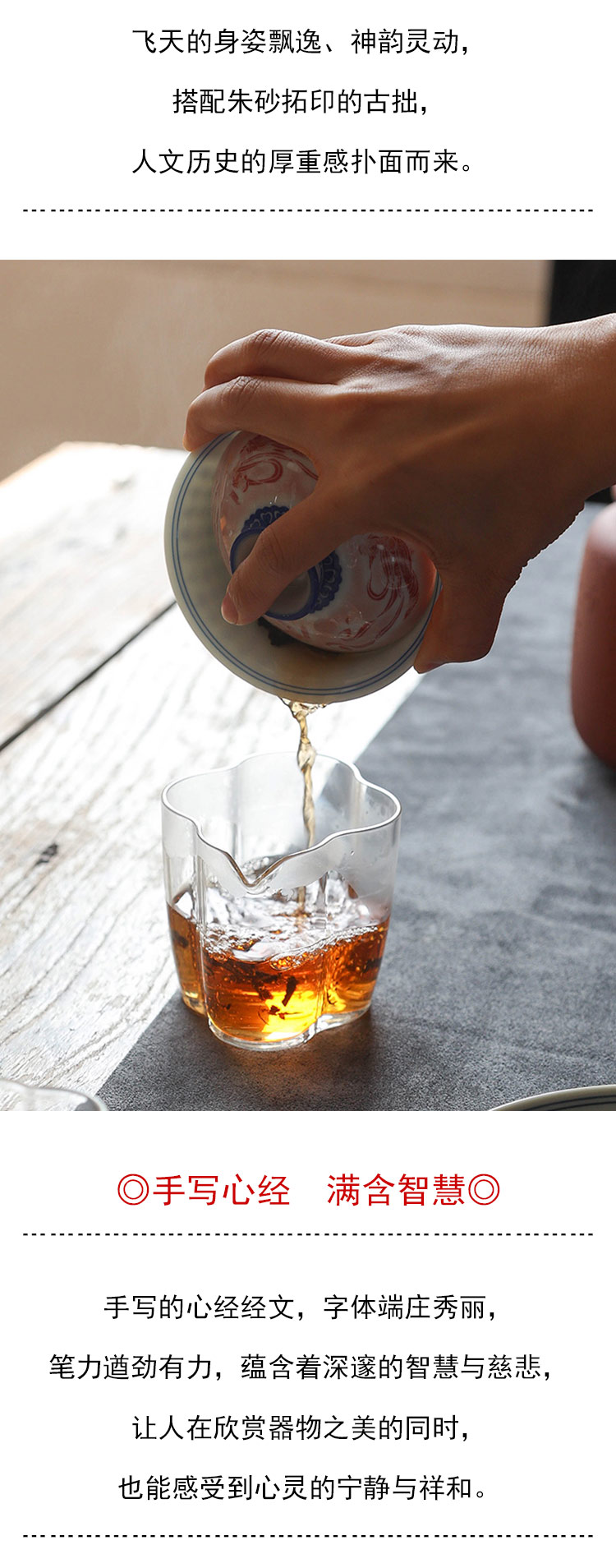 茶香记 詺兮清窑飞天写心经盖碗150ml青花手绘敦煌博物馆联名泡茶碗