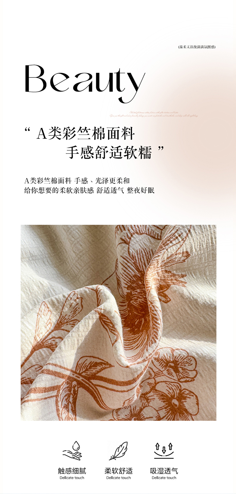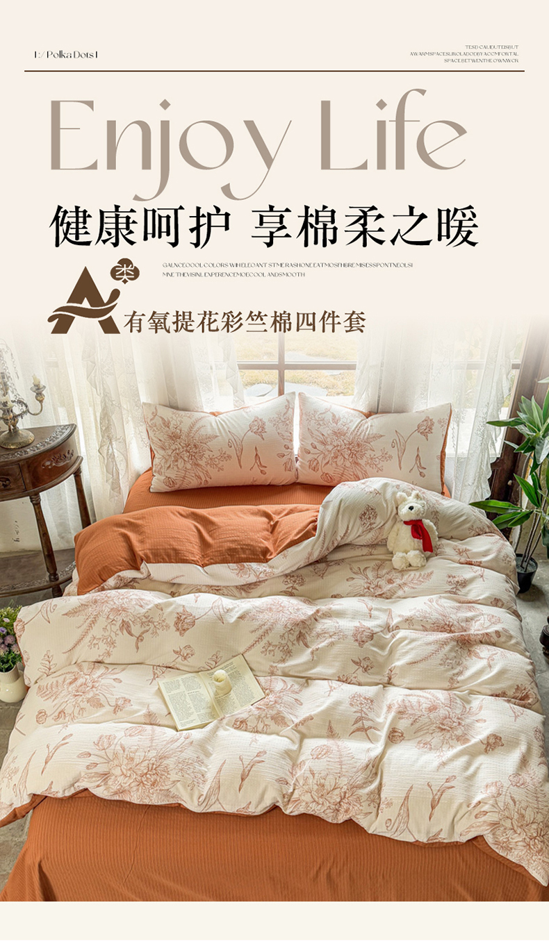 红豆品牌旗下相思豆系列【A类可裸睡竺纱棉四件套】享受视觉的美感,A类母婴级,真的巨巨巨软糯 沉浸式入睡